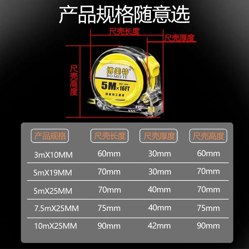 卷尺5米10米7.5米3米不锈钢卷尺加厚耐磨防摔米尺盒尺拉尺高精度