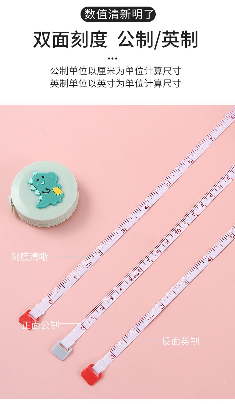 2米卡通新款卷尺家用测量软尺三围学生专用腰围尺双面测身高皮尺