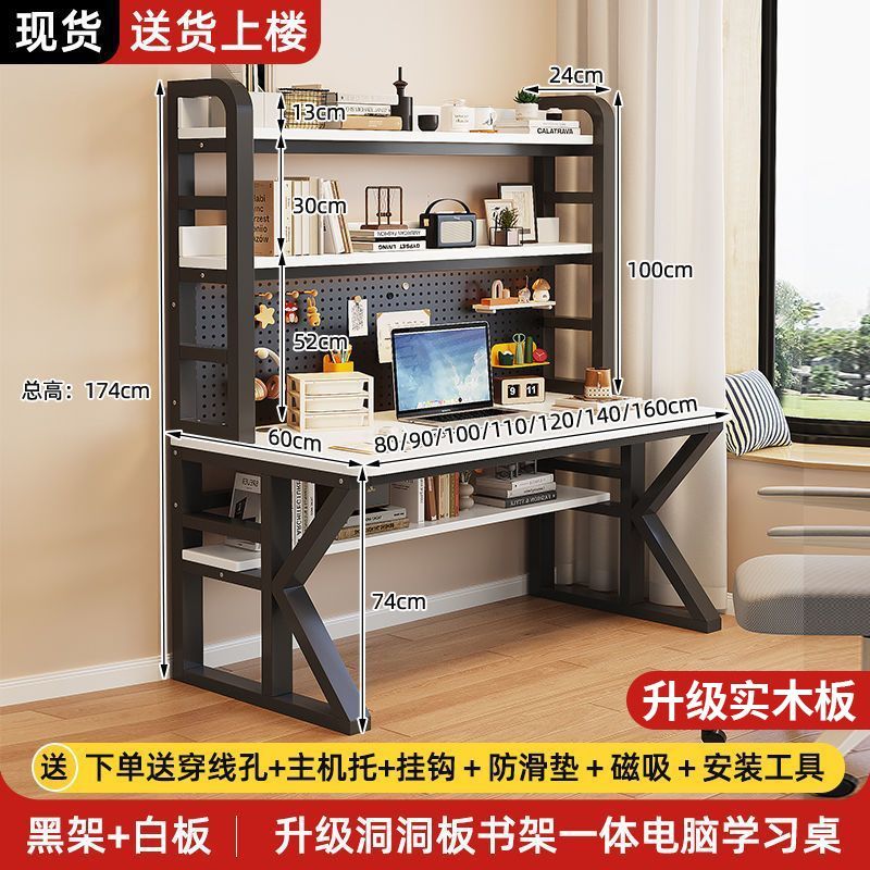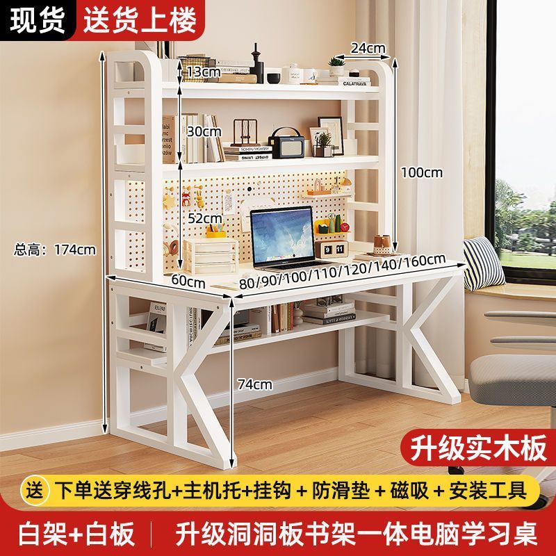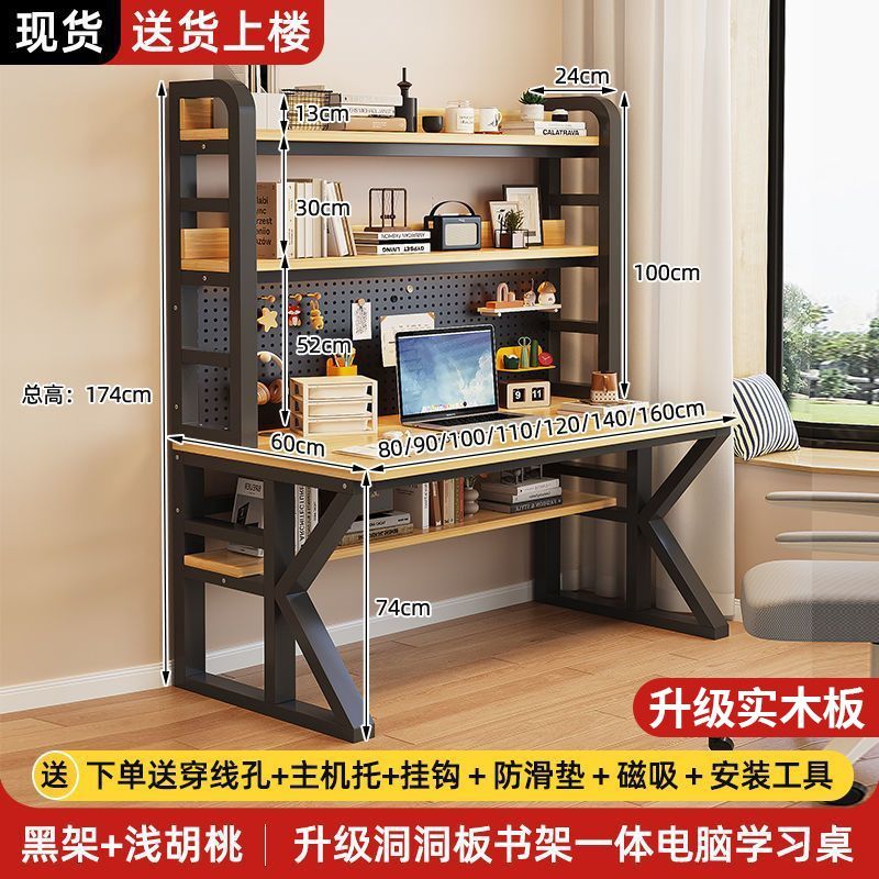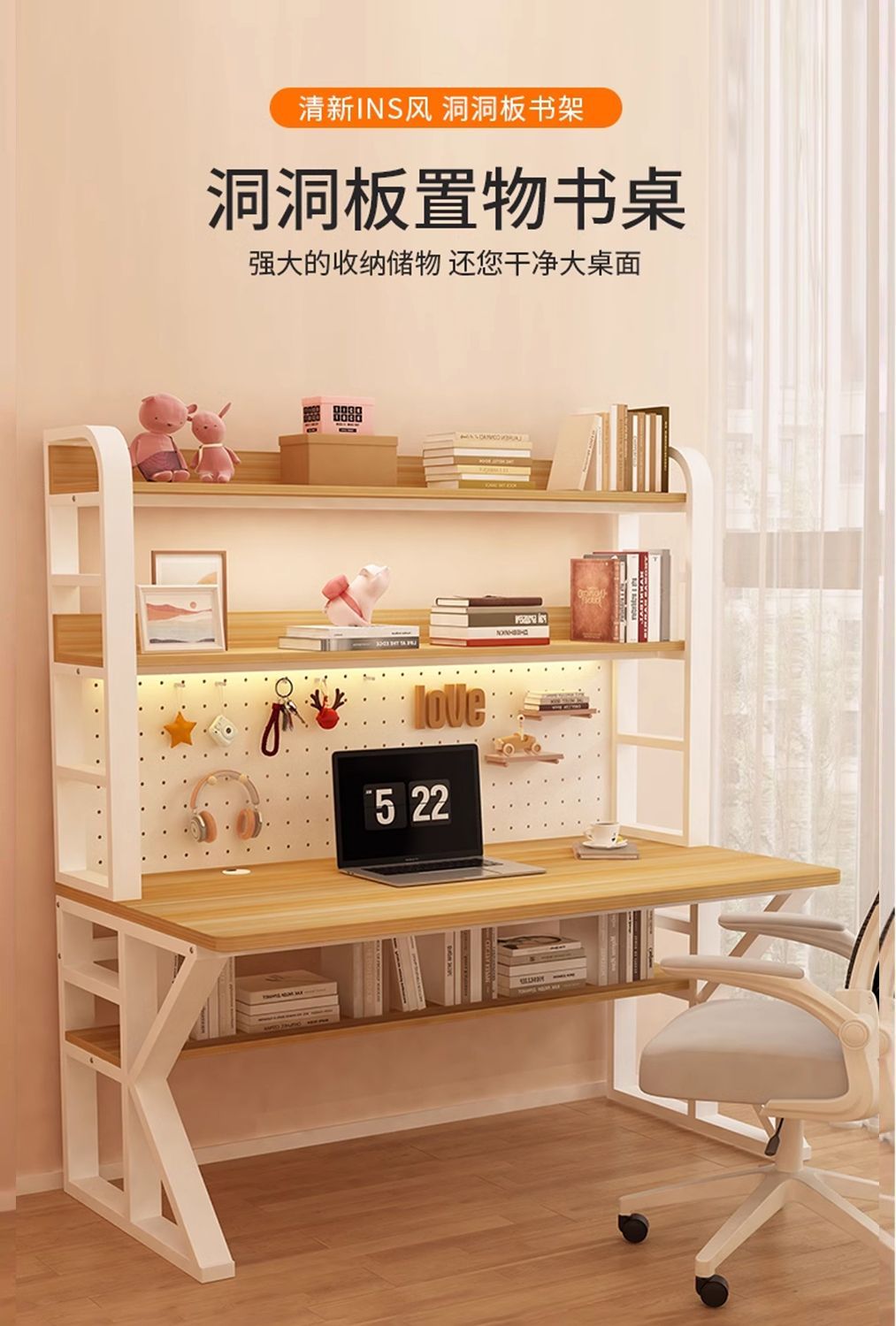 书桌书架一体洞洞板家用儿童学习桌初高中学习写字桌子实木电脑桌