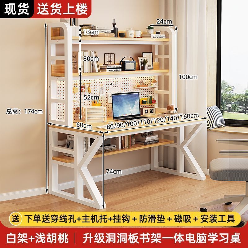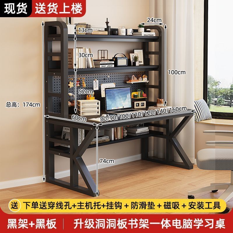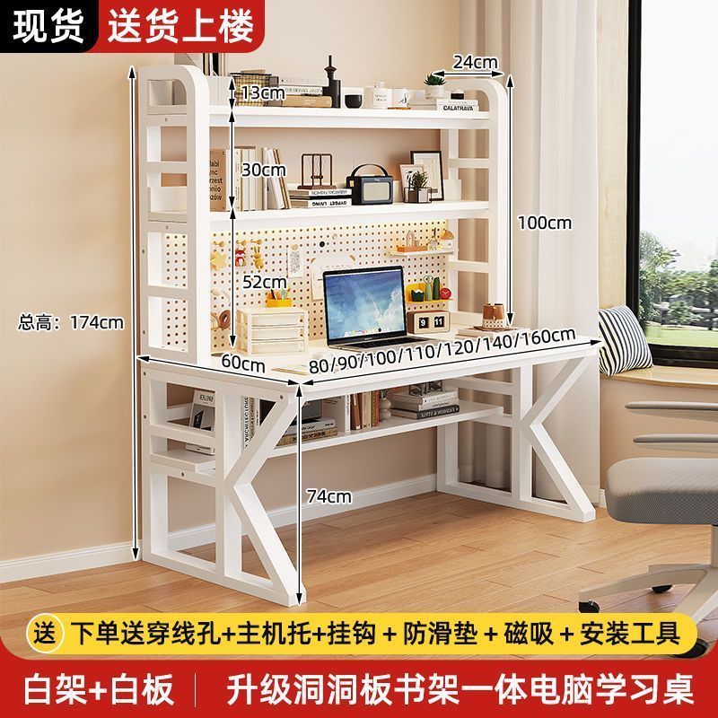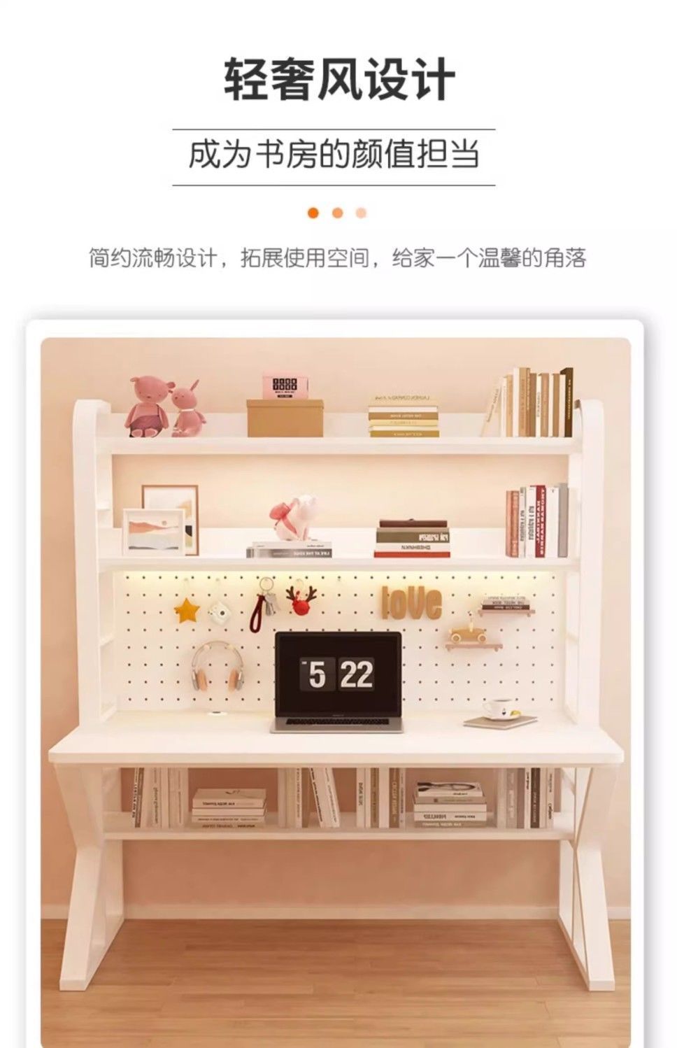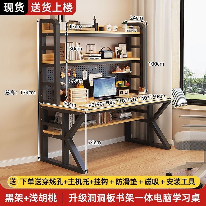 书桌书架一体洞洞板家用儿童学习桌初高中学习写字桌子实木电脑桌