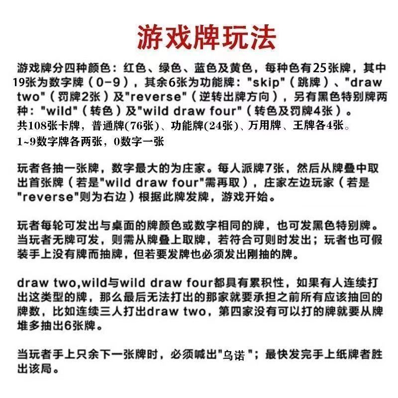 ADNUNO卡牌桌游纸牌经典优诺乌诺多人休闲聚会桌面游戏扑克