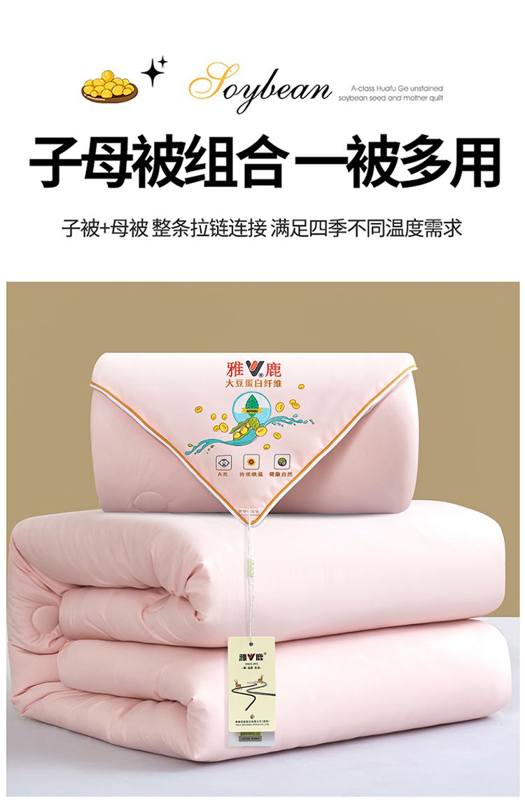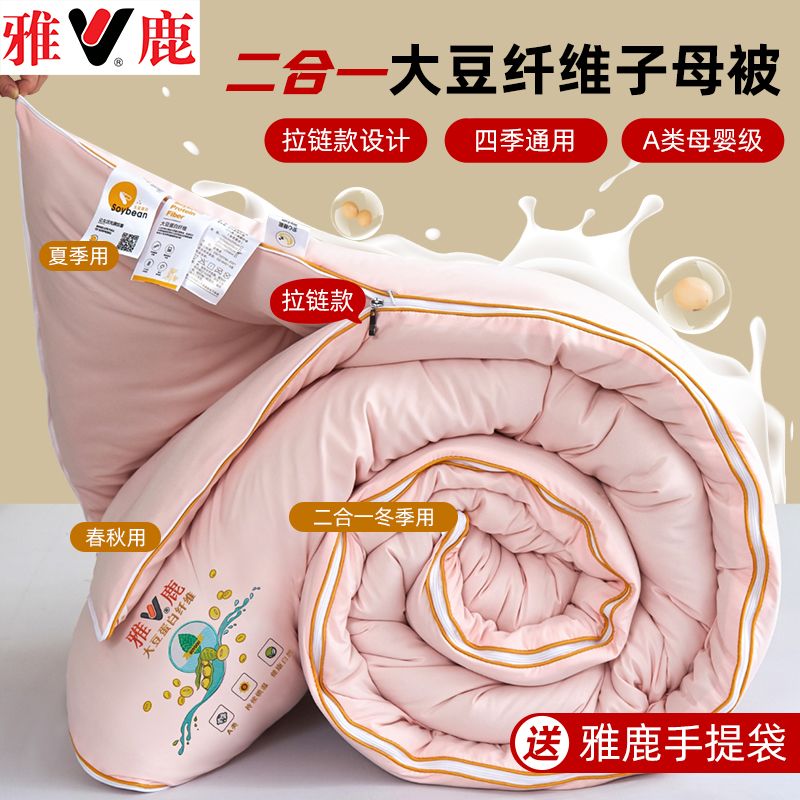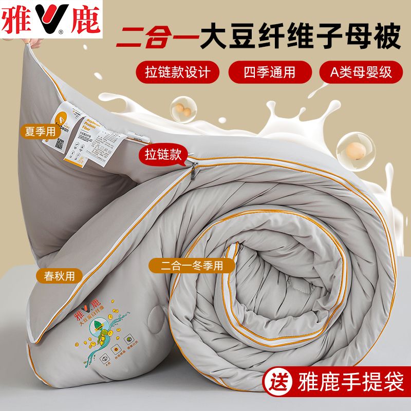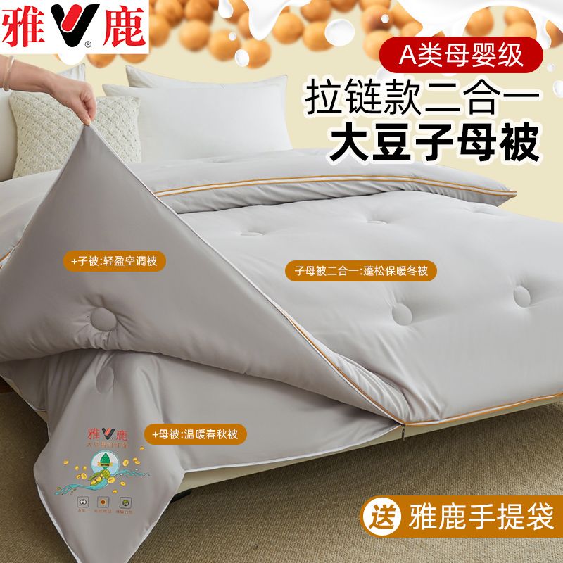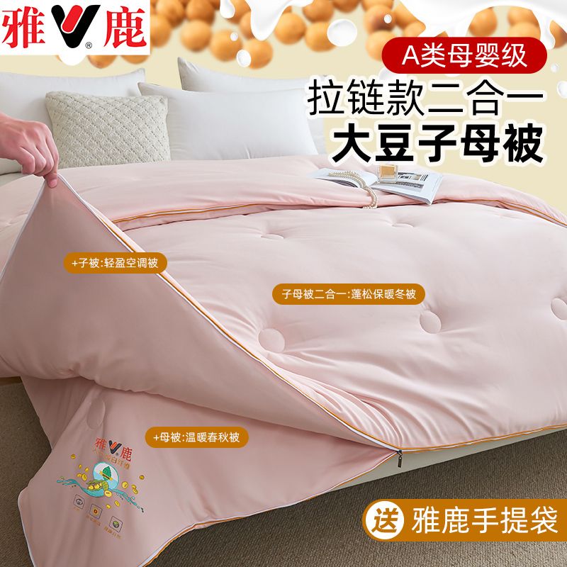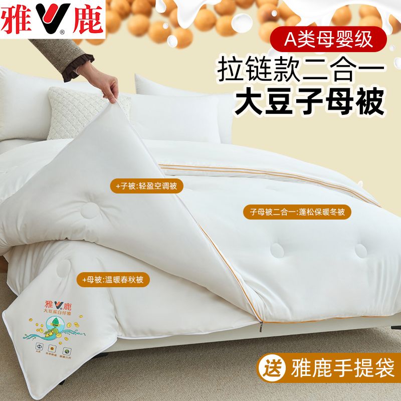 雅鹿大豆被子母被二合一拉链款棉被加厚保暖冬被春秋被芯四季通用