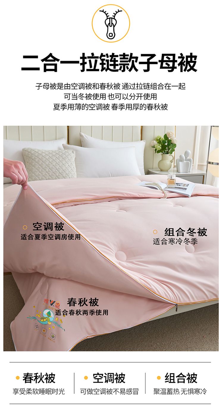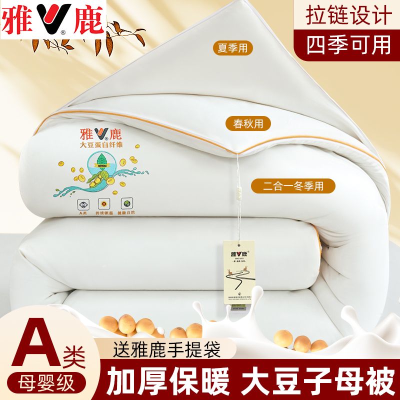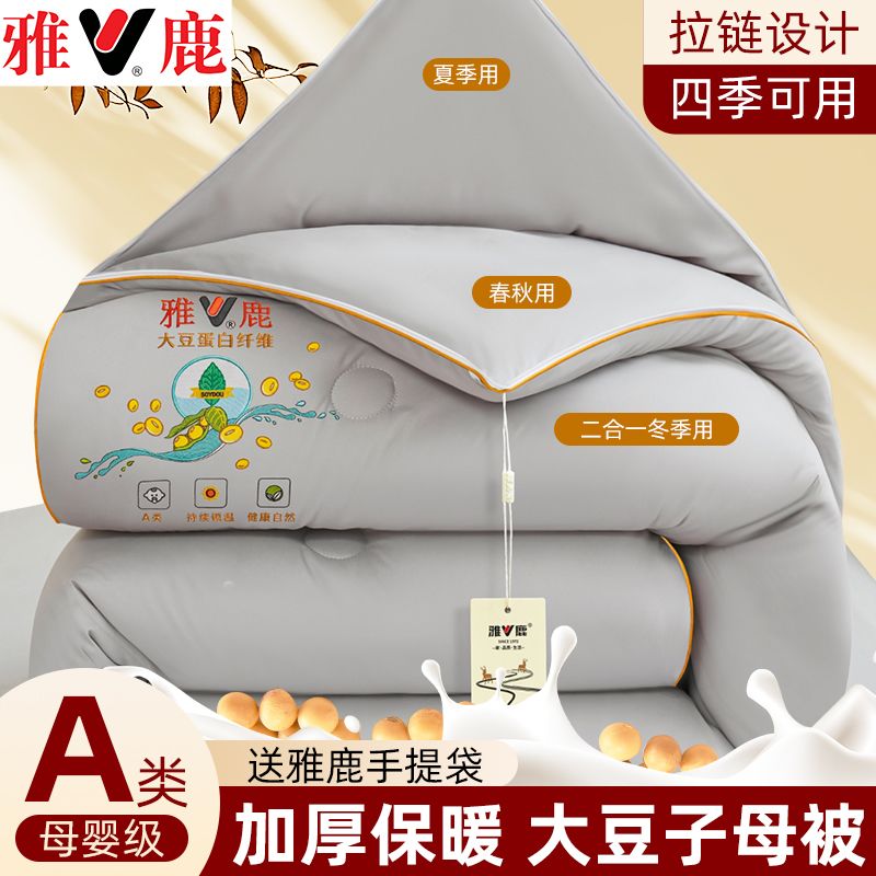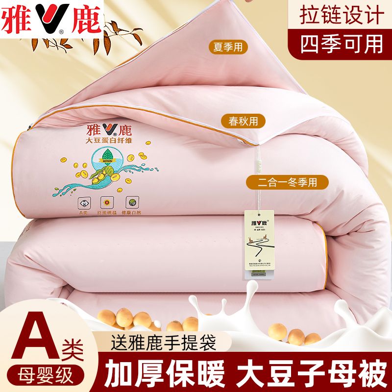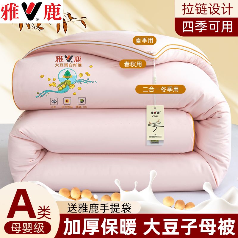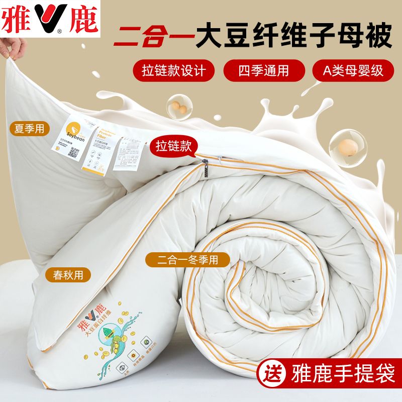 雅鹿大豆被子母被二合一拉链款棉被加厚保暖冬被春秋被芯四季通用