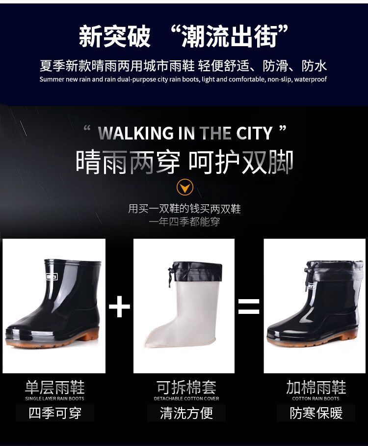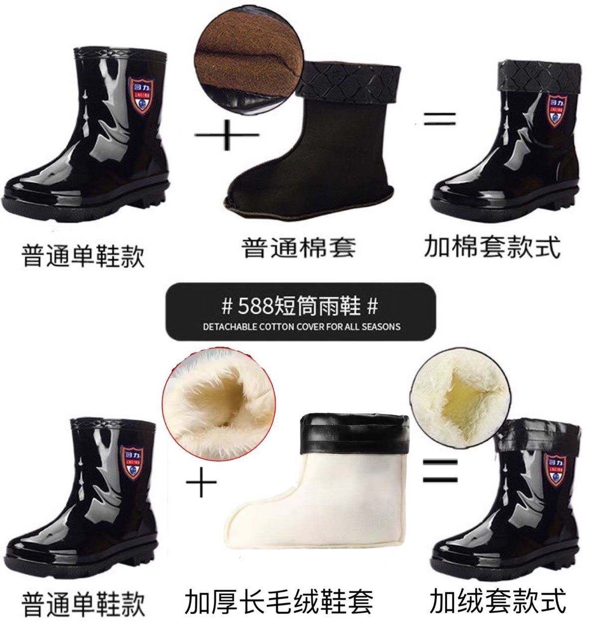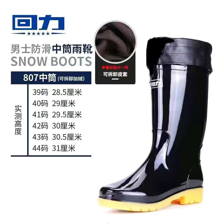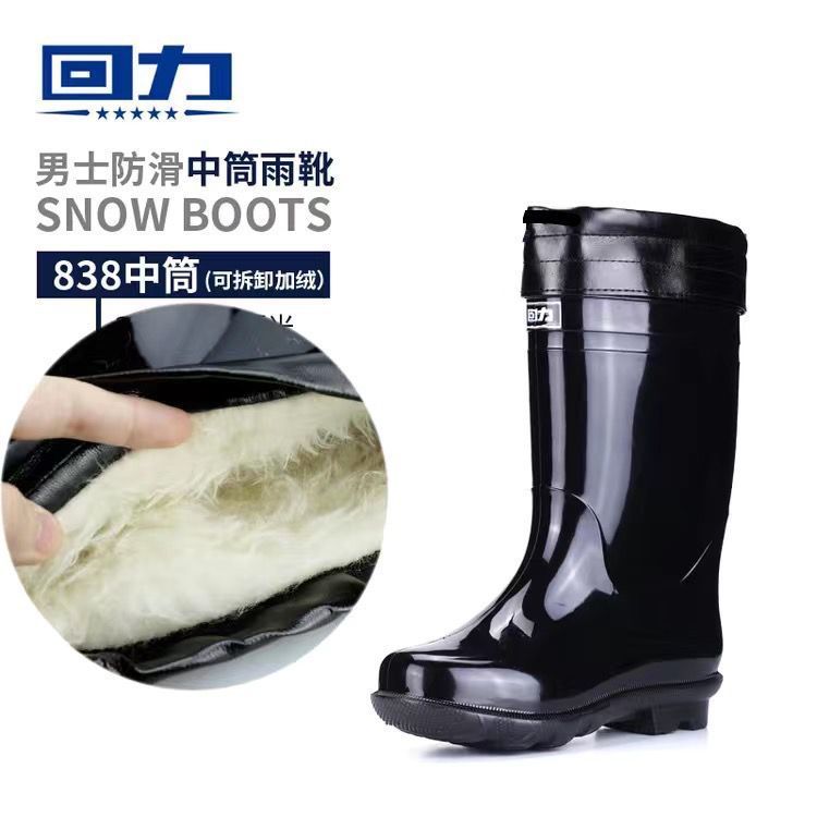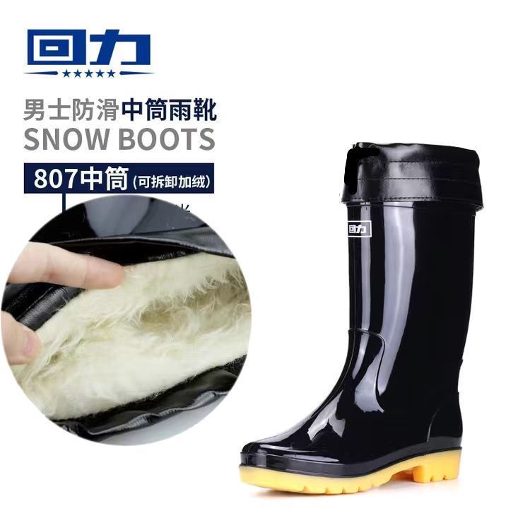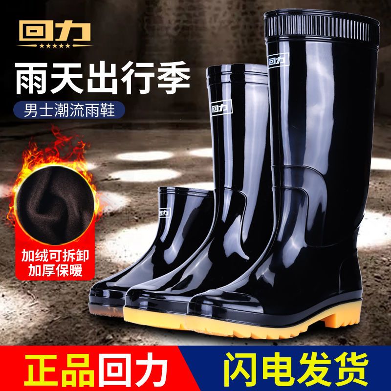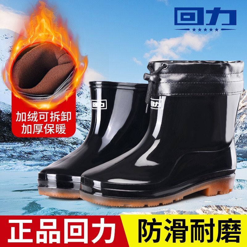回力雨鞋男士水鞋加厚中筒高筒水鞋雨靴保暖短筒劳保防滑防水胶鞋