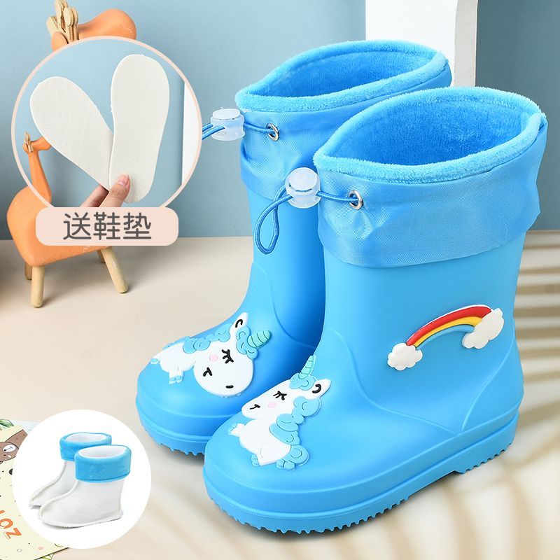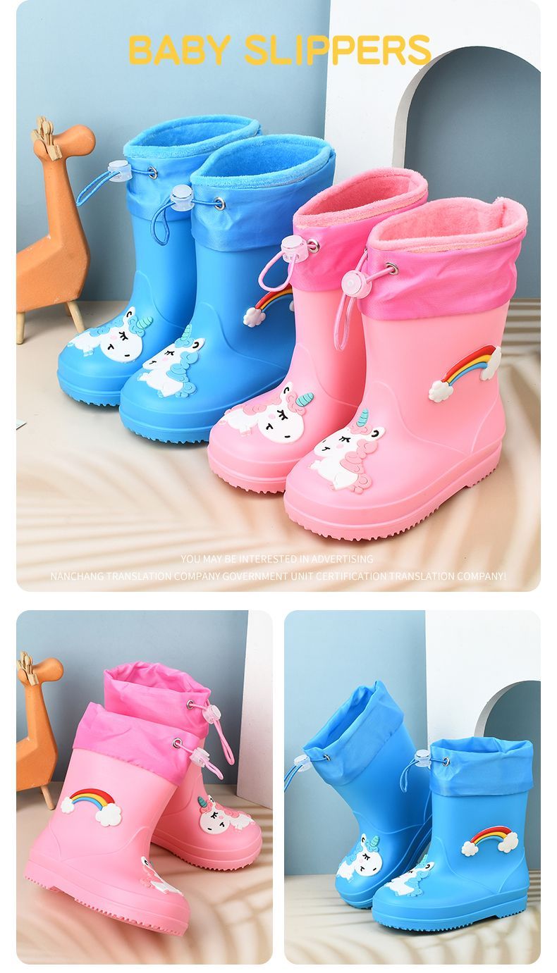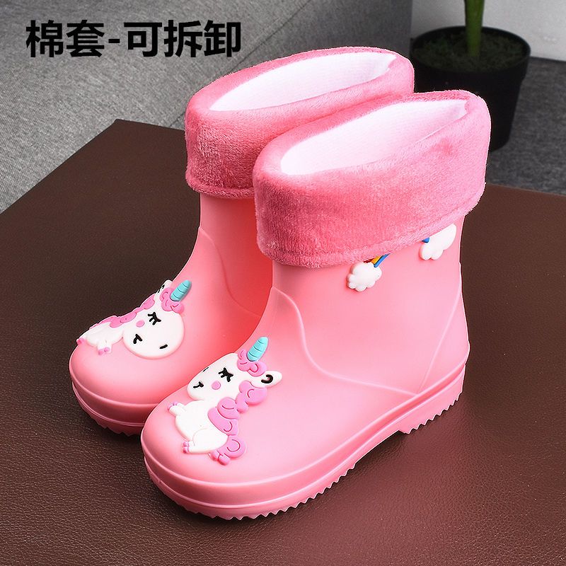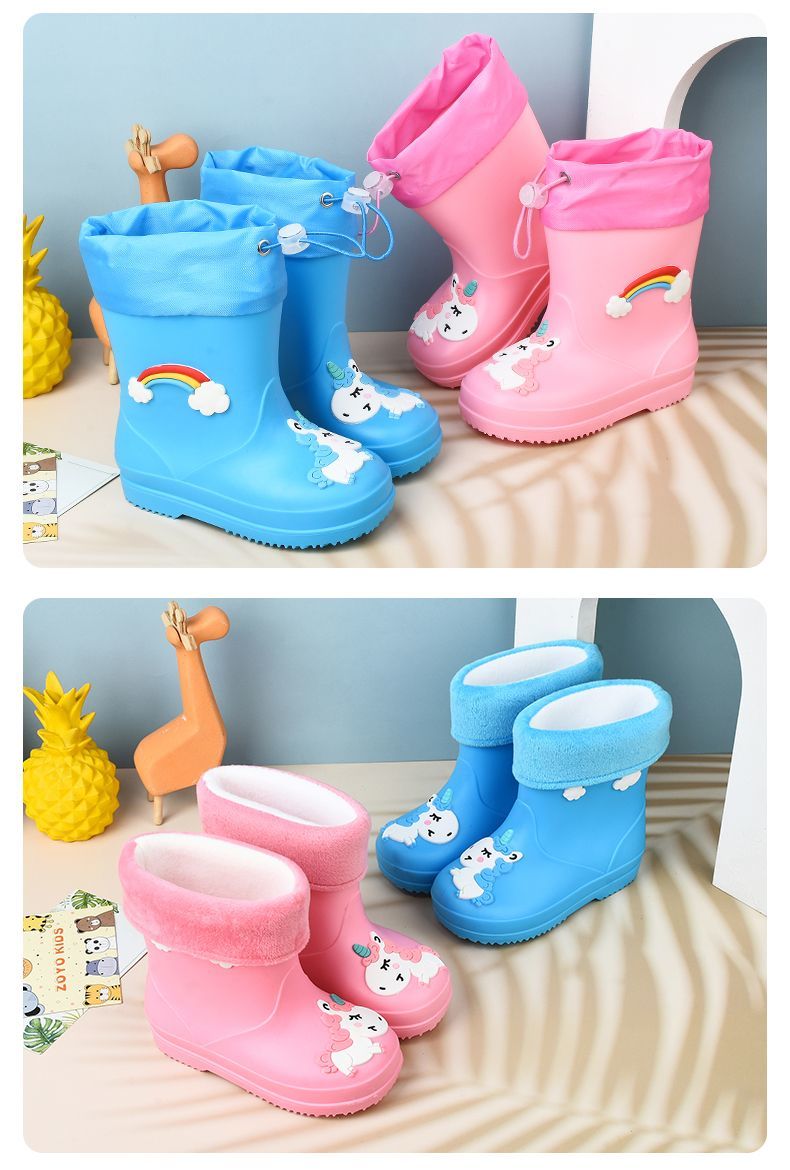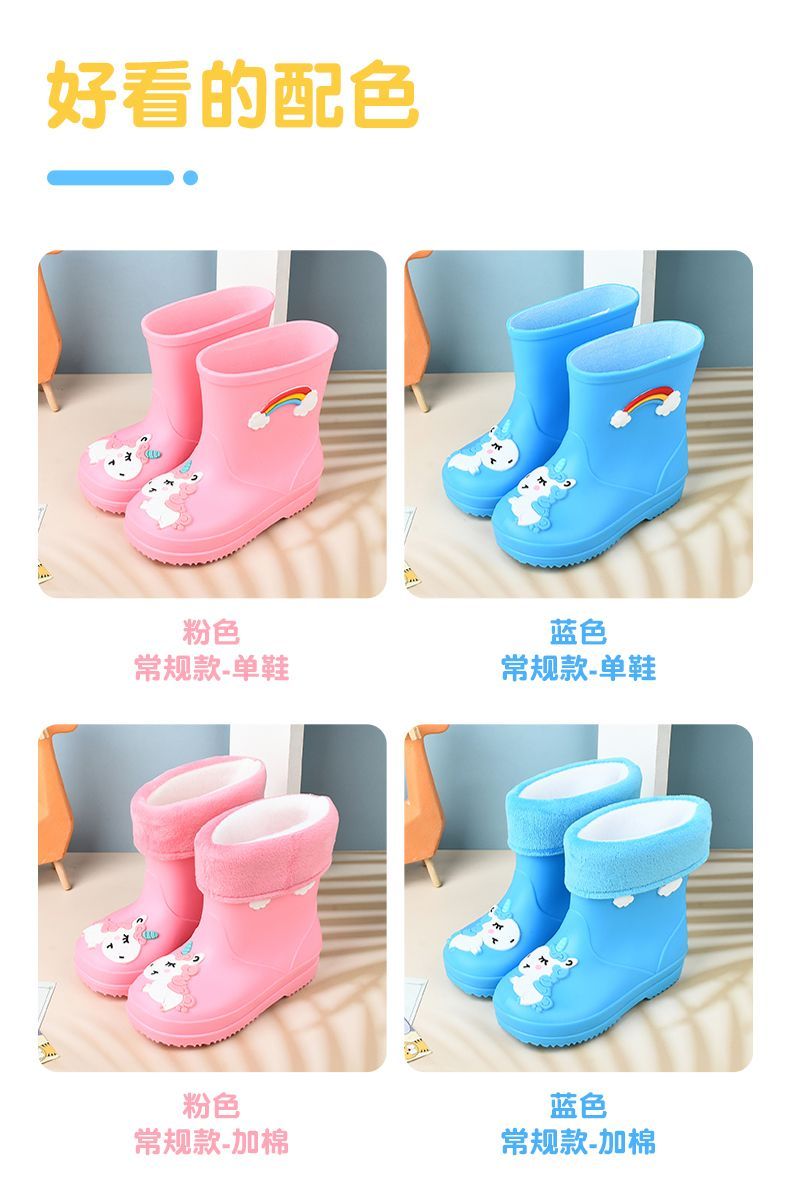 儿童雨鞋男童女童加绒防滑水鞋四季卡通可爱公主宝宝雨靴束口雨鞋