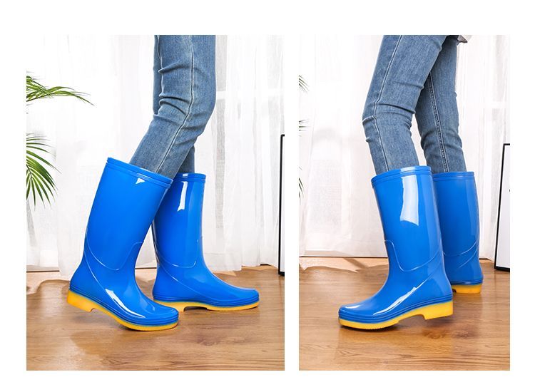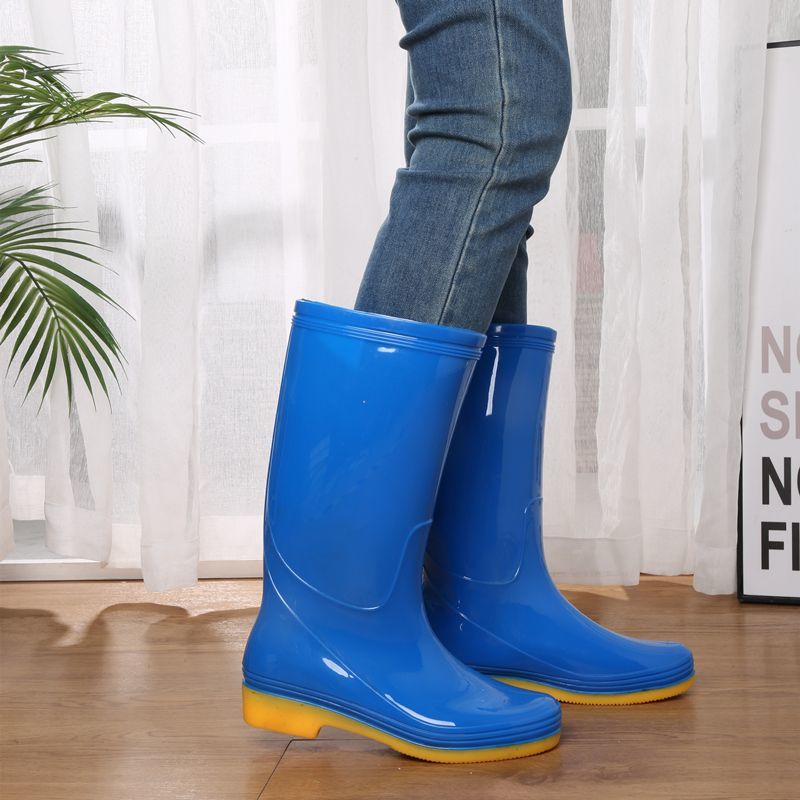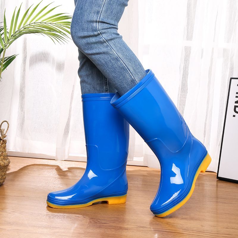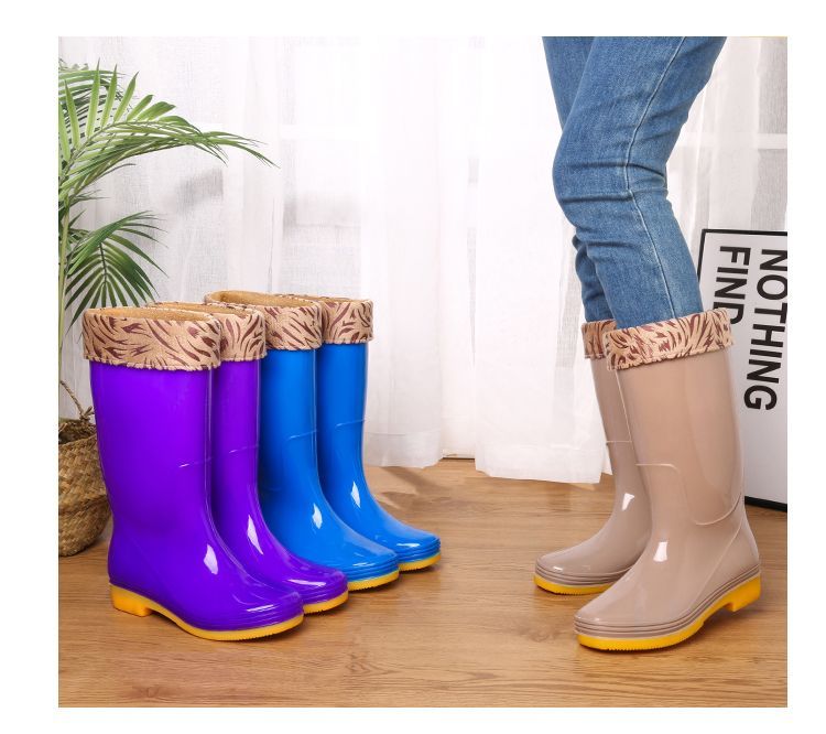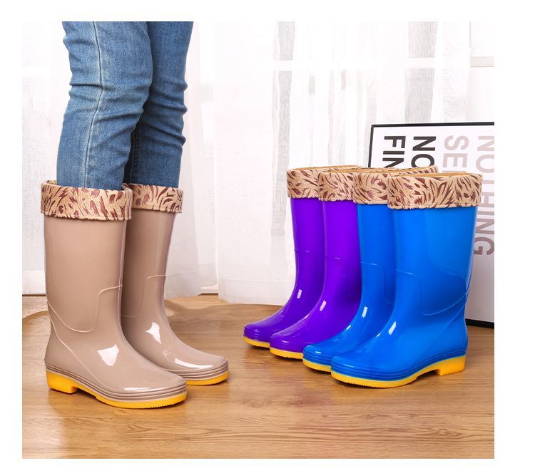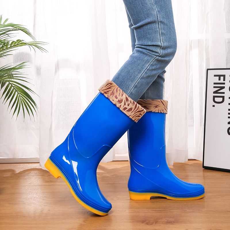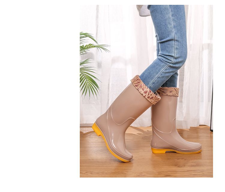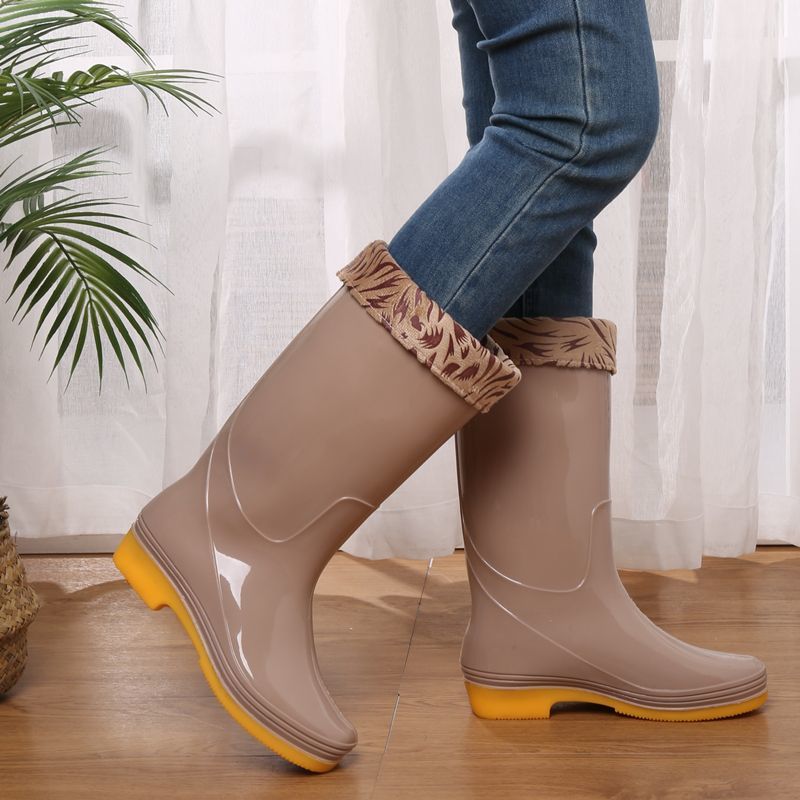 knee-high rain boots non-slip women‘s adult rain boots barrel fleece-lined warm beef tendon rubber boots waterproof kitchen rubber shoes shoe cover
