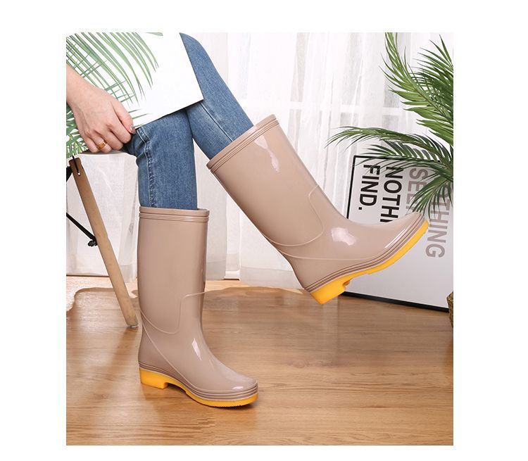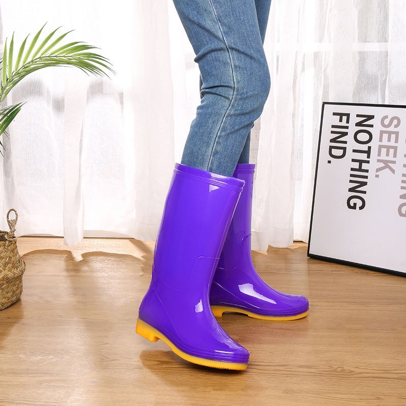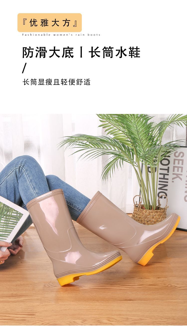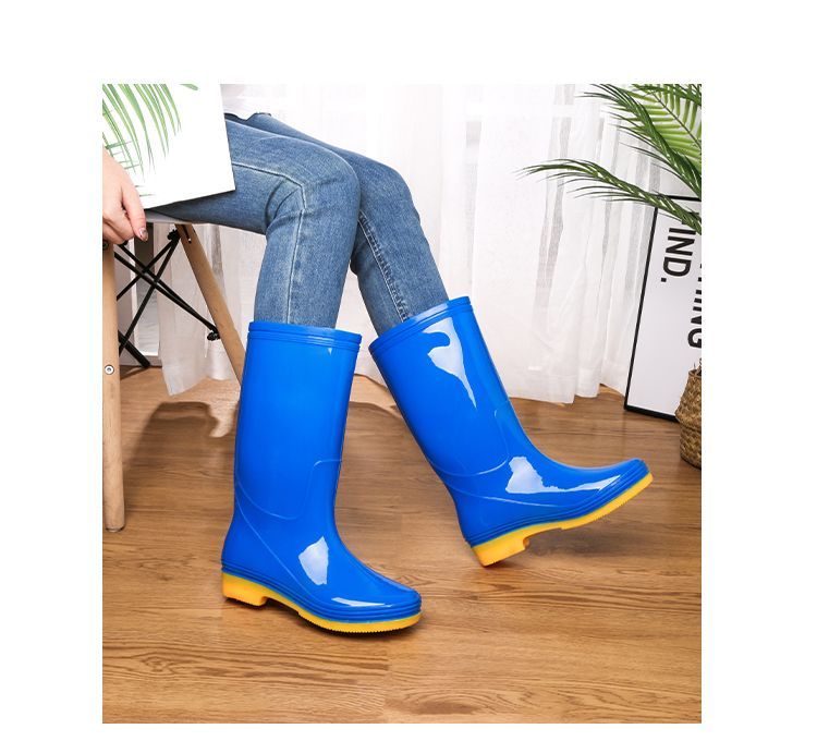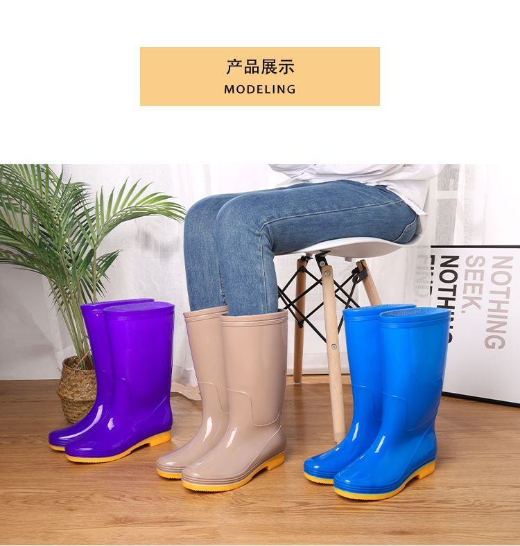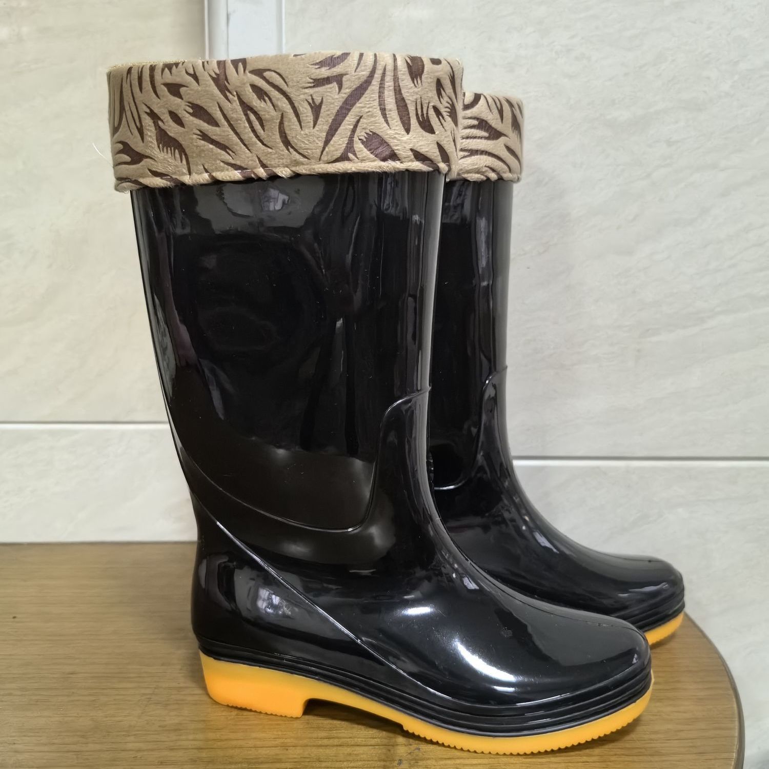 knee-high rain boots non-slip women‘s adult rain boots barrel fleece-lined warm beef tendon rubber boots waterproof kitchen rubber shoes shoe cover