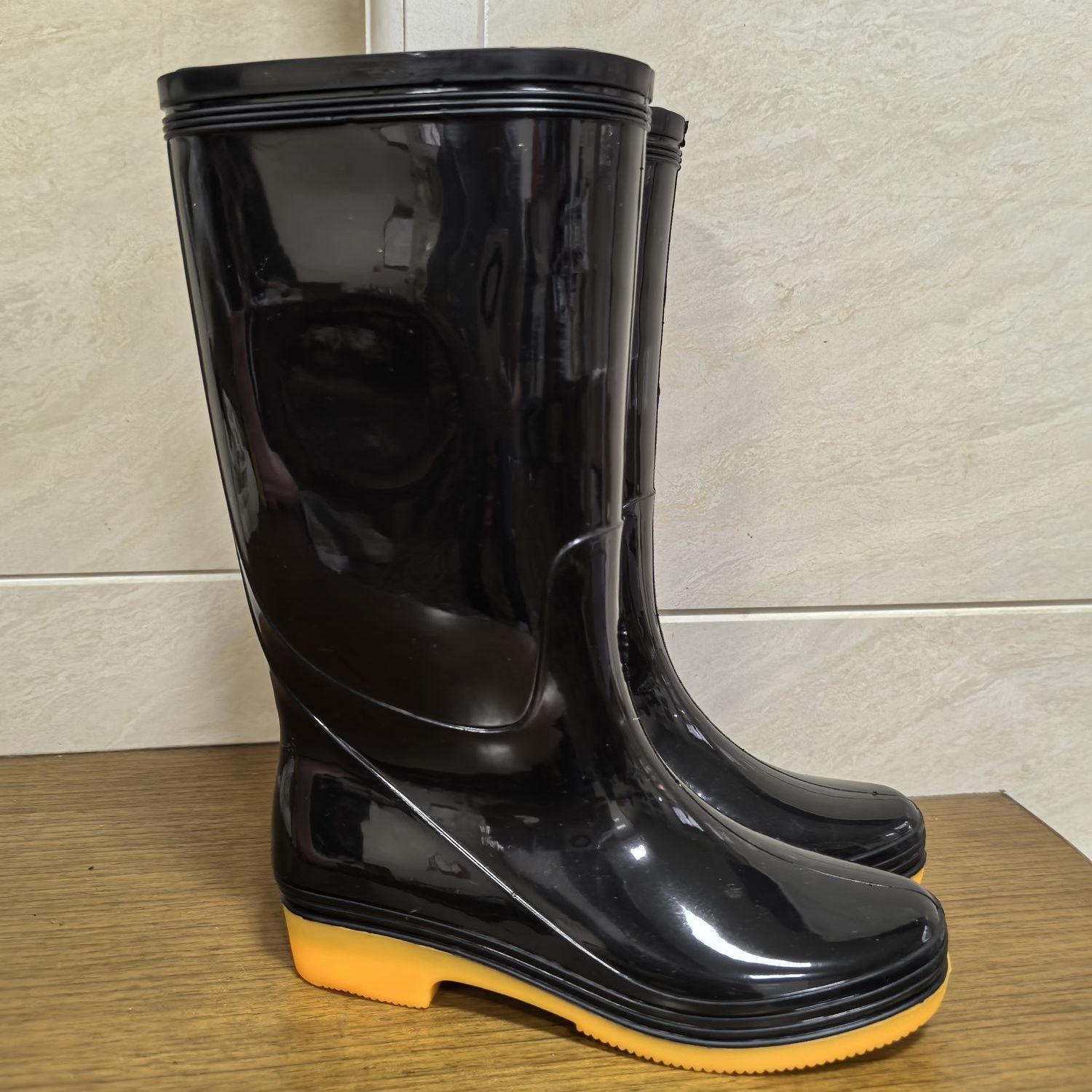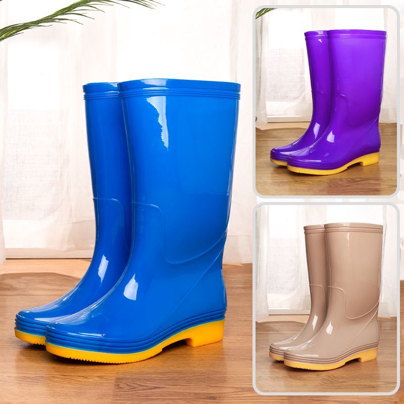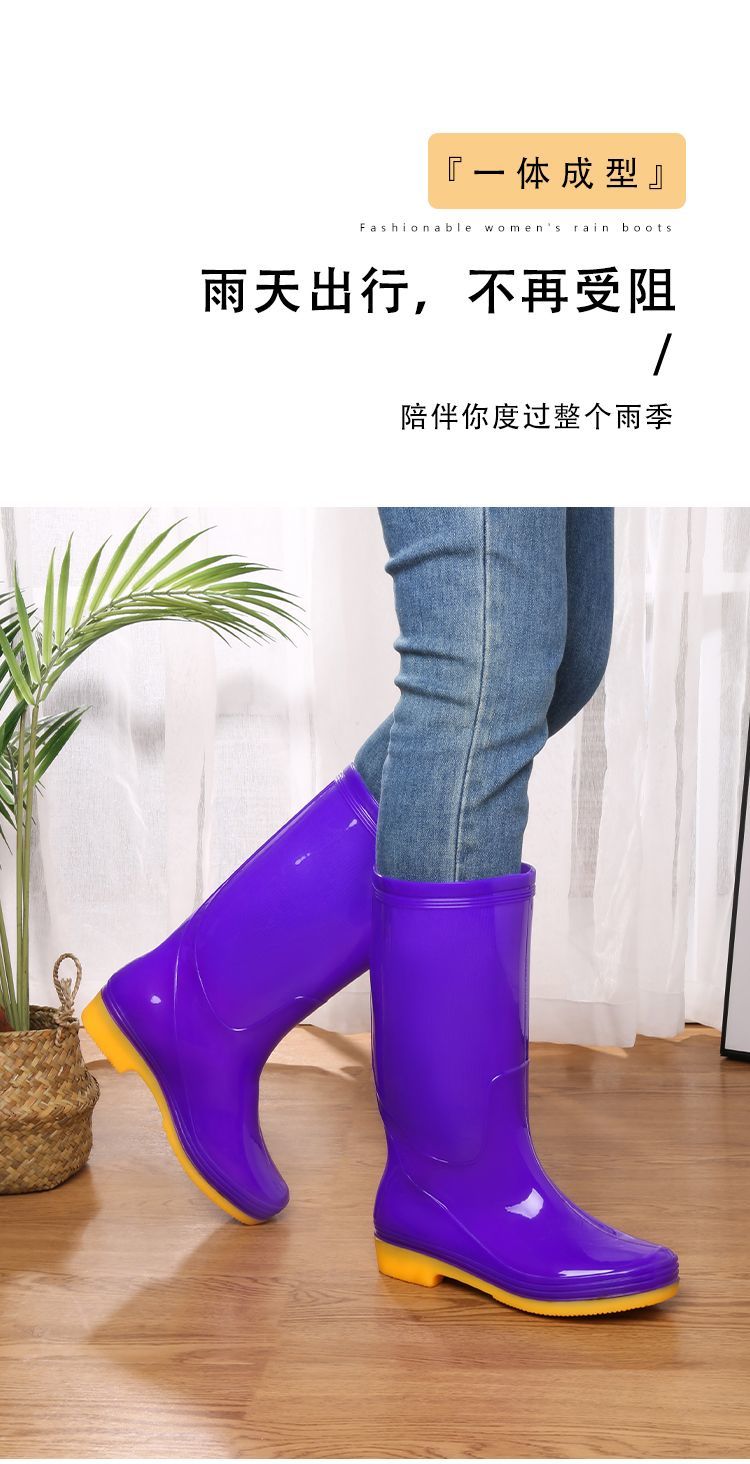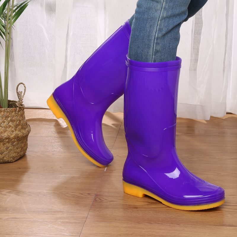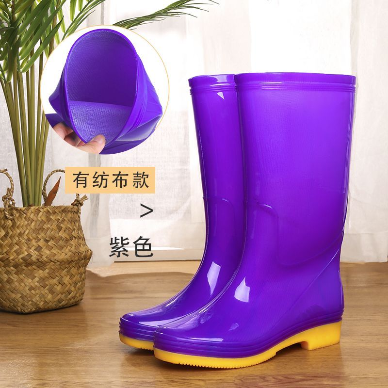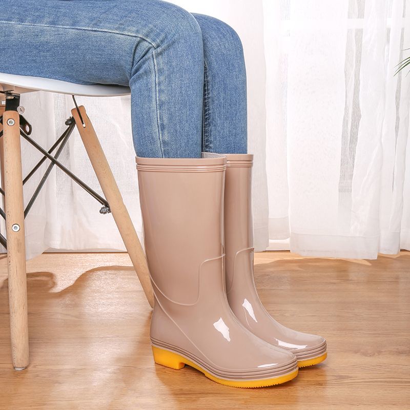 knee-high rain boots non-slip women‘s adult rain boots barrel fleece-lined warm beef tendon rubber boots waterproof kitchen rubber shoes shoe cover