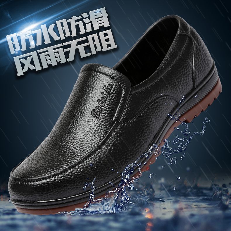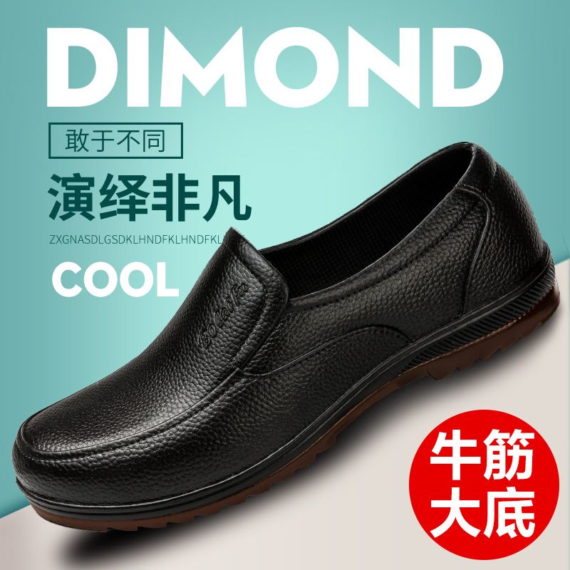 低帮短筒雨鞋男仿皮防水鞋防滑耐磨胶鞋厨房工作鞋钓鱼劳保厨师鞋