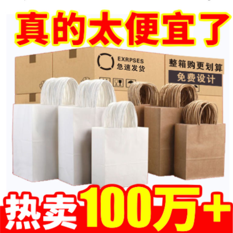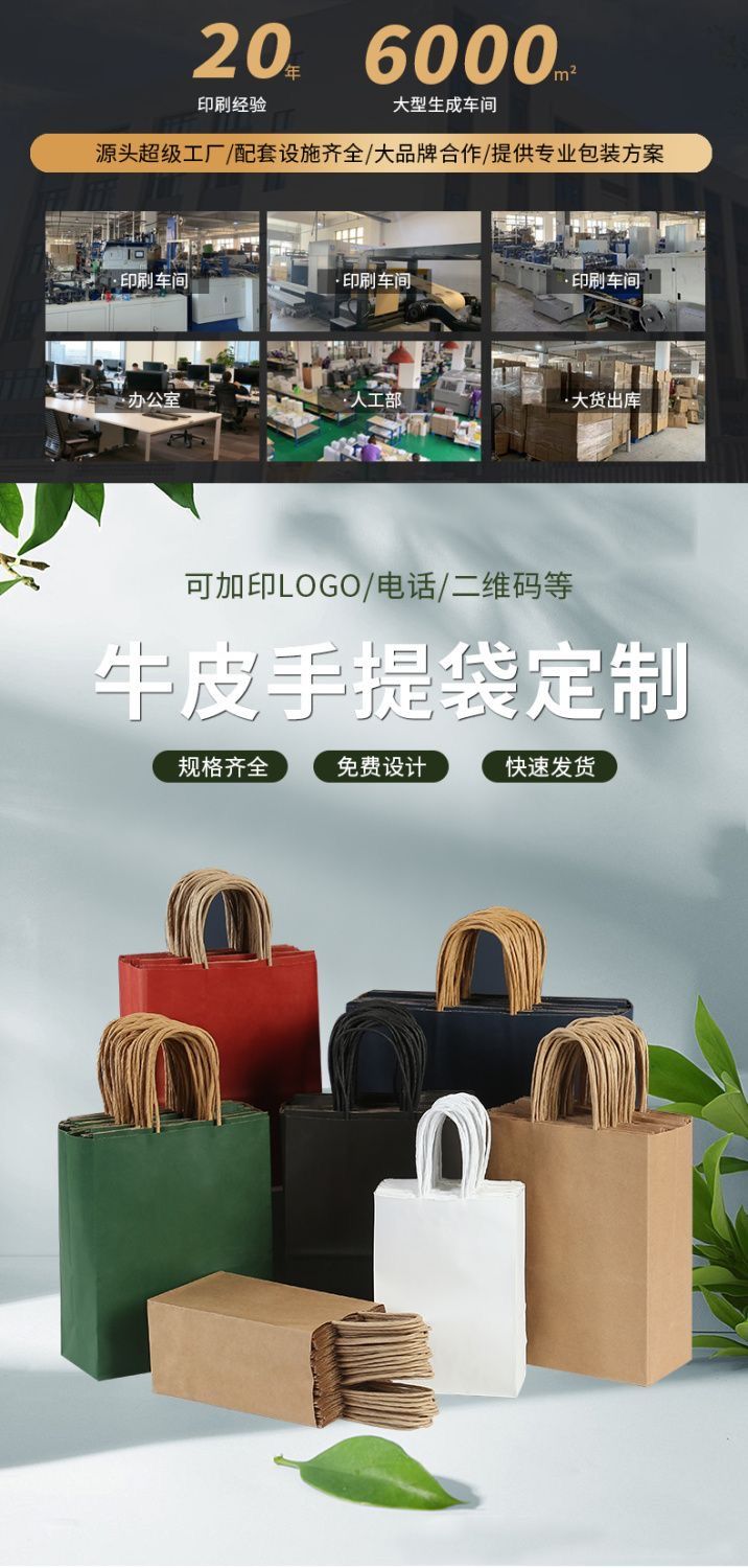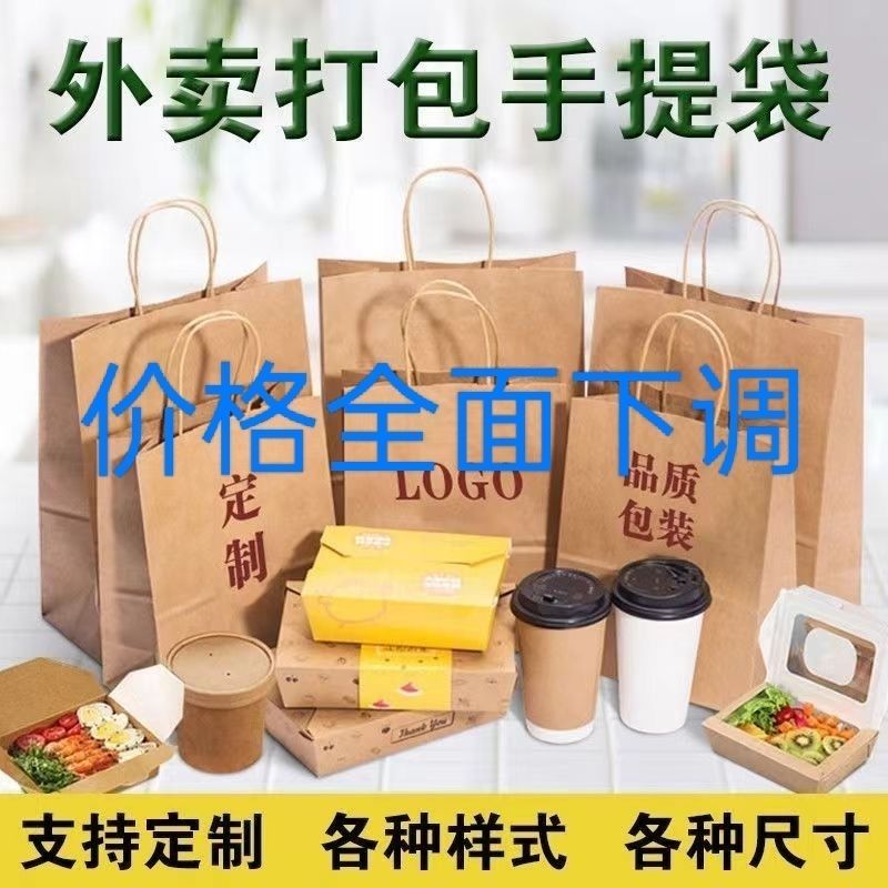 牛皮纸袋手提袋礼品外卖打包餐饮奶茶烘焙商用包装袋子定制印logo