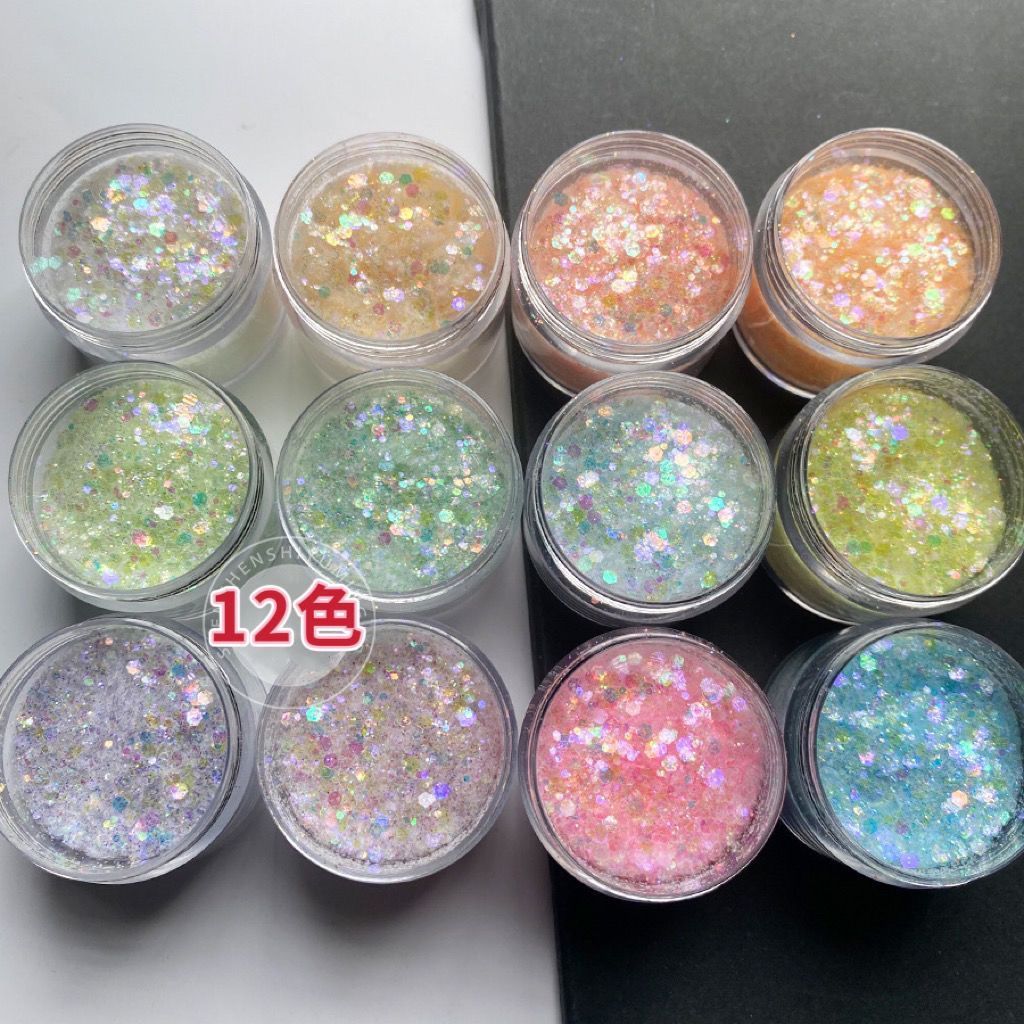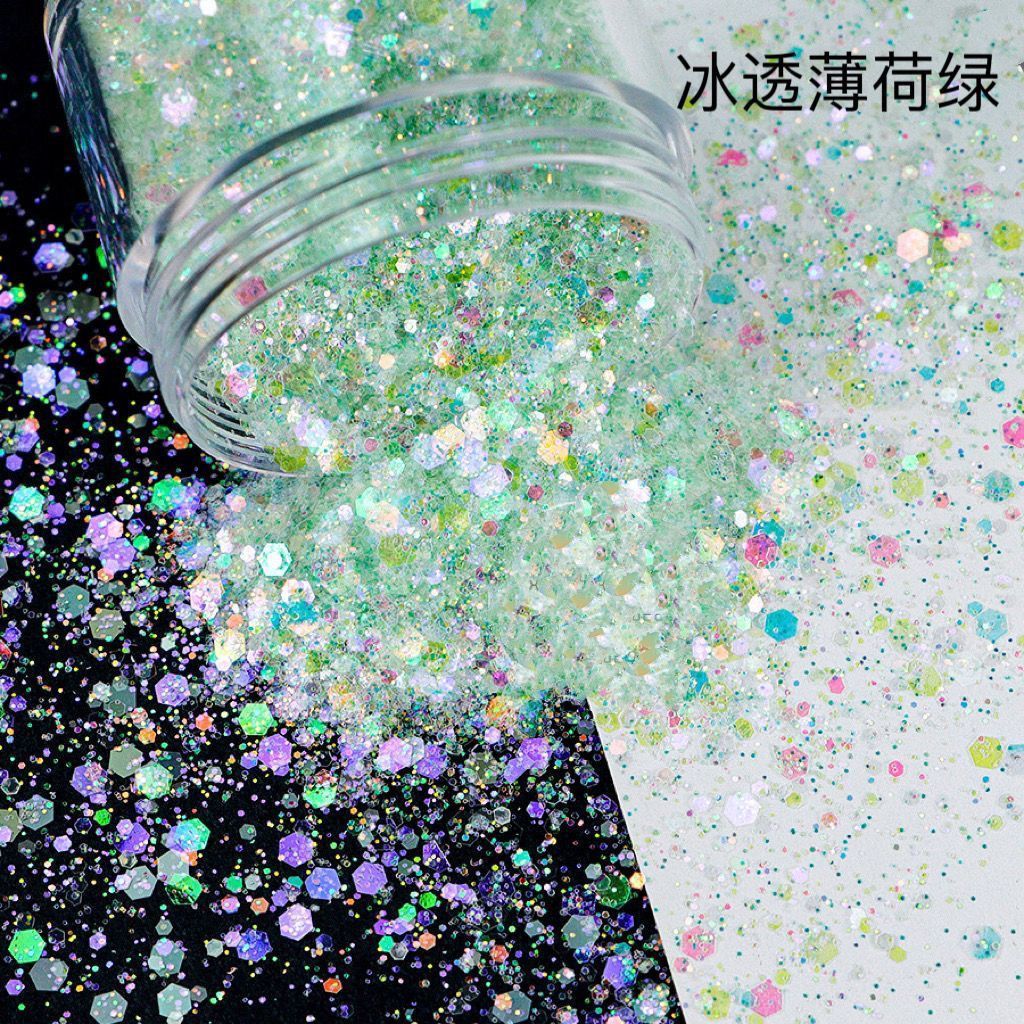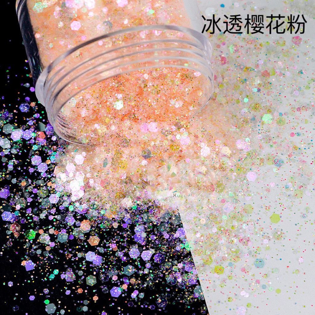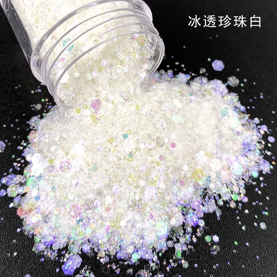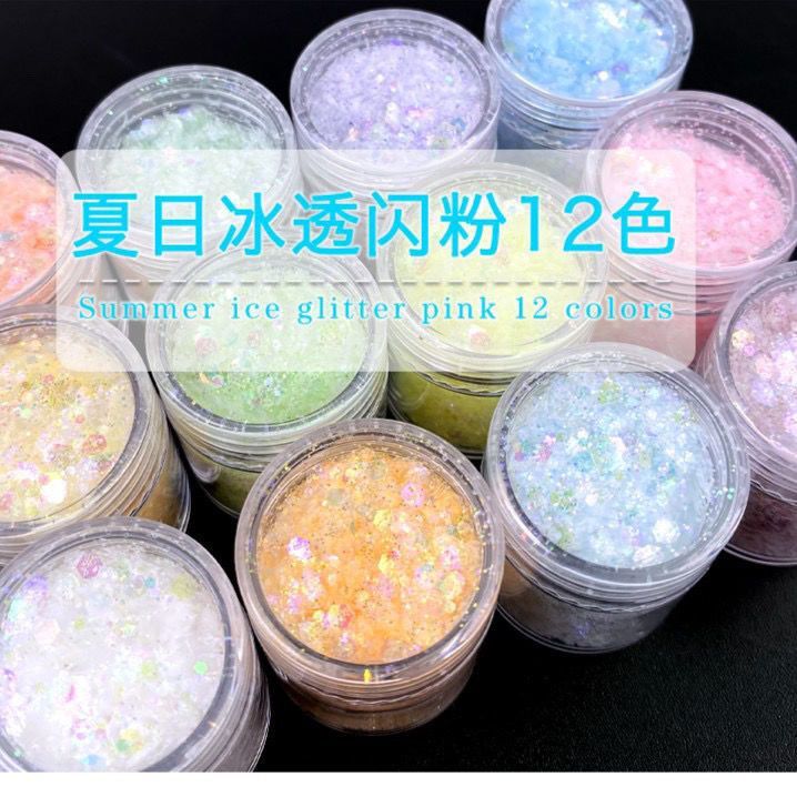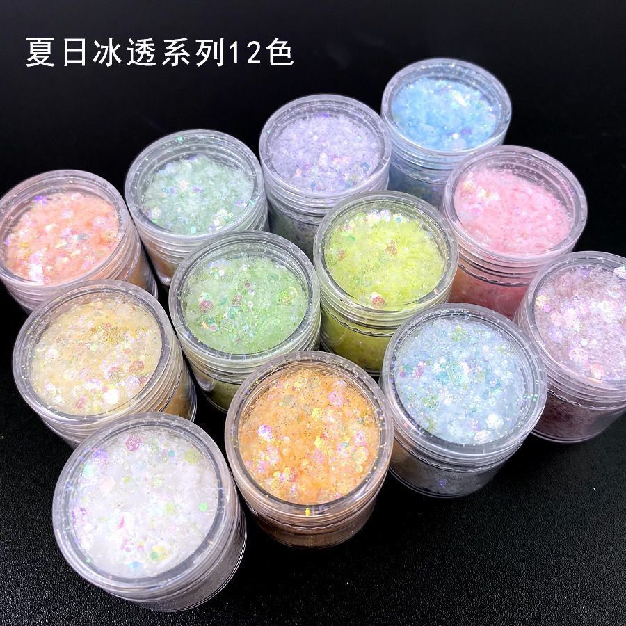 碎碎冰透亮片2024年新款流沙闪粉美甲饰品日式风系混合亮片金葱粉