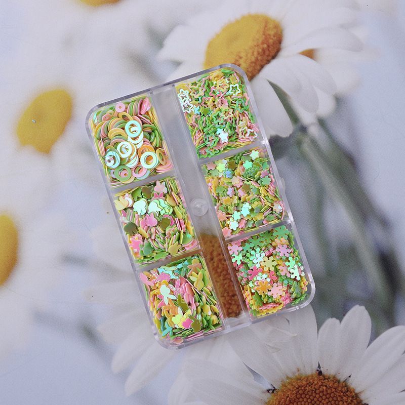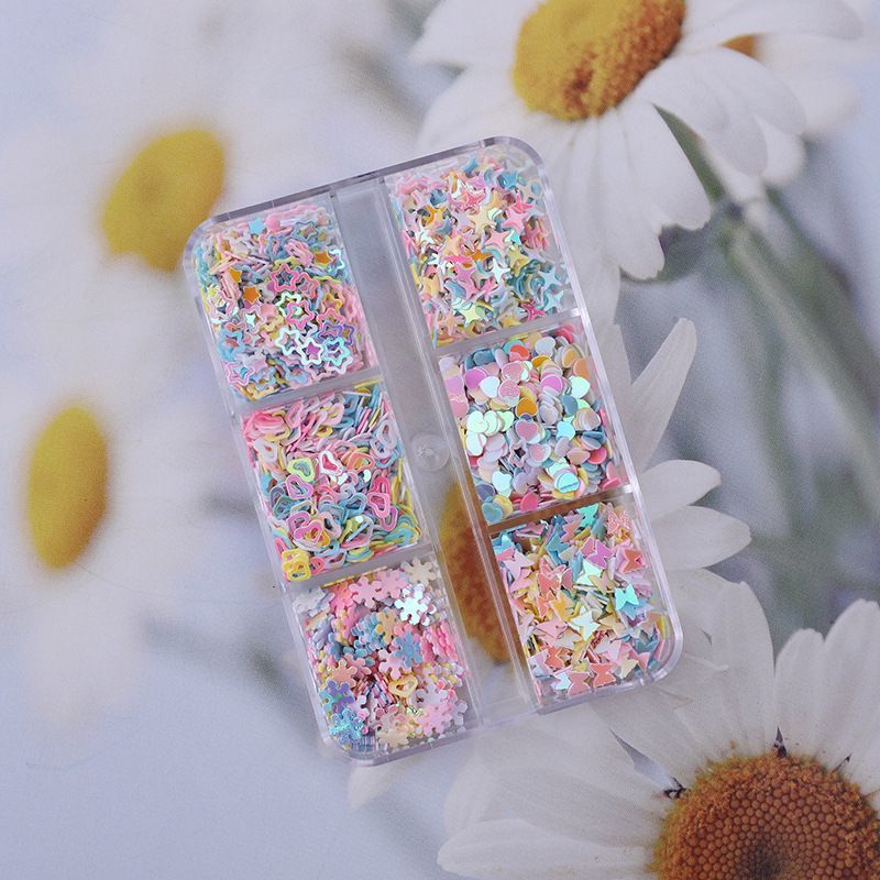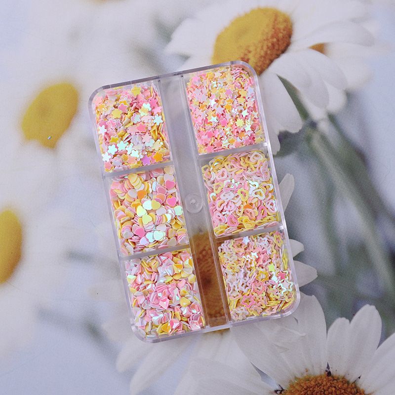 儿童手工diy材料流沙填充物爱心星星小颗粒碎片亮片6格盒装亮片