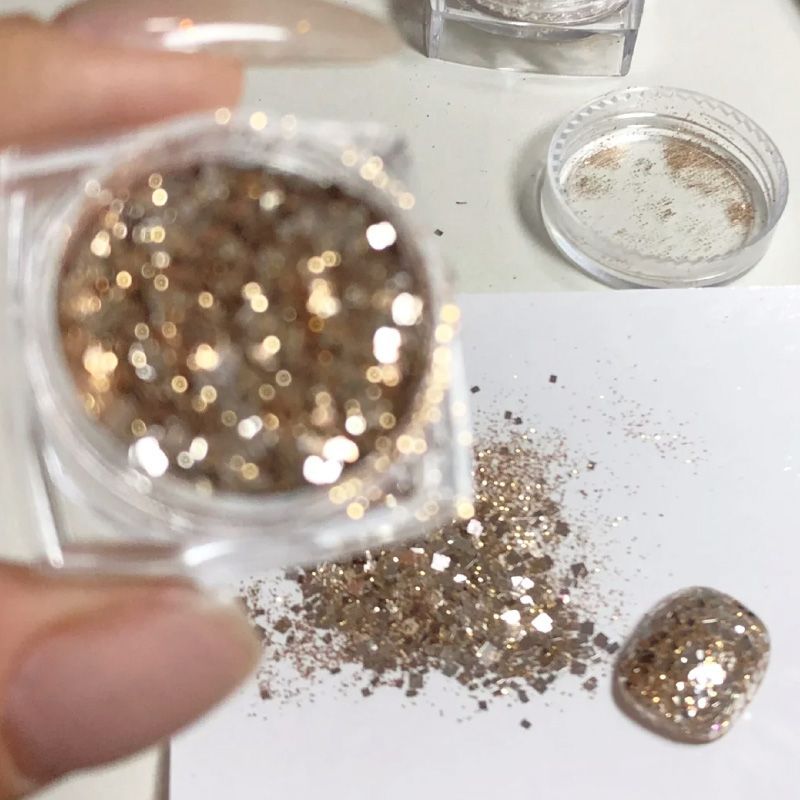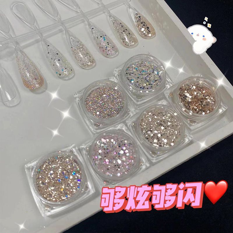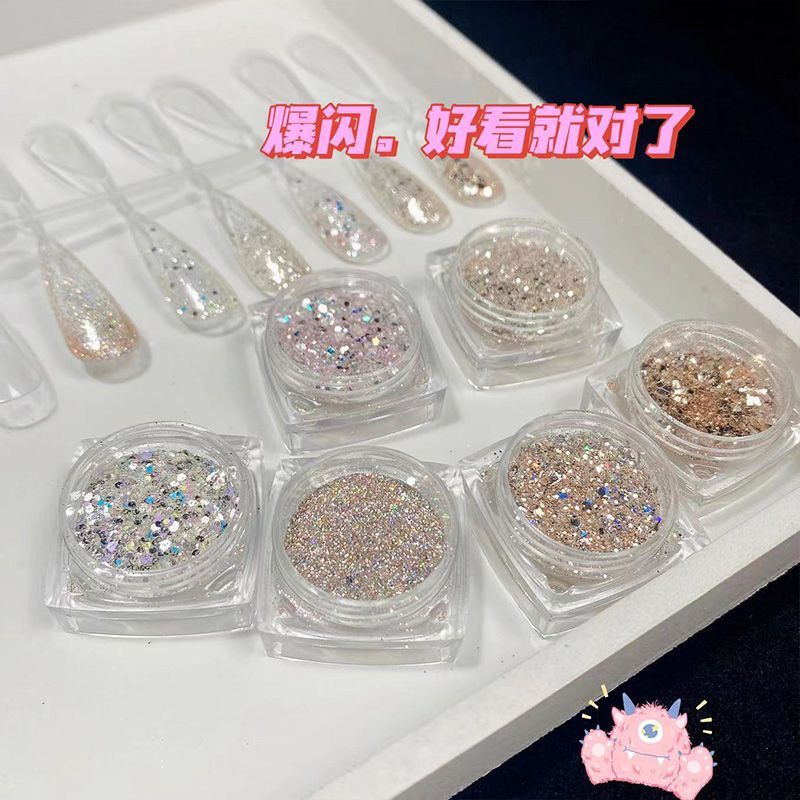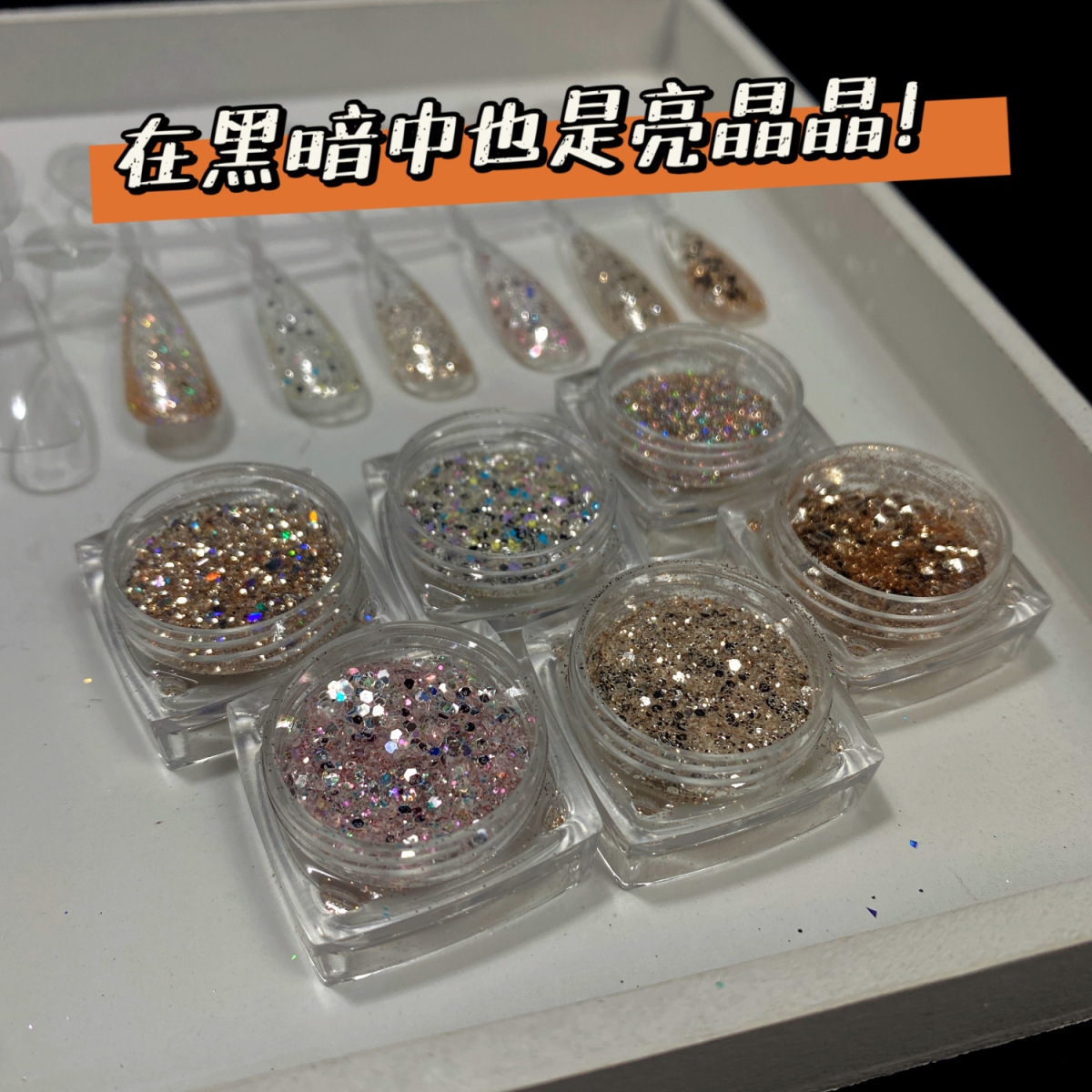 美甲渣渣粉晶钻粉香槟色美甲闪粉粗细混璀璨亮片指甲装饰网红爆款