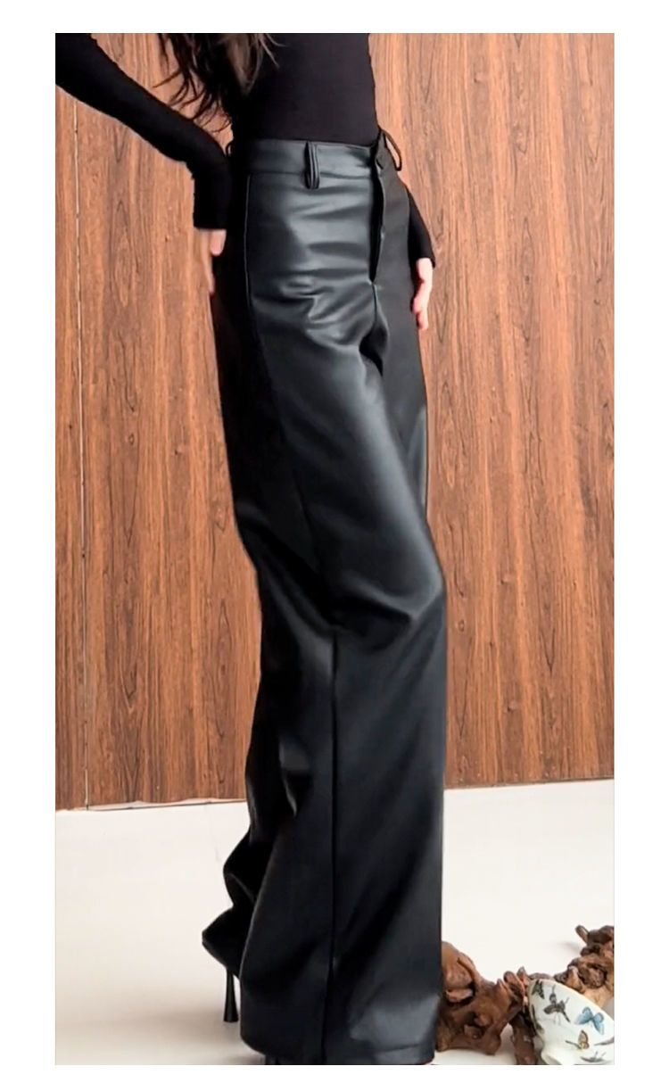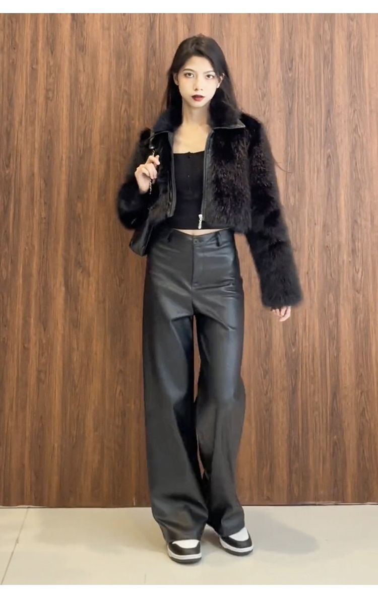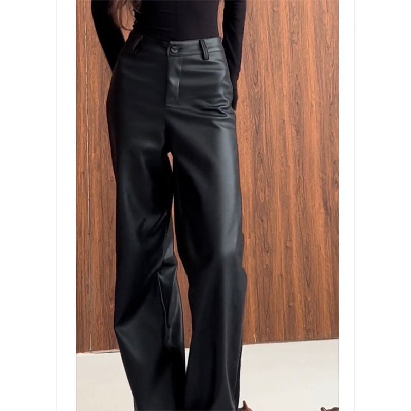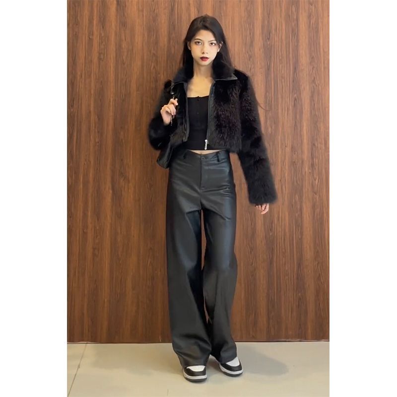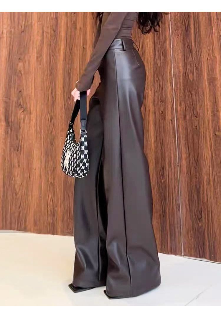 海宁皮裤2024拖地复古高腰美式宽松新款直筒显瘦休闲裤阔腿长裤