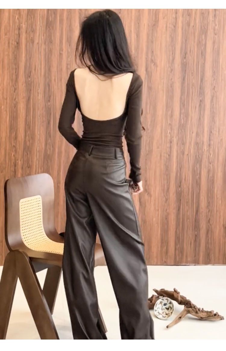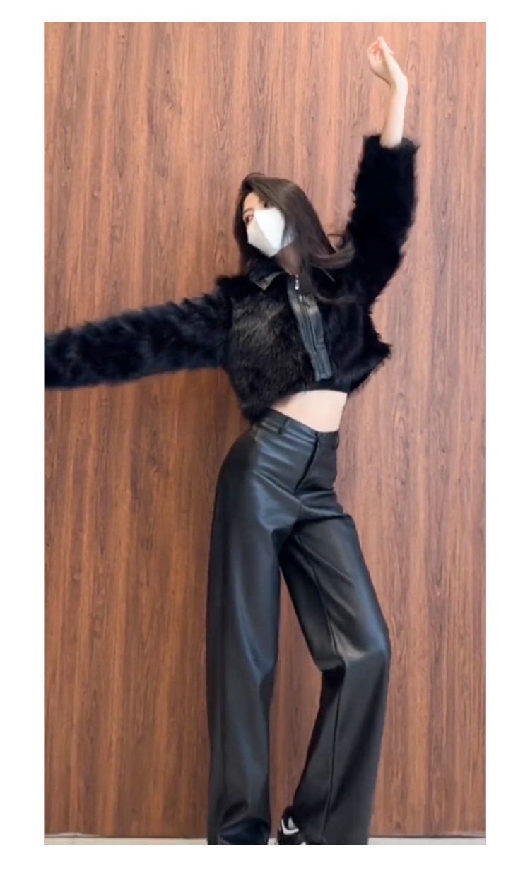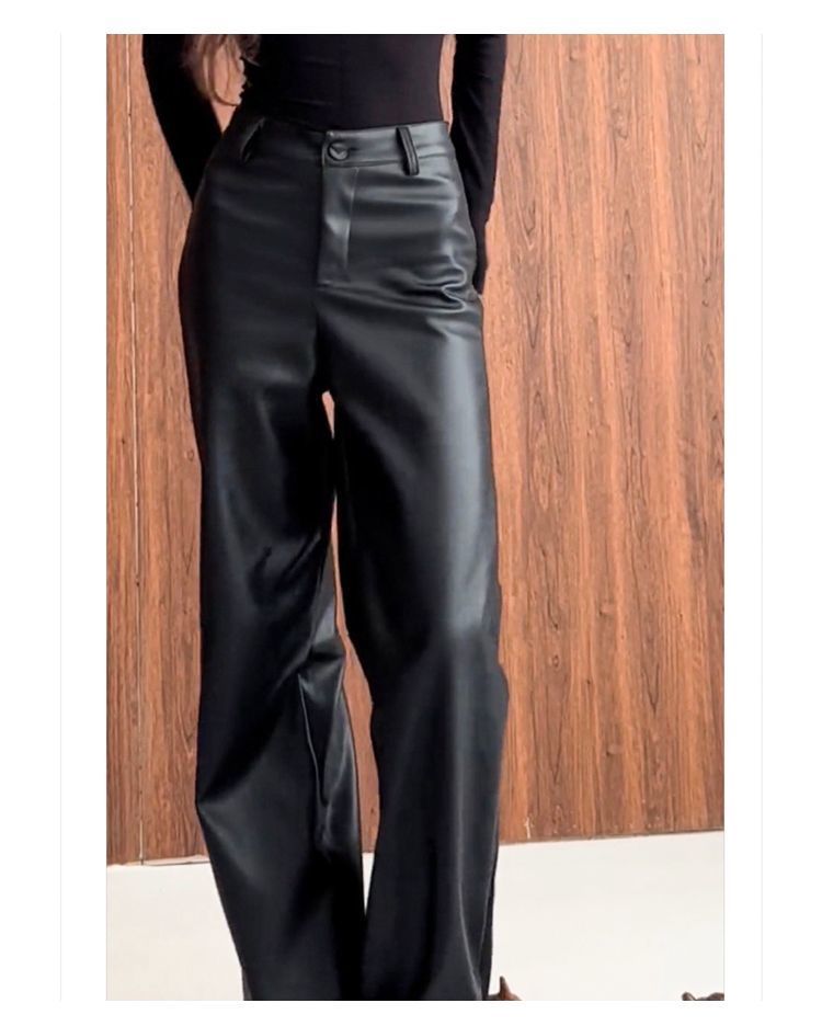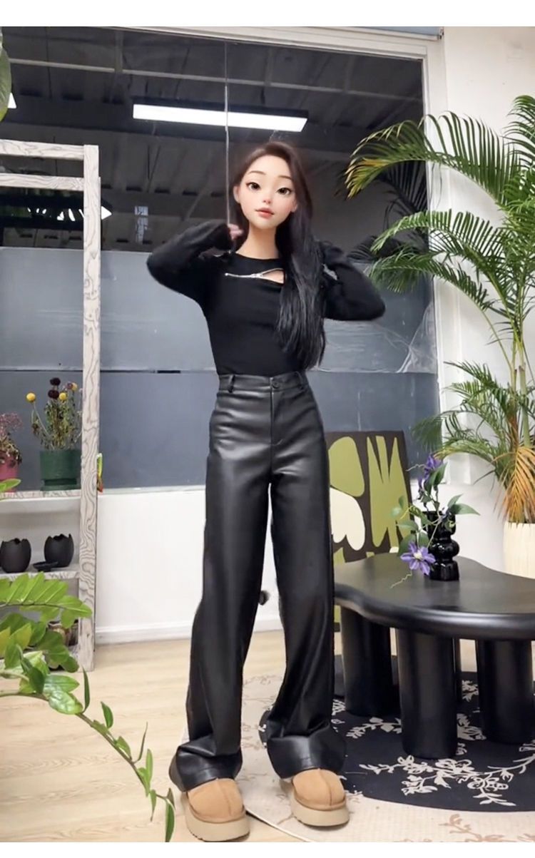 海宁皮裤2024拖地复古高腰美式宽松新款直筒显瘦休闲裤阔腿长裤