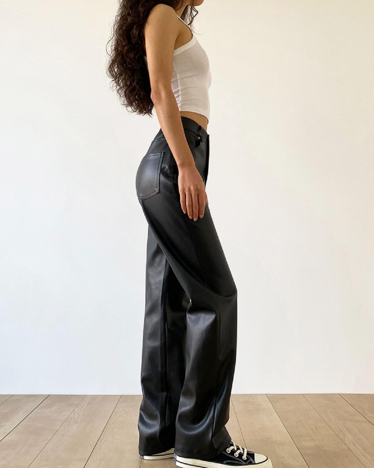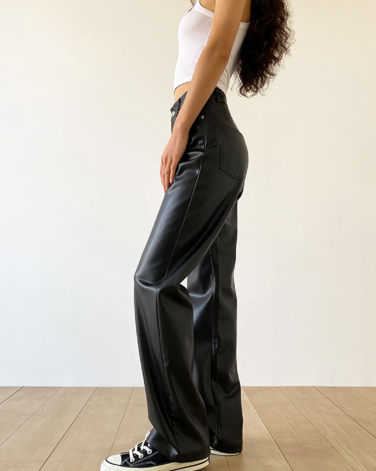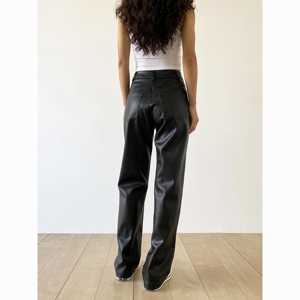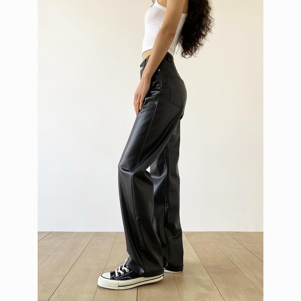 大码pu皮裤女胖妹妹复古宽松显瘦直筒裤春秋新款包臀长裤阔腿裤潮