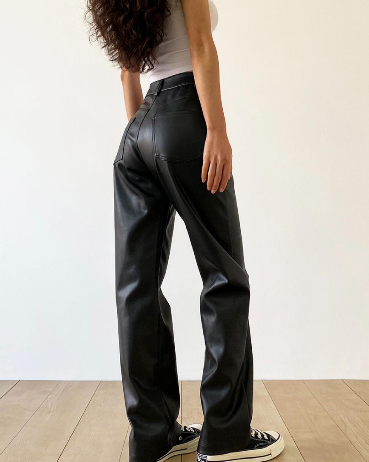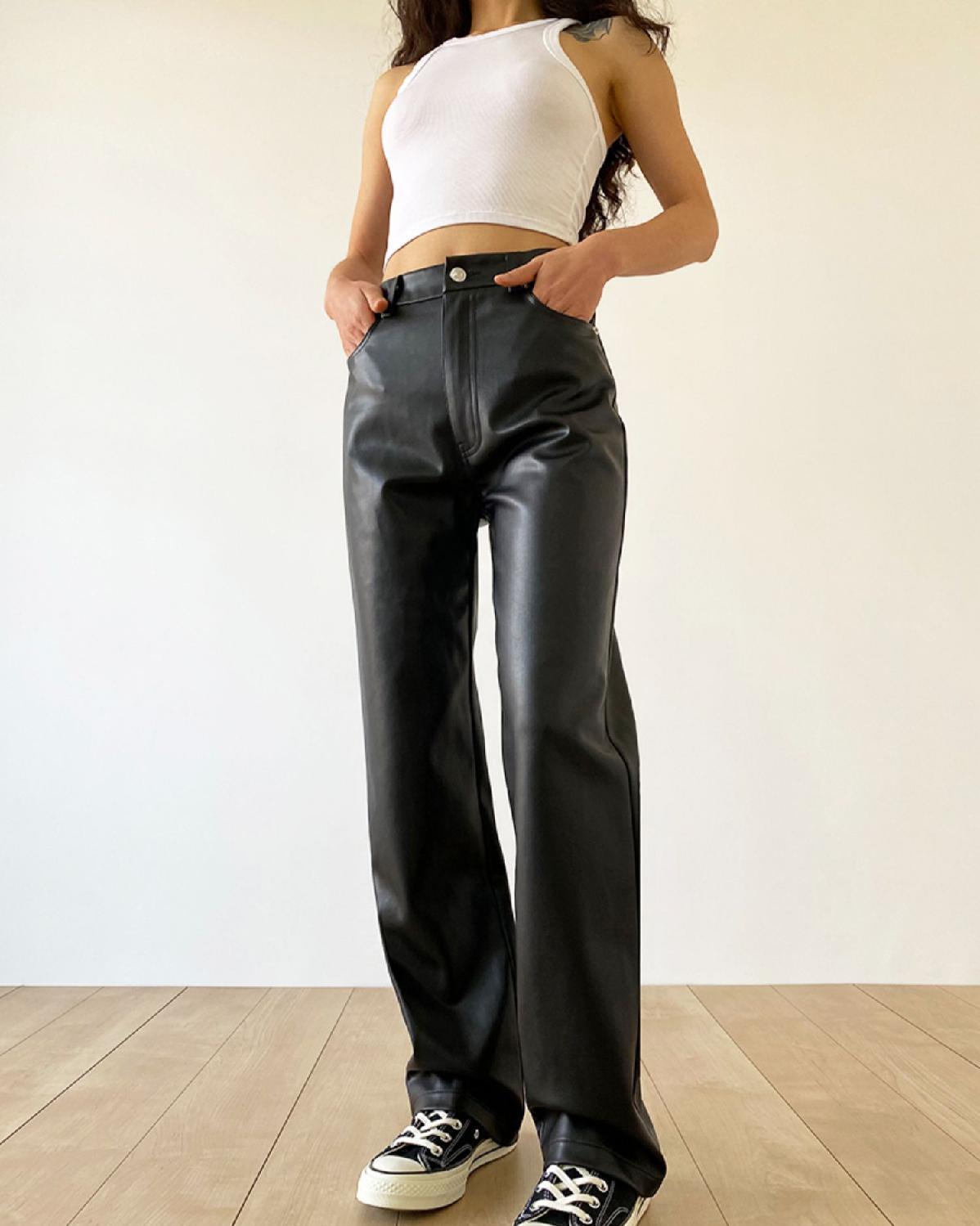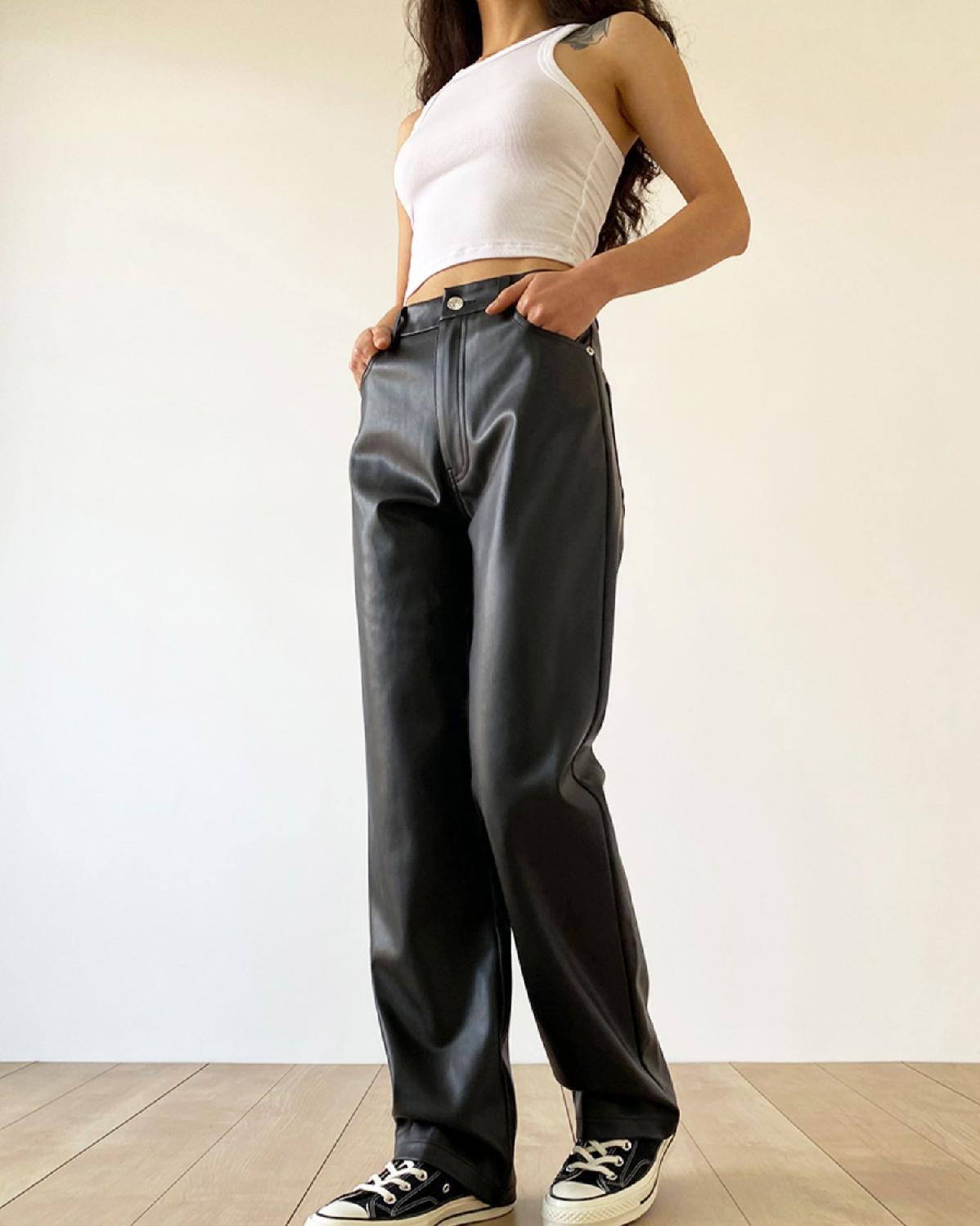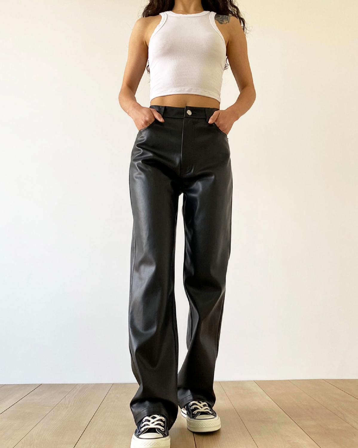 大码pu皮裤女胖妹妹复古宽松显瘦直筒裤春秋新款包臀长裤阔腿裤潮