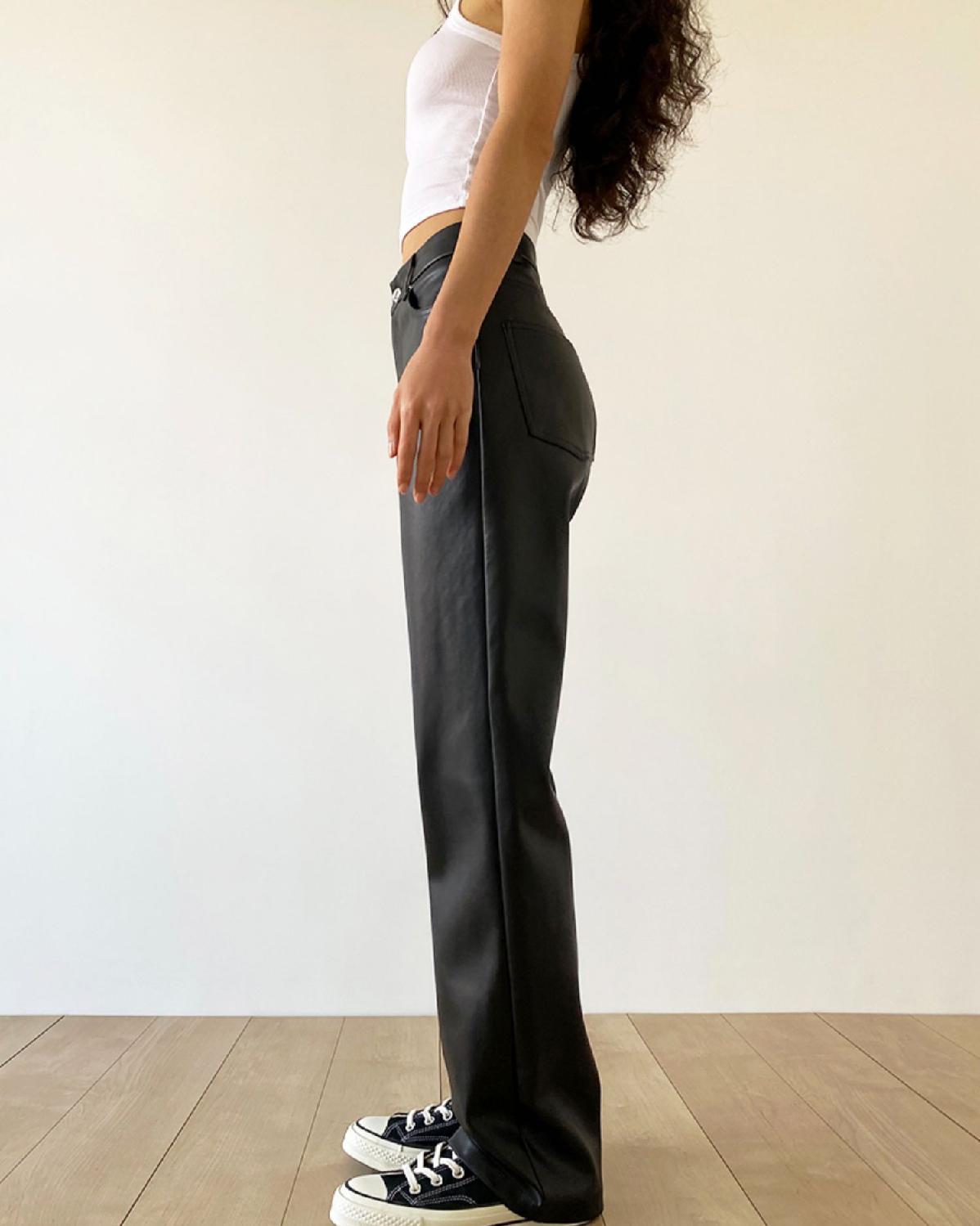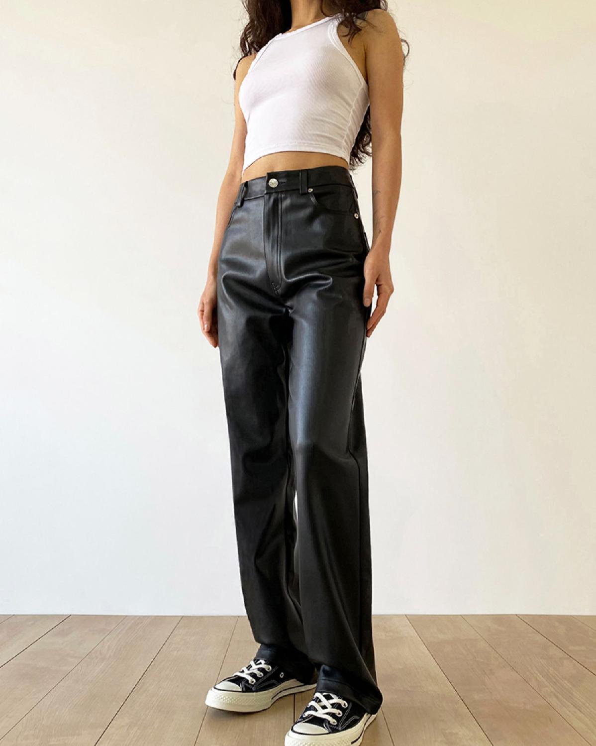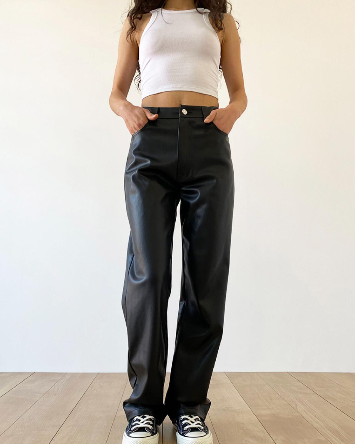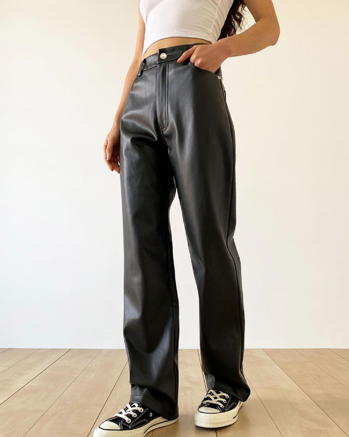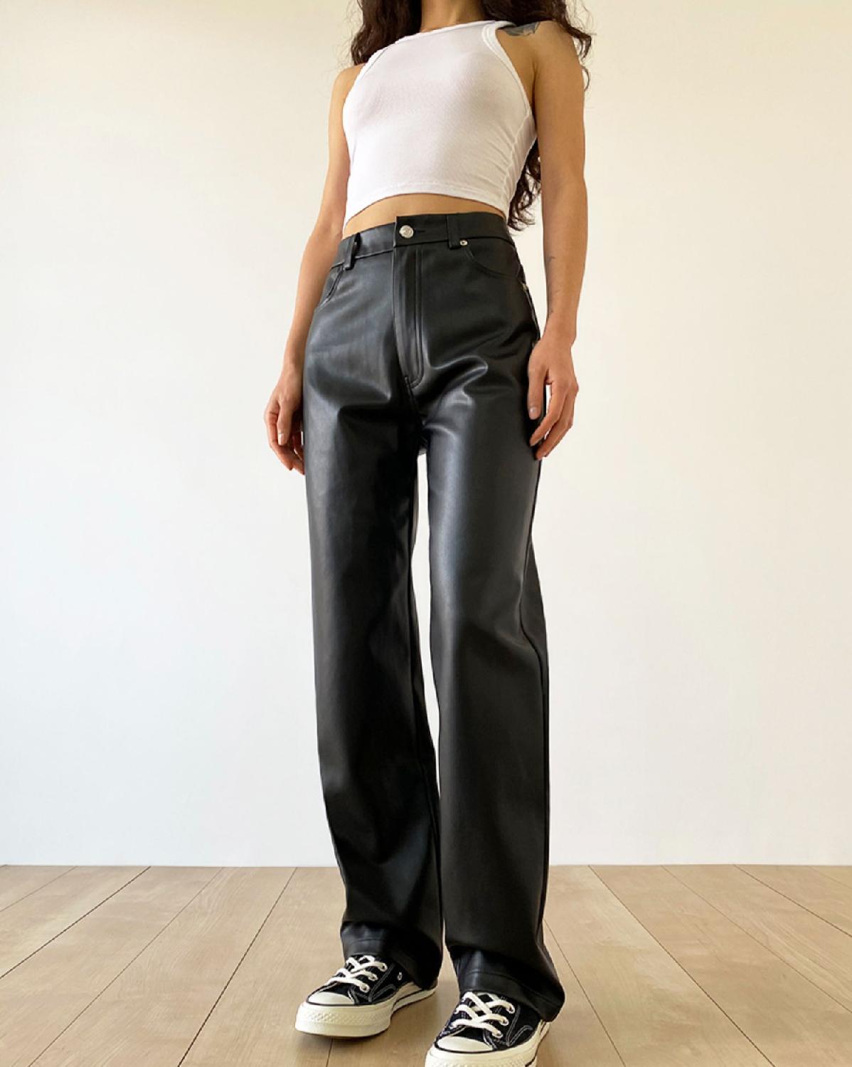 大码pu皮裤女胖妹妹复古宽松显瘦直筒裤春秋新款包臀长裤阔腿裤潮