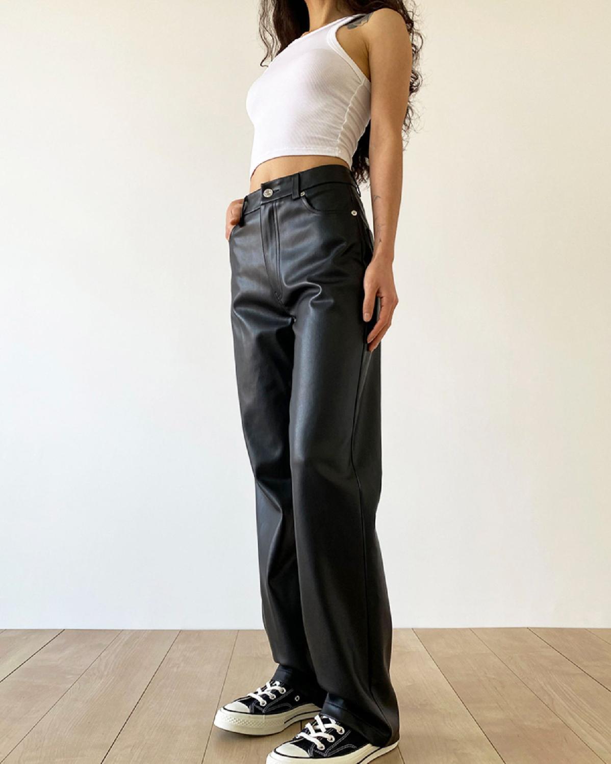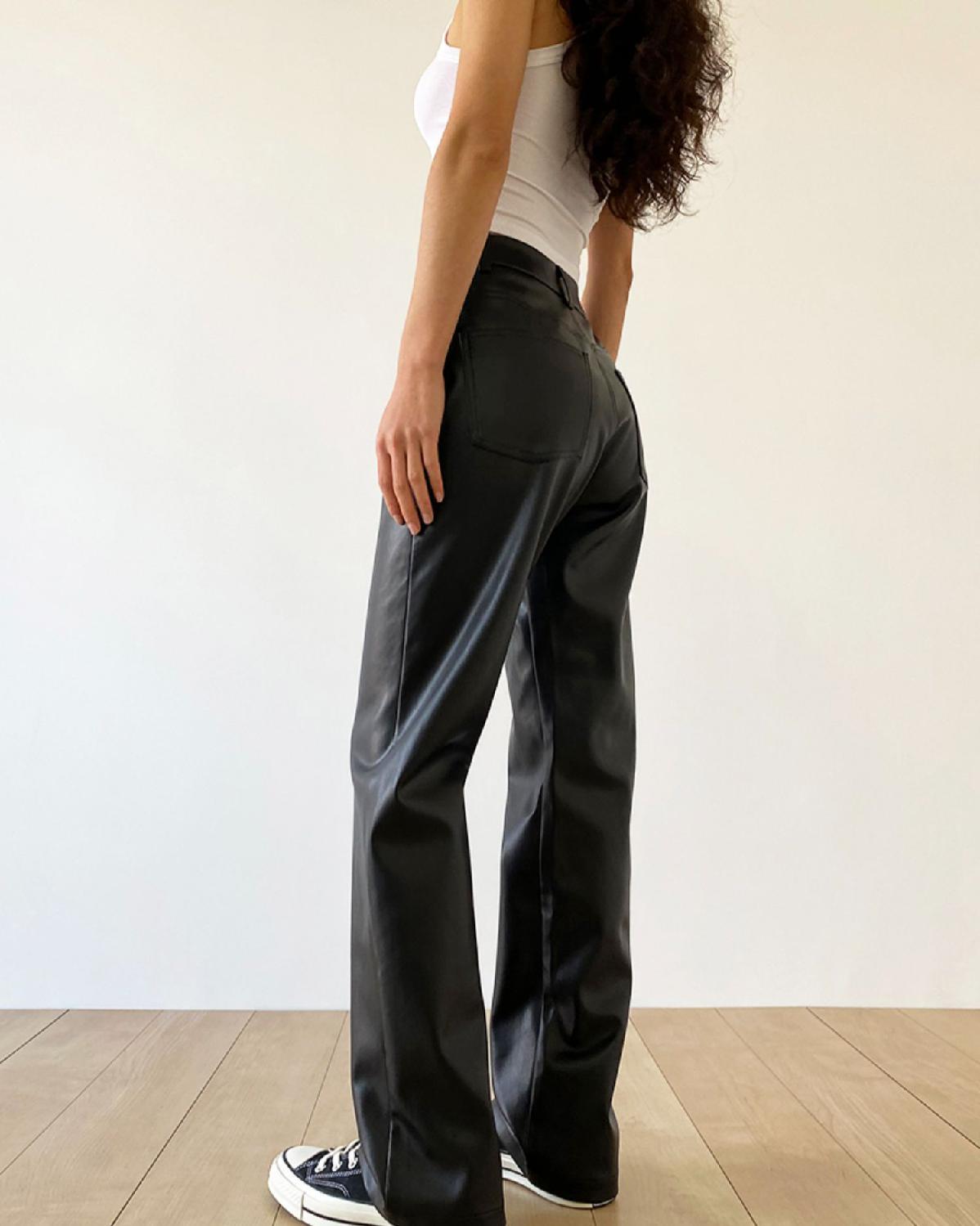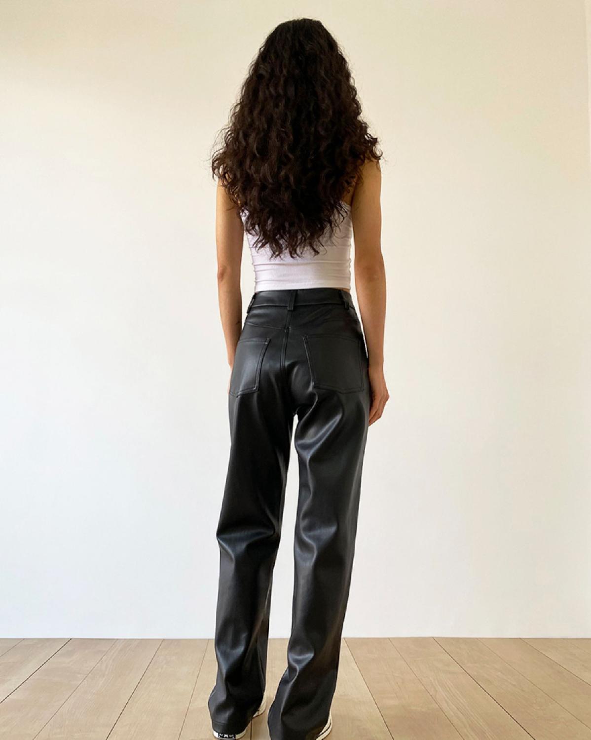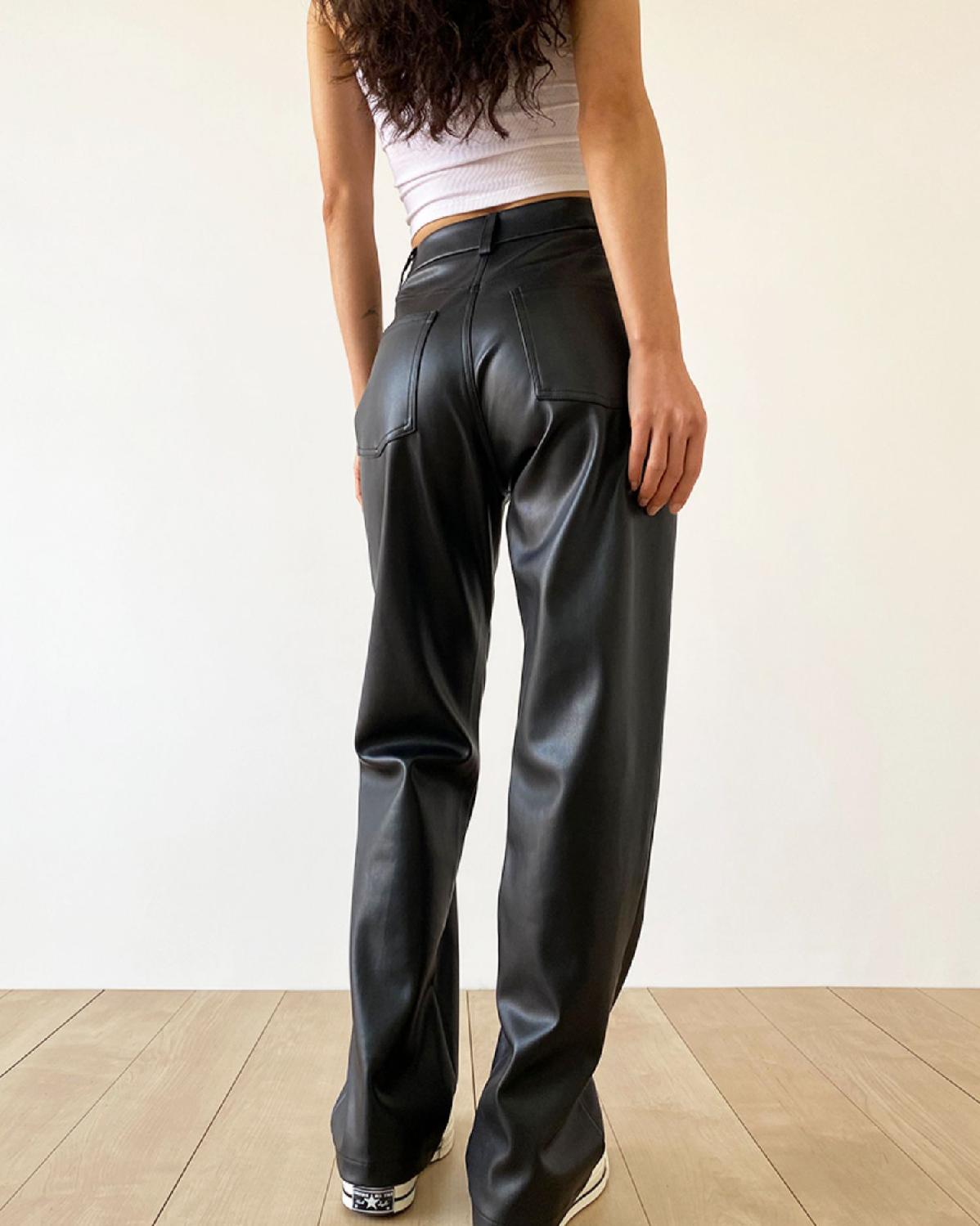 大码pu皮裤女胖妹妹复古宽松显瘦直筒裤春秋新款包臀长裤阔腿裤潮