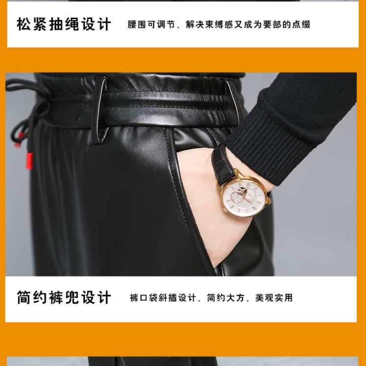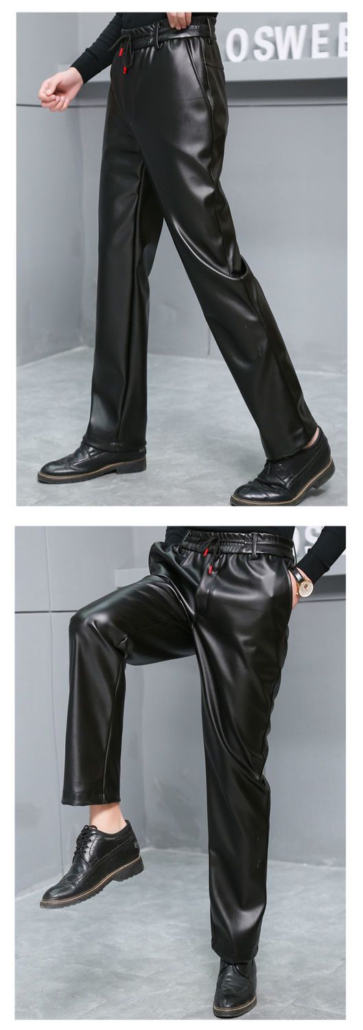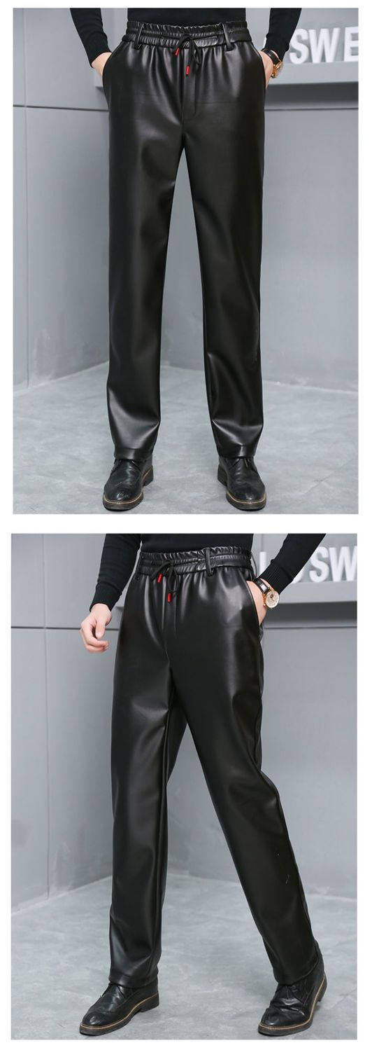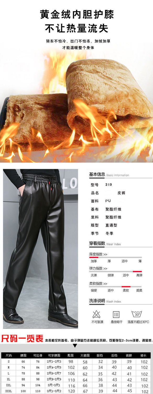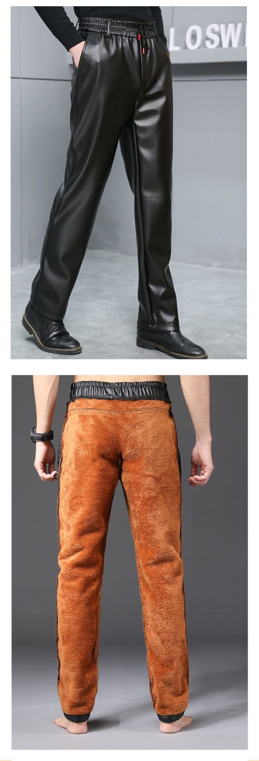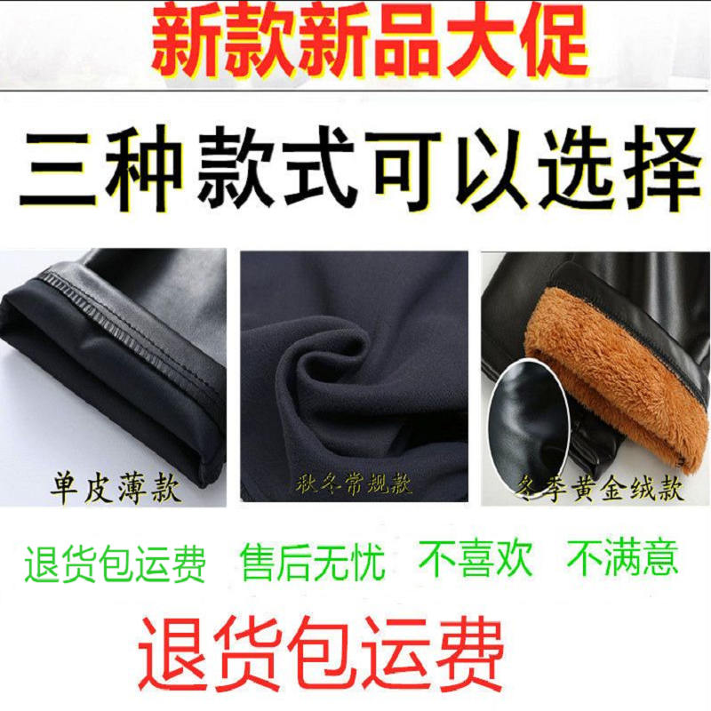 皮裤子男士防水软皮加绒加厚秋冬季直筒宽松皮毛一体工作中老年裤