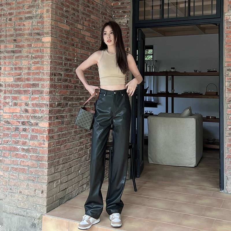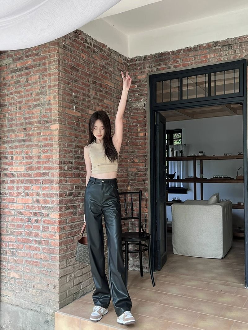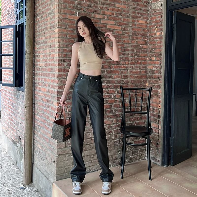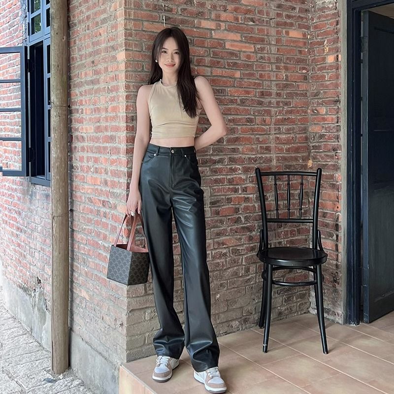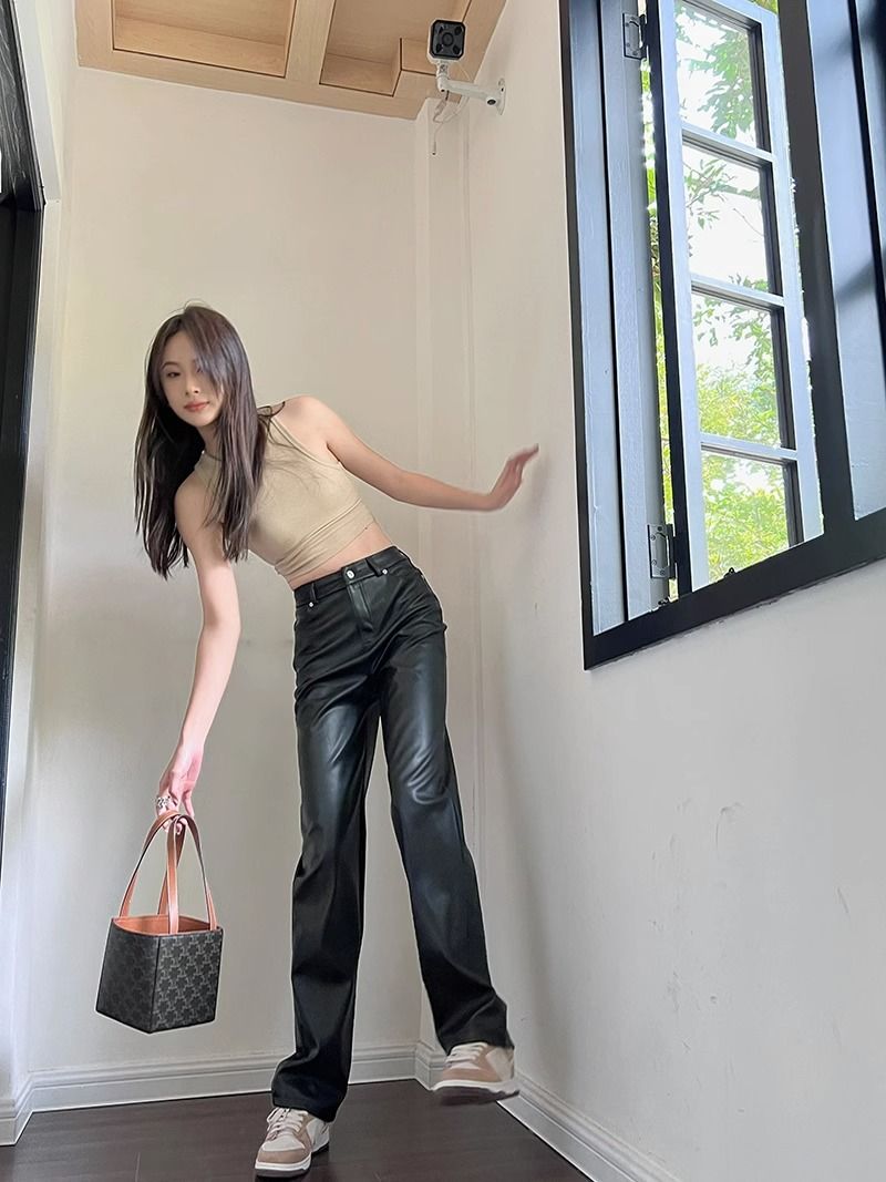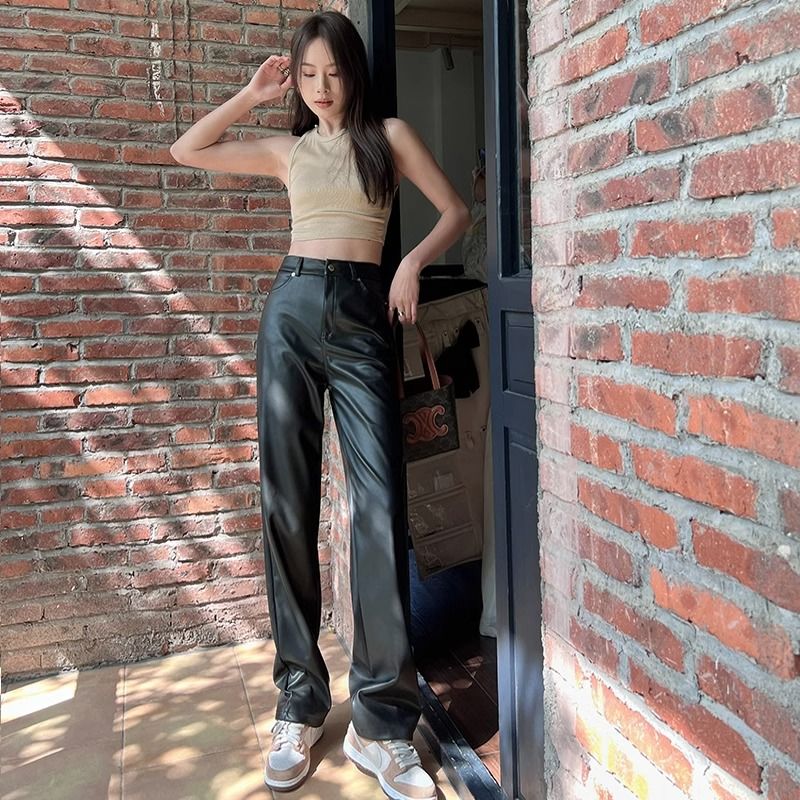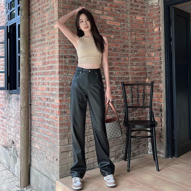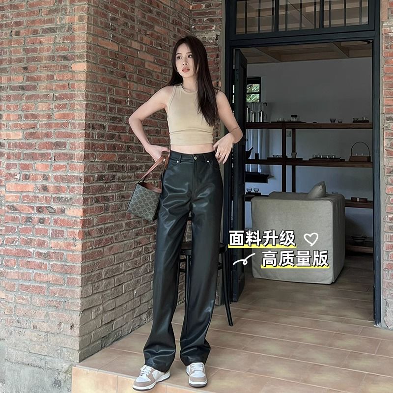 黑色pu皮直筒皮裤女2024年秋季新款大码胖mm高腰显瘦阔腿休闲长裤