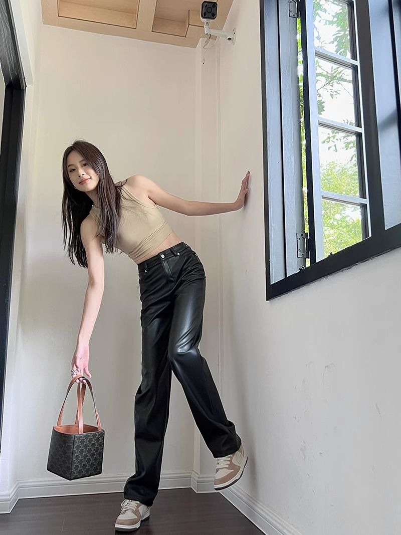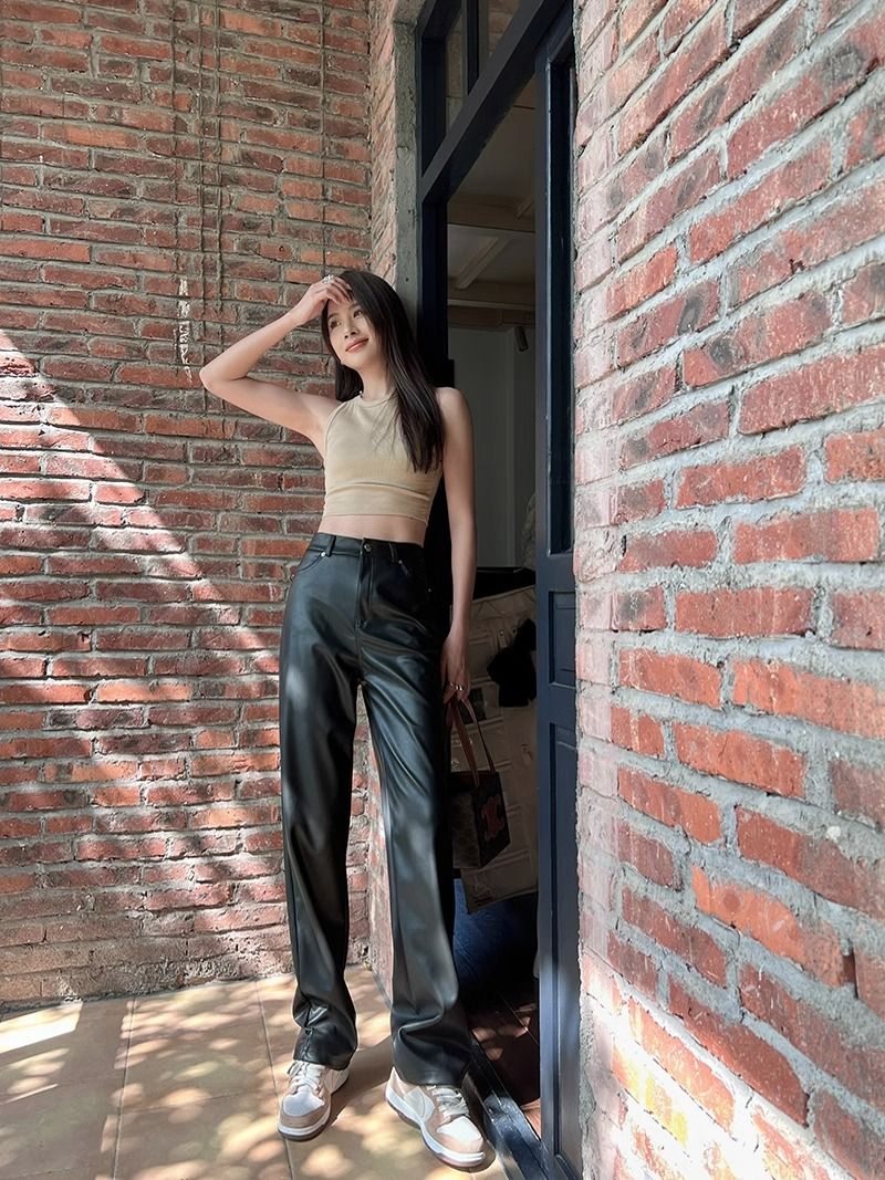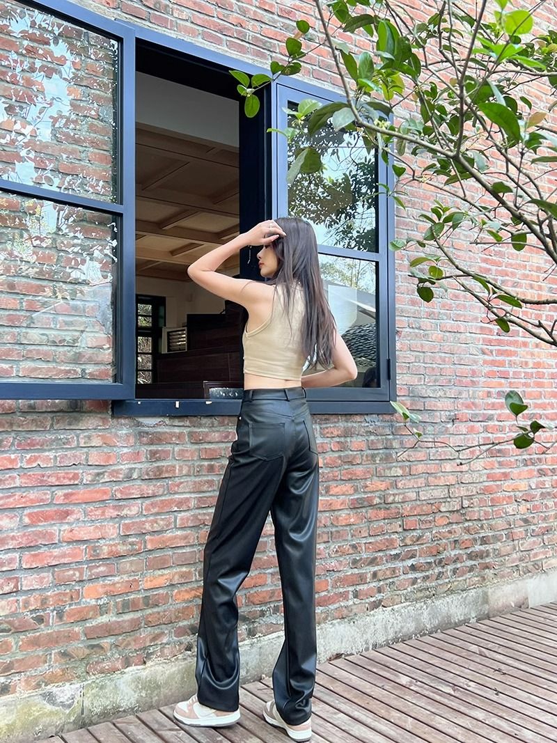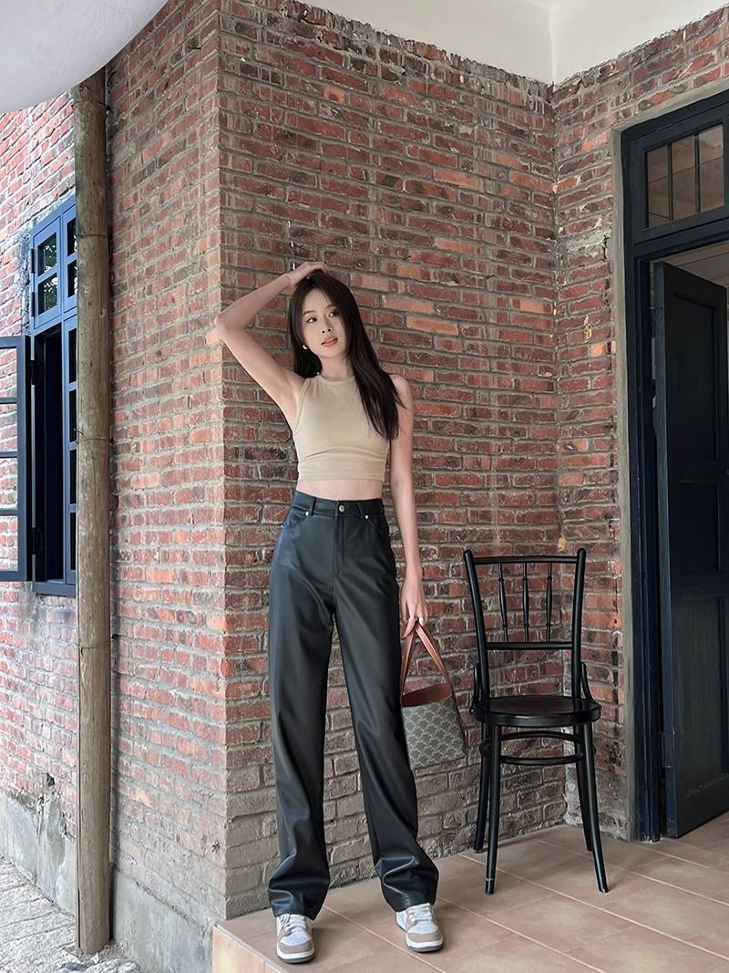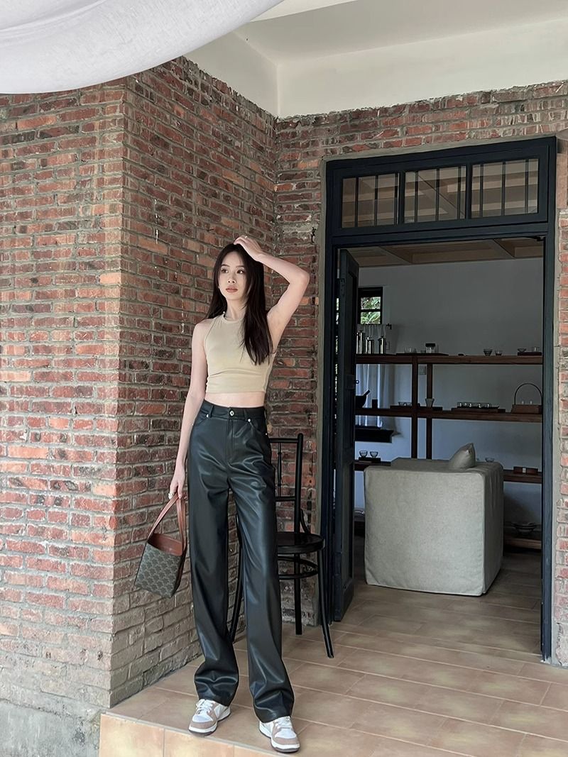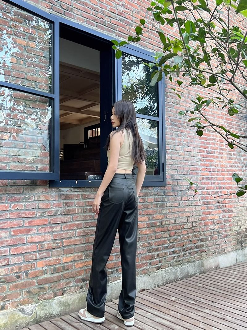 黑色pu皮直筒皮裤女2024年秋季新款大码胖mm高腰显瘦阔腿休闲长裤
