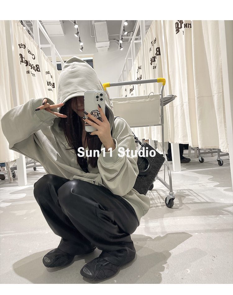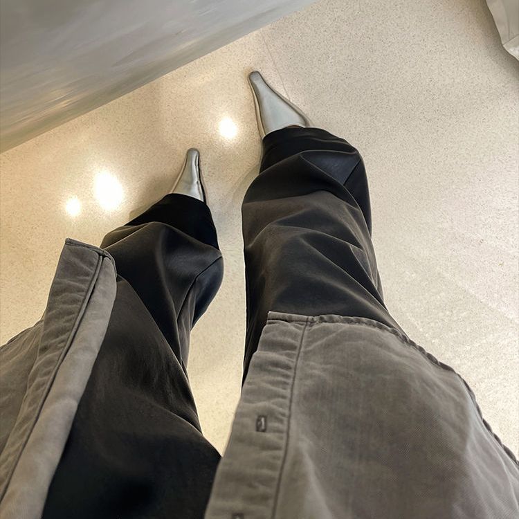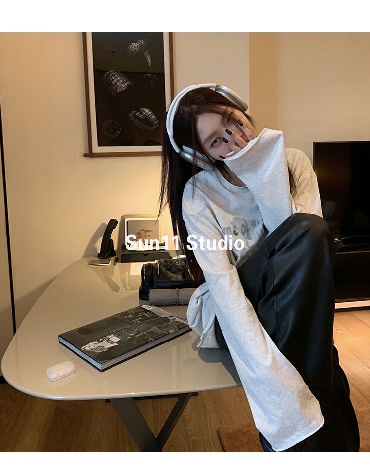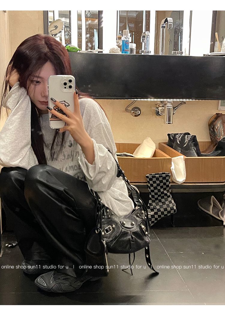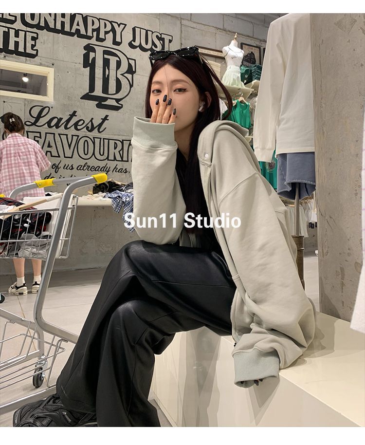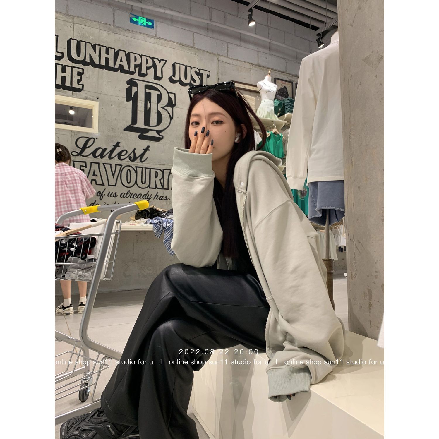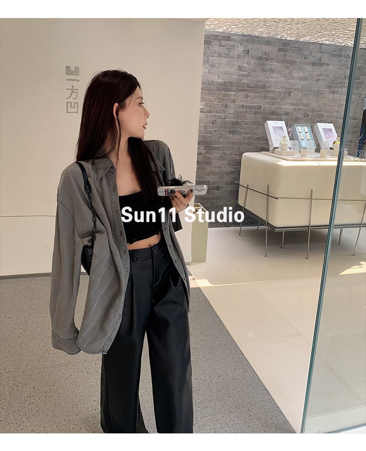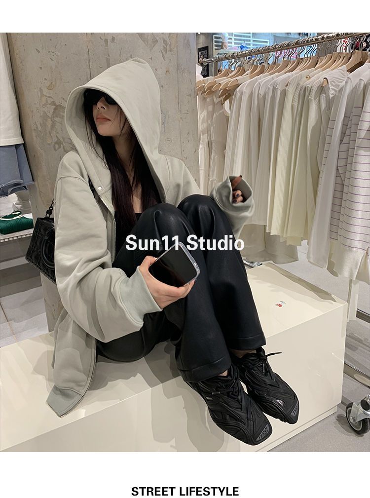 黑色pu皮休闲裤女秋季大码高腰显瘦遮肉宽松阔腿垂感直筒哑光皮裤