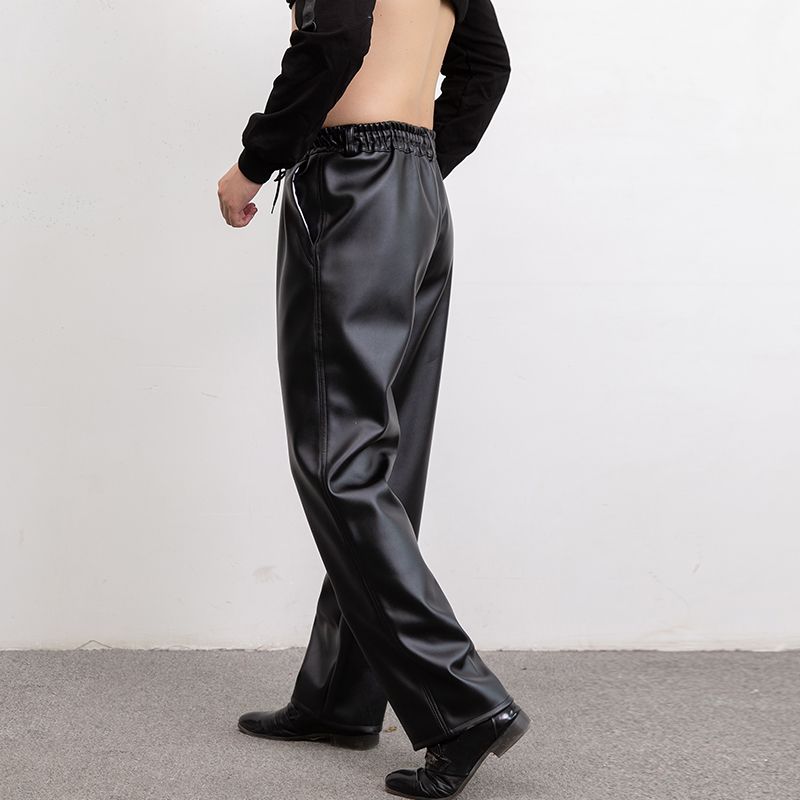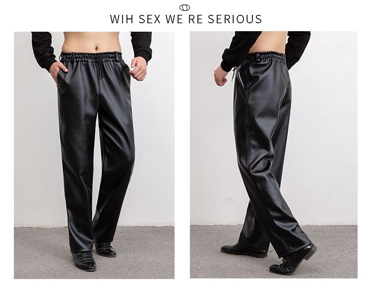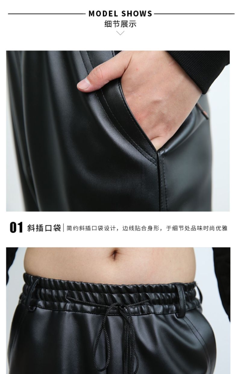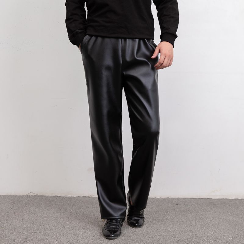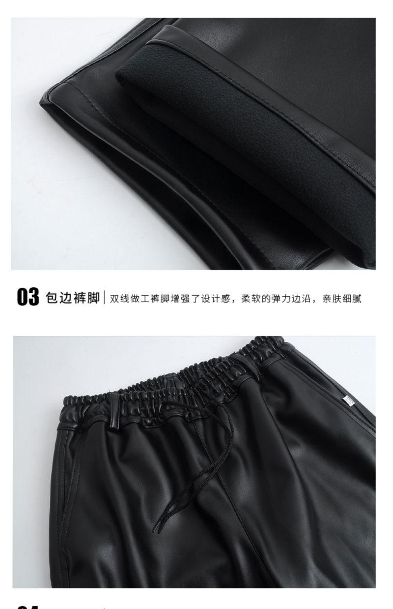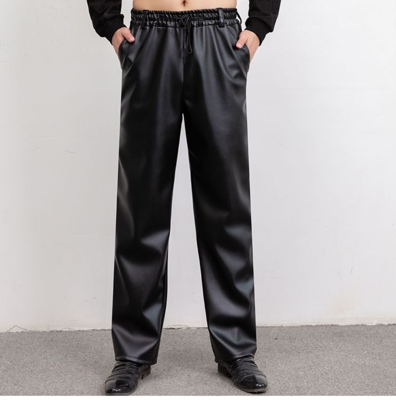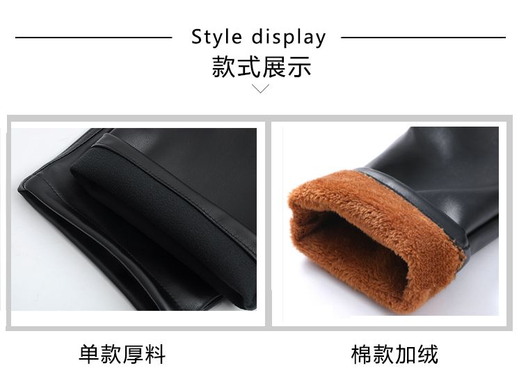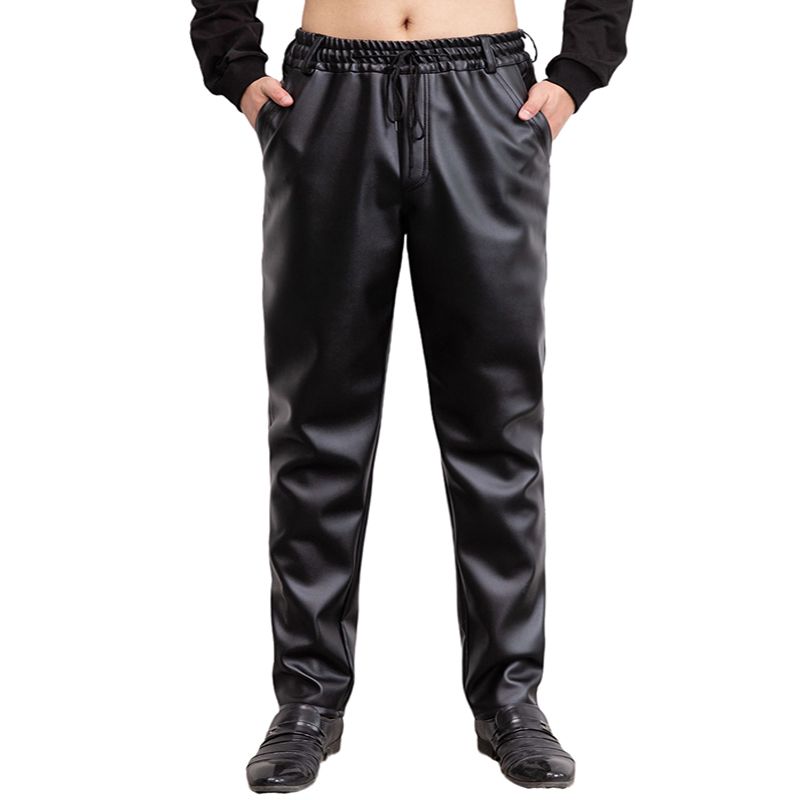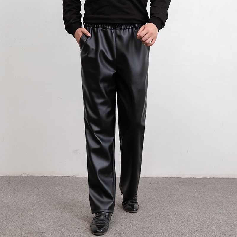 秋冬季松紧腰皮裤男加绒加厚中老年高腰保暖男士防水防油PU皮裤子