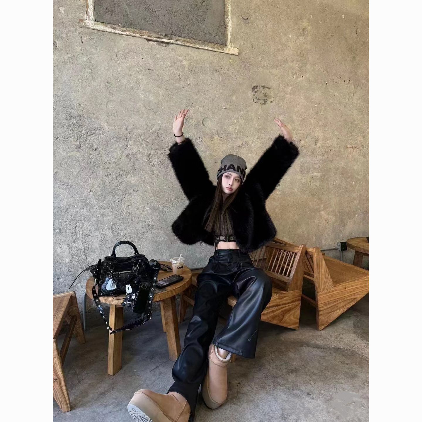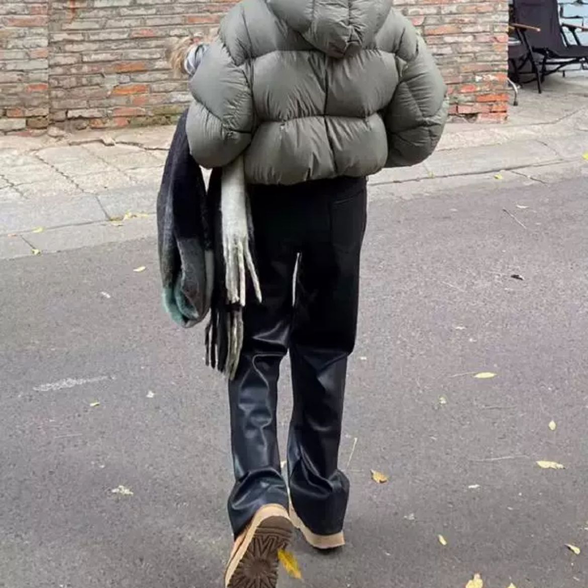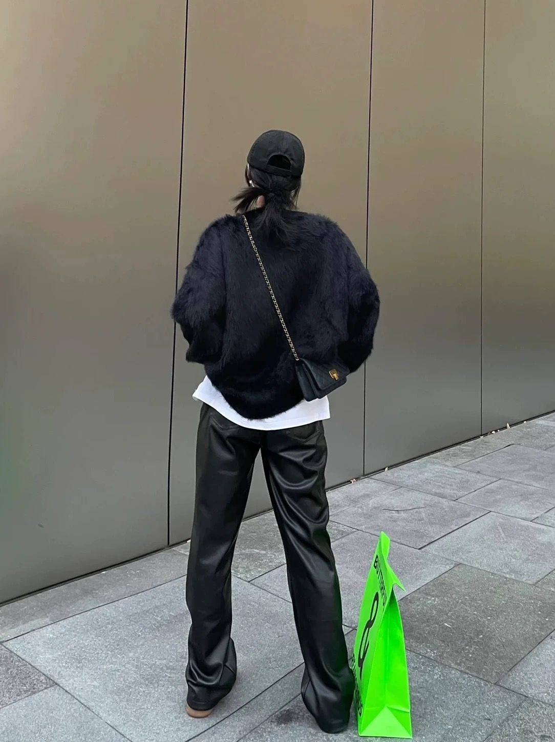 哑光皮裤女2024秋冬加绒高腰休闲宽松直筒窄版阔腿裤高腰拖地裤子