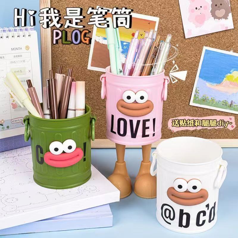 ins高颜值卡通个性笔筒学生桌面办公室大容量可爱简约复古收纳桶