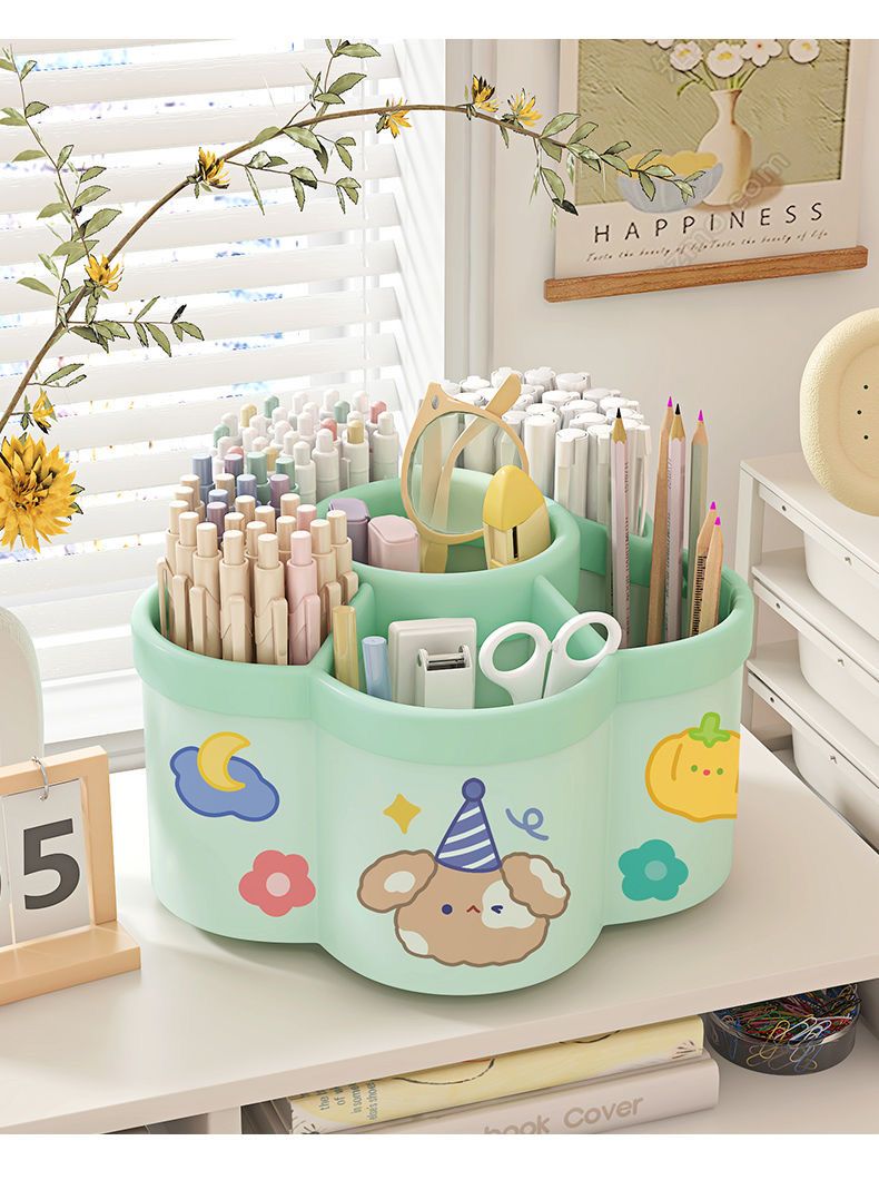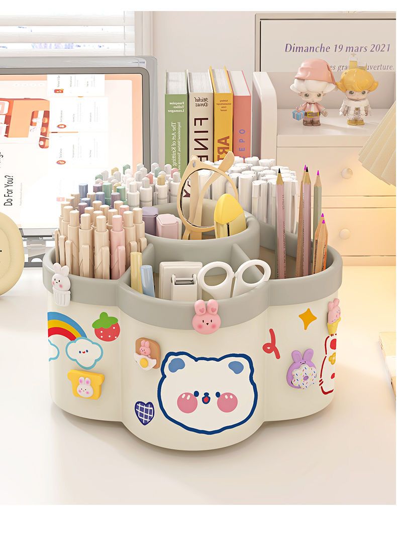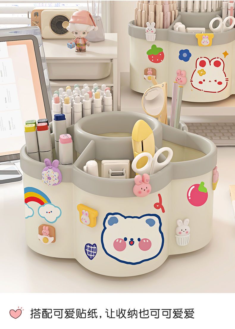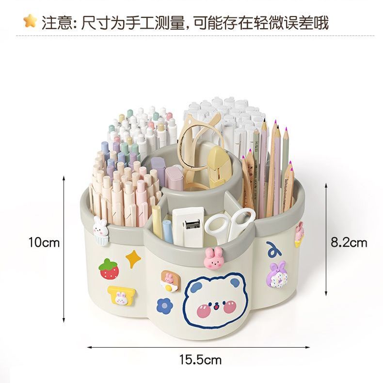 新款梅花360度旋转多格笔筒diy大容量桌面文具收纳盒儿童学生书桌