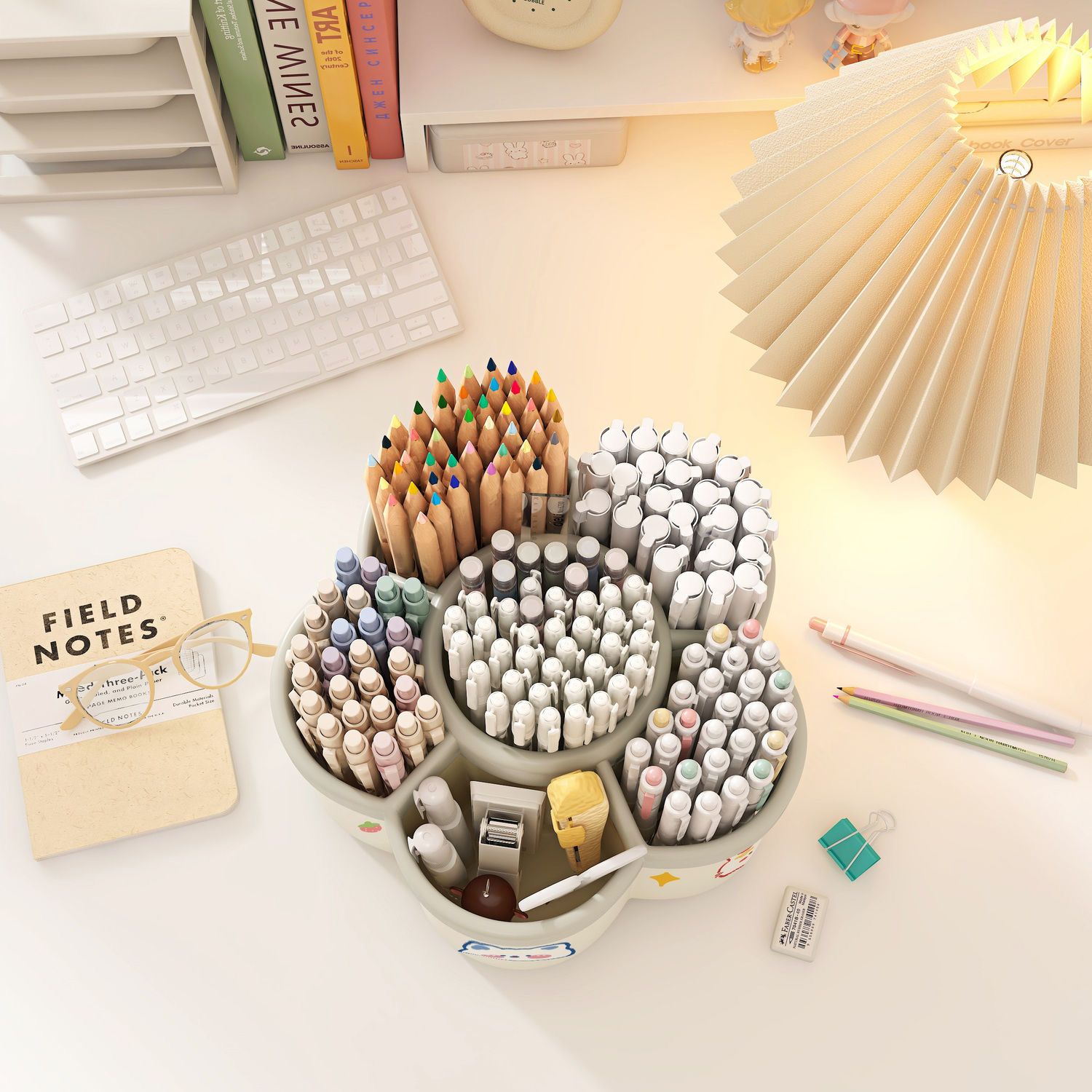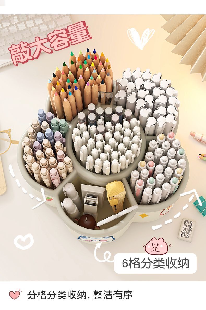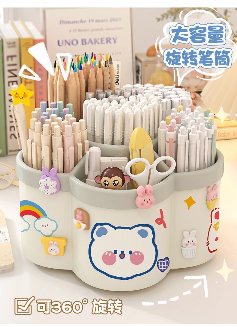 新款梅花360度旋转多格笔筒diy大容量桌面文具收纳盒儿童学生书桌
