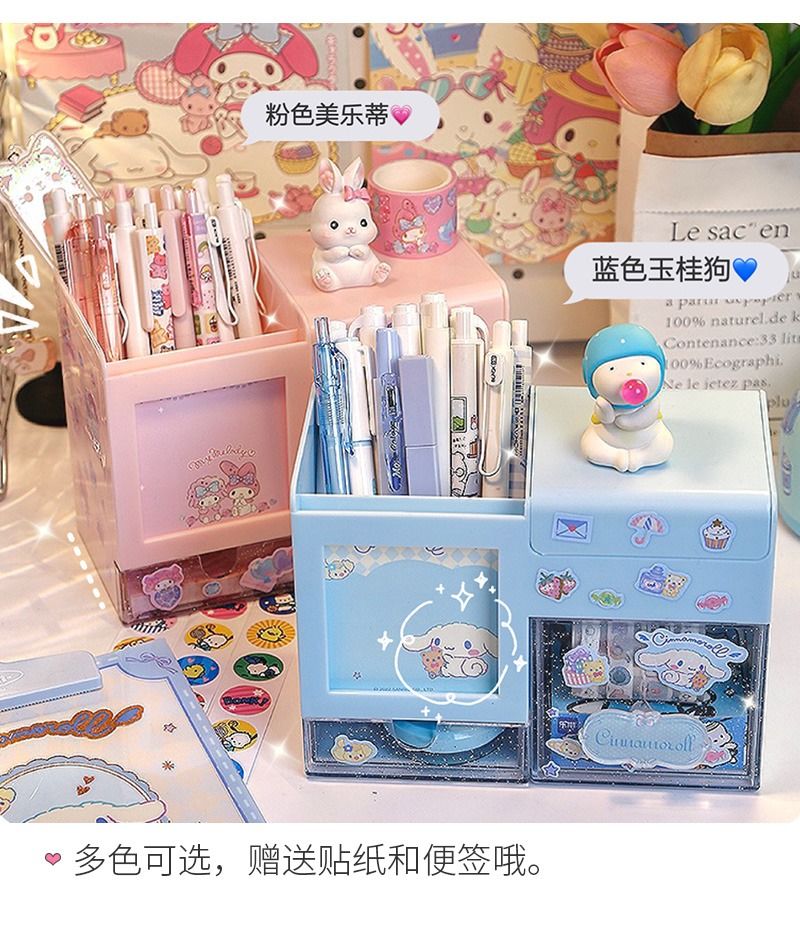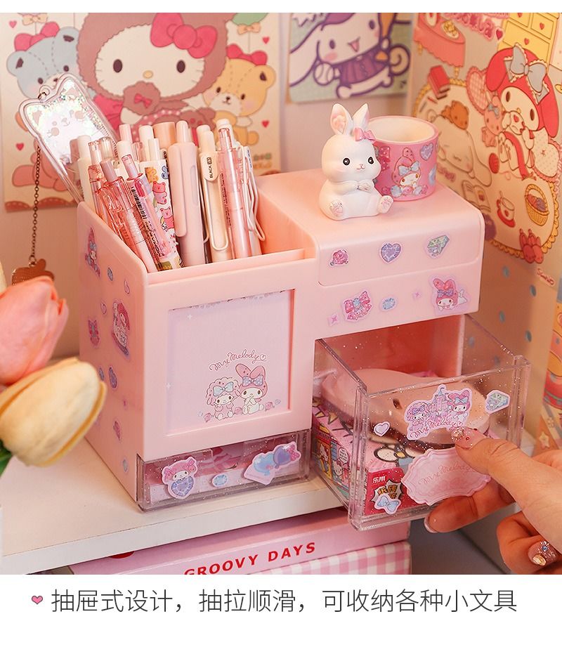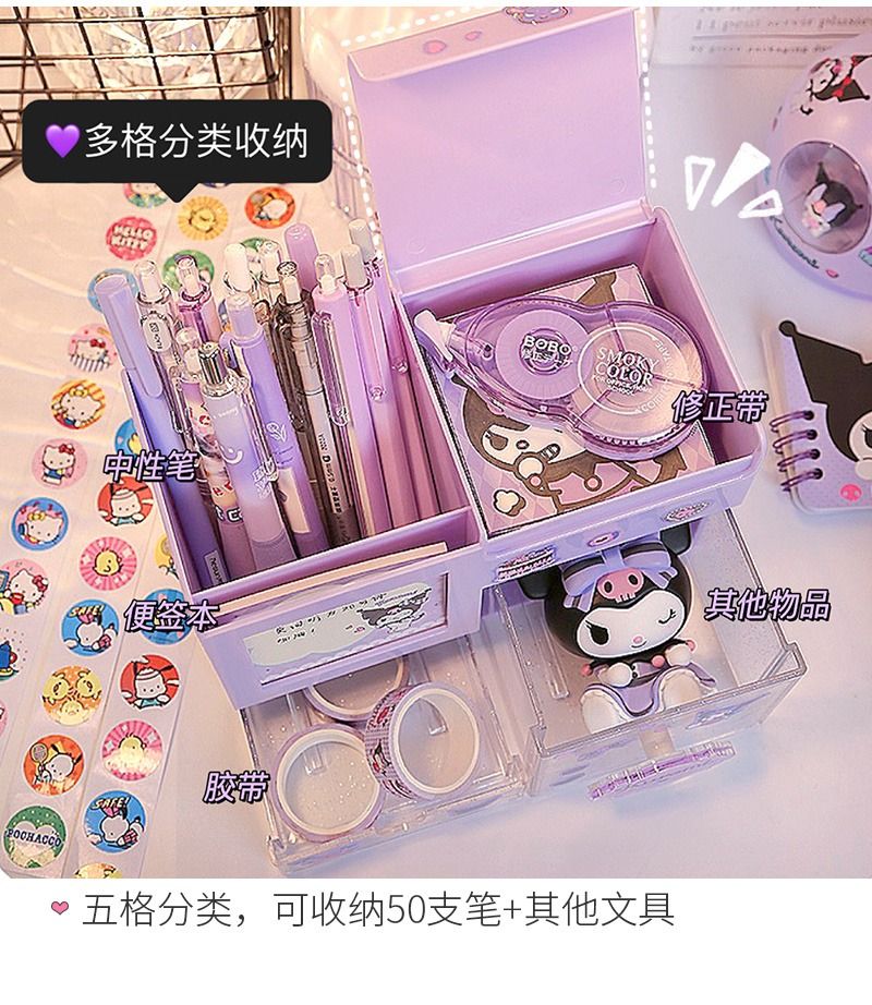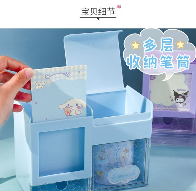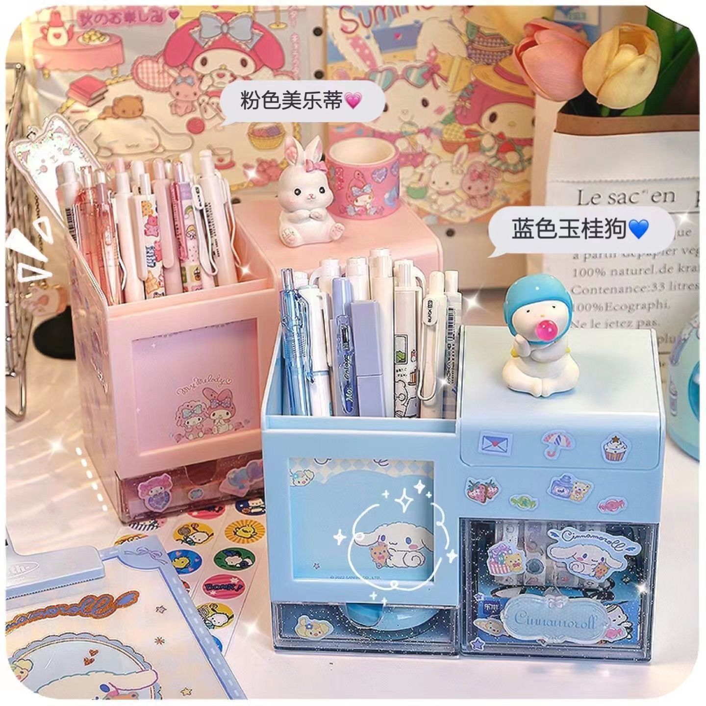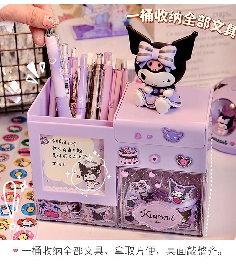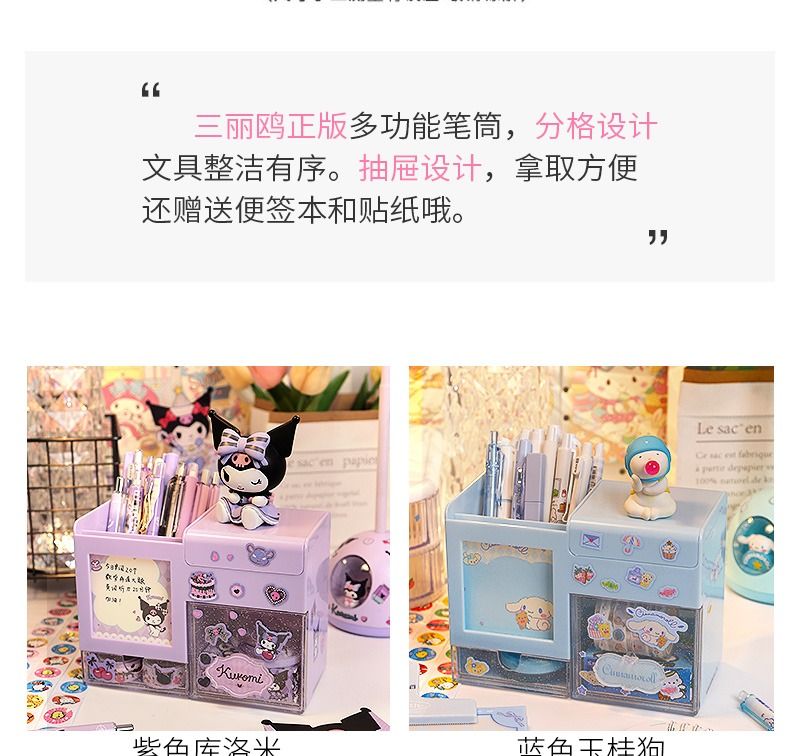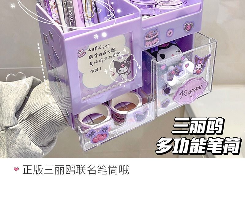 正版三丽鸥笔筒收纳盒一体可爱少女心文具办公桌面笔架库洛米笔桶