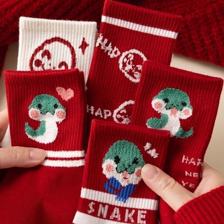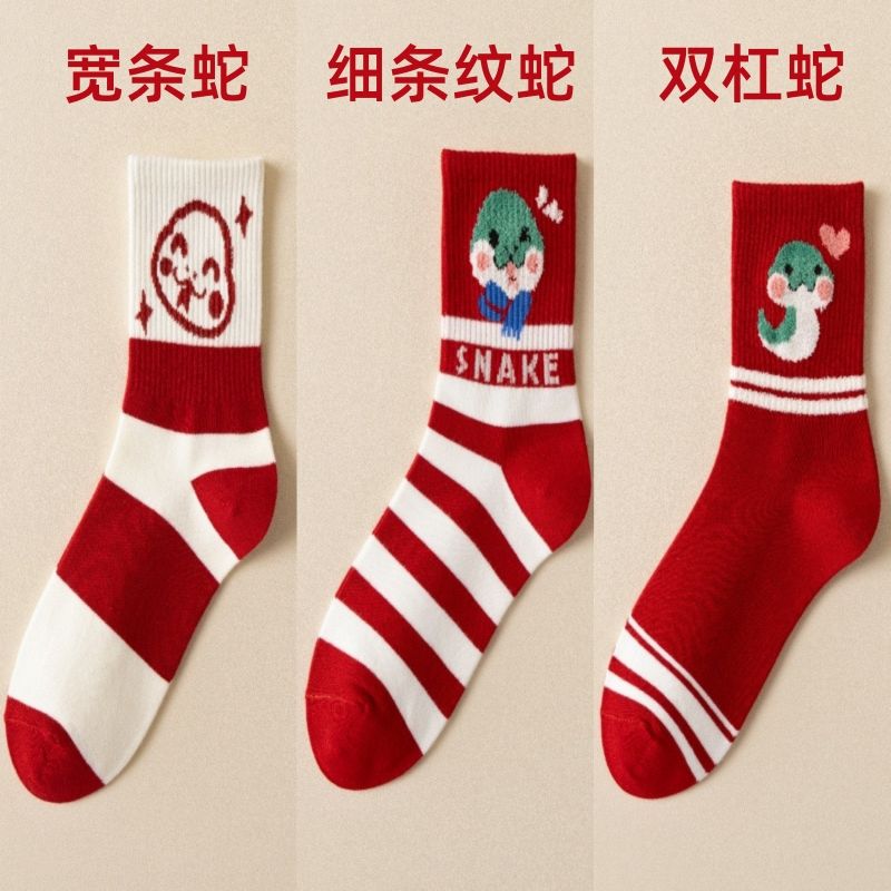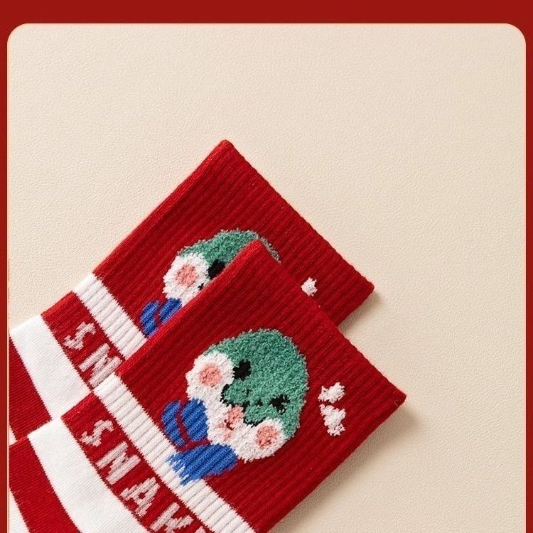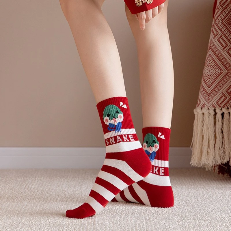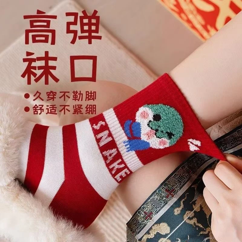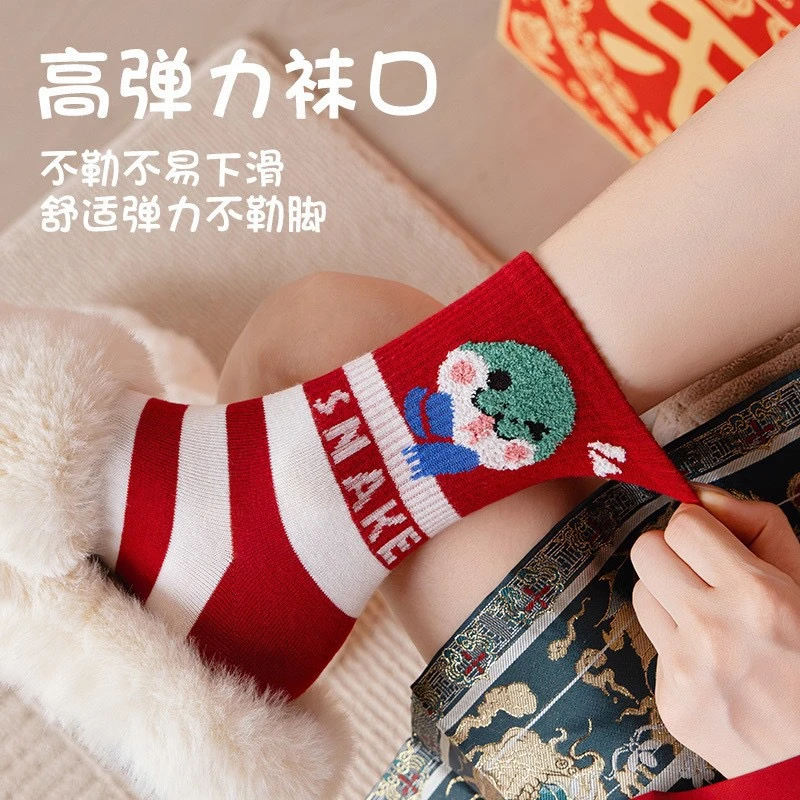 蛇年新款本命年袜子女秋冬中筒棉袜2025圣诞新年礼物卡通属蛇袜子