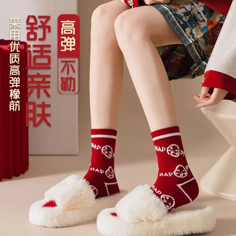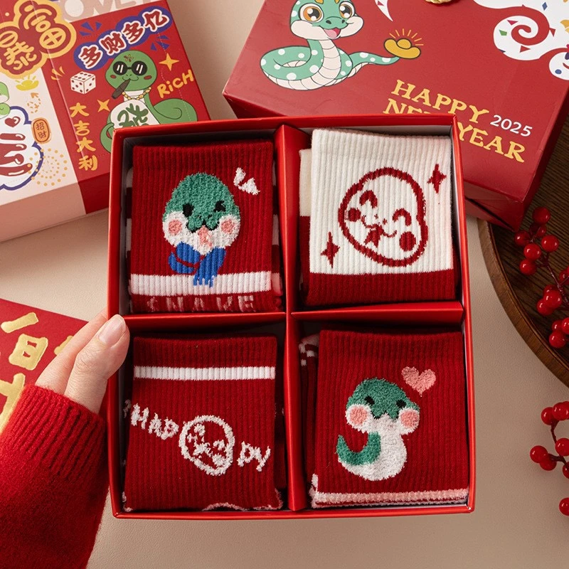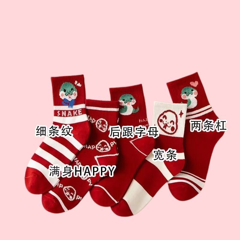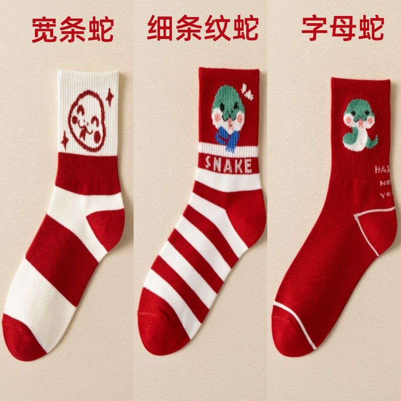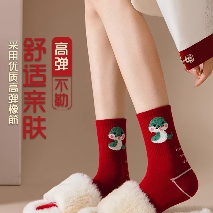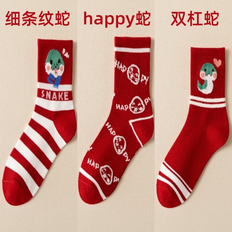 蛇年新款本命年袜子女秋冬中筒棉袜2025圣诞新年礼物卡通属蛇袜子