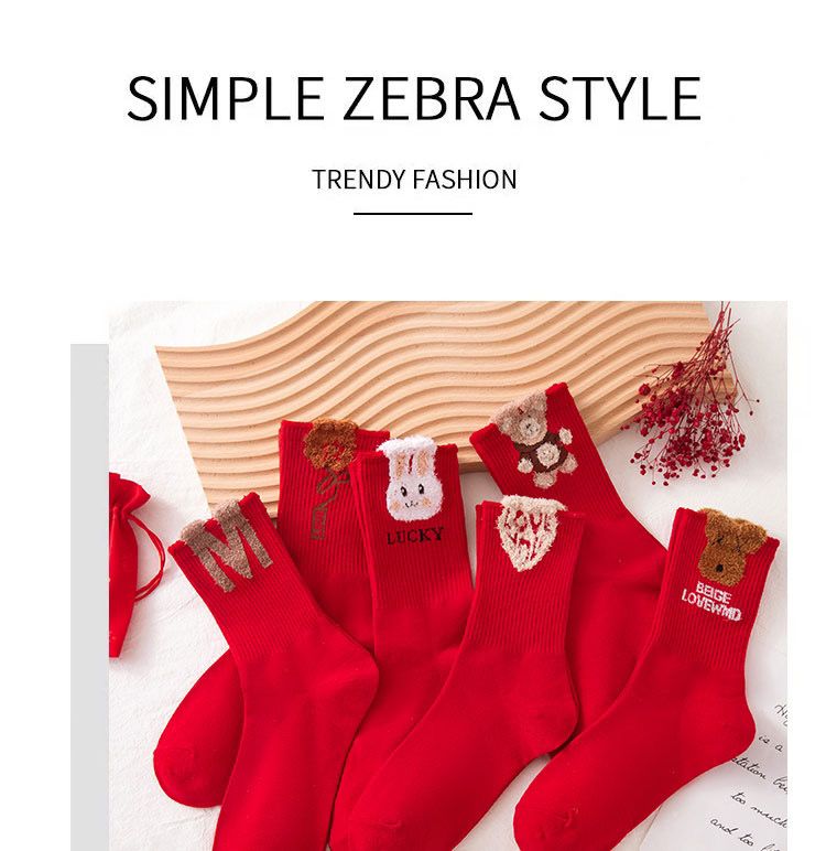 本命年大红袜子女韩版中筒圣诞袜ins潮百搭高颜值森系秋冬长筒袜