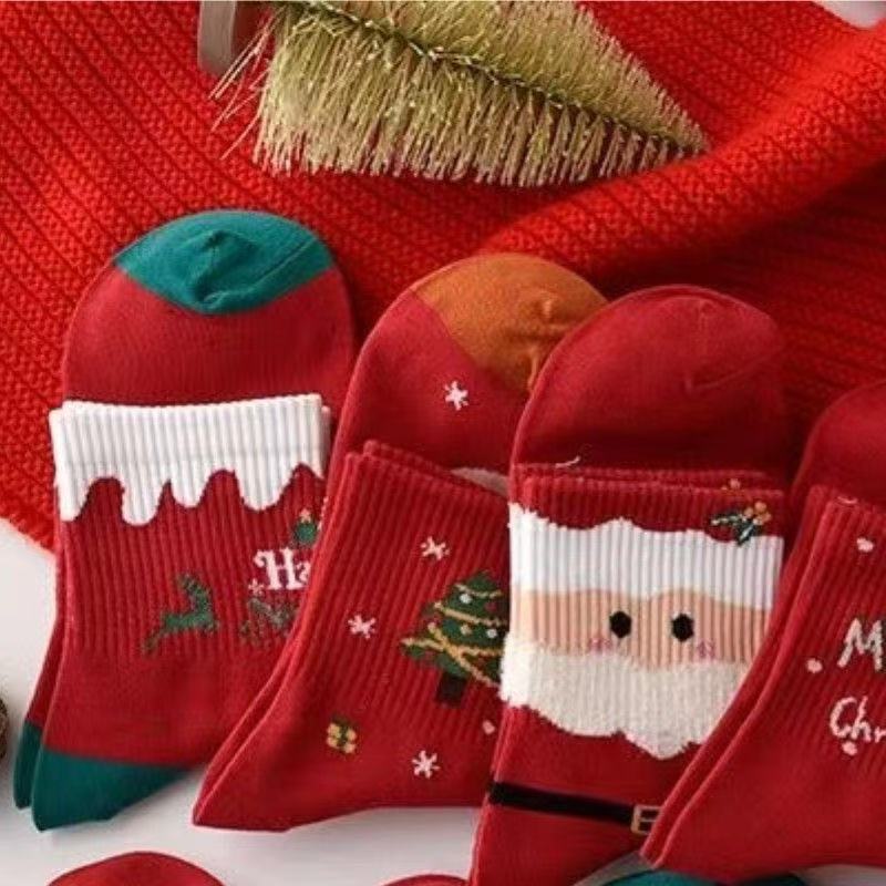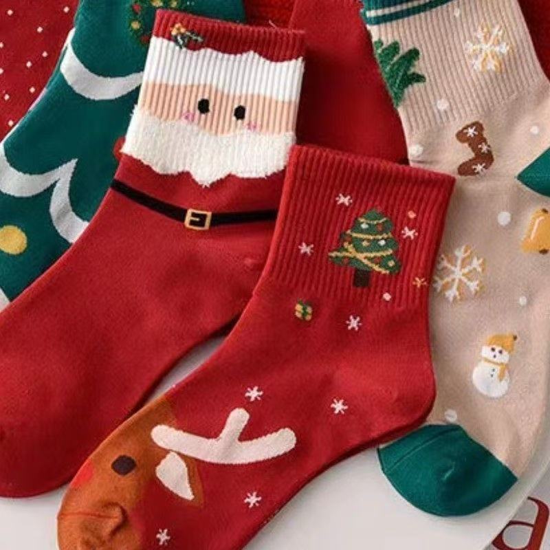 圣诞袜子女中筒袜秋冬季红色本命年袜子情侣圣诞节礼物长筒袜喜