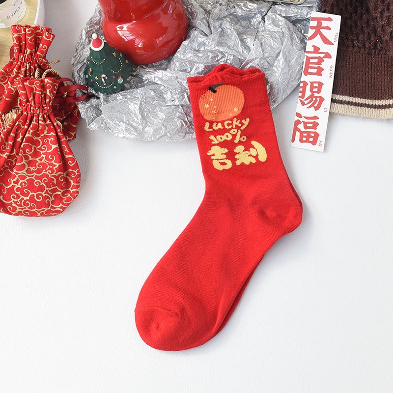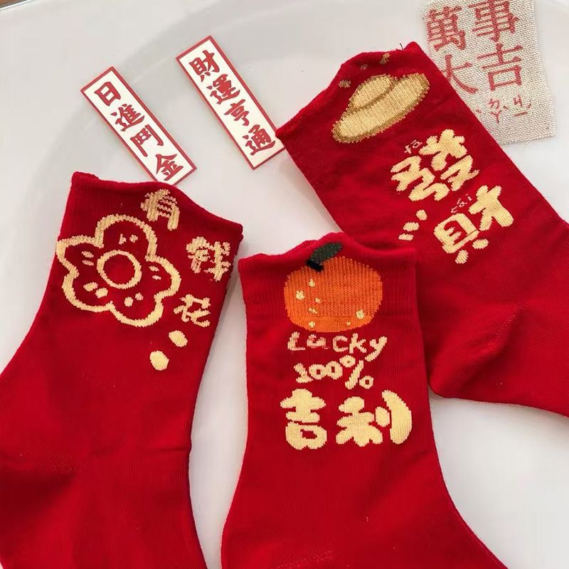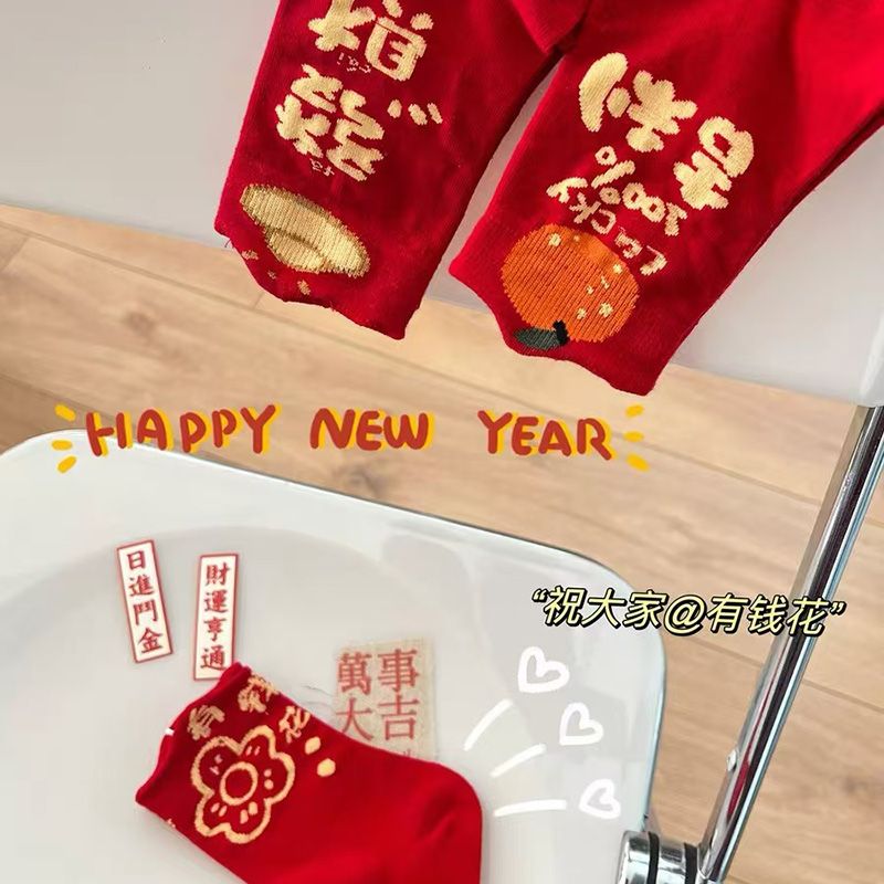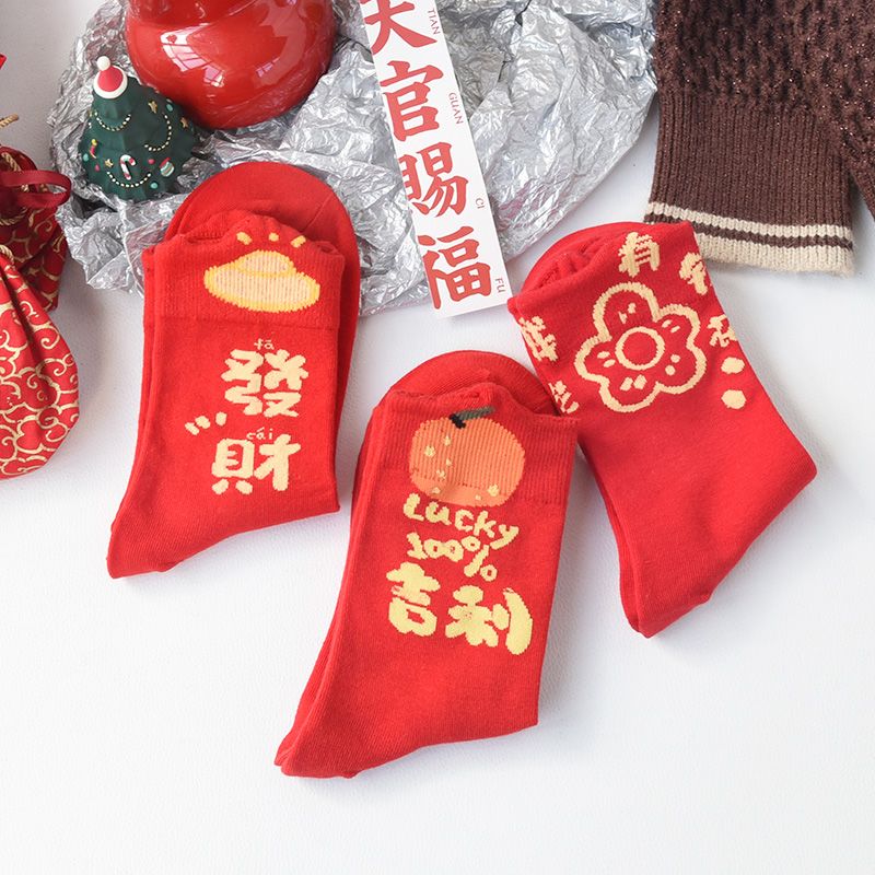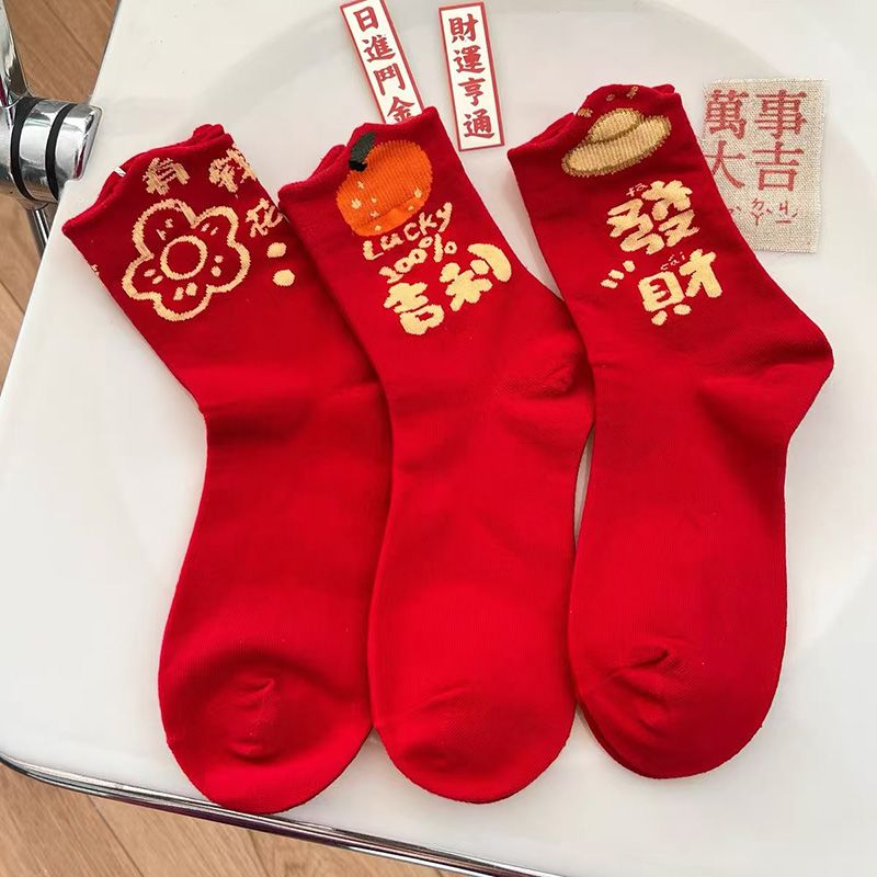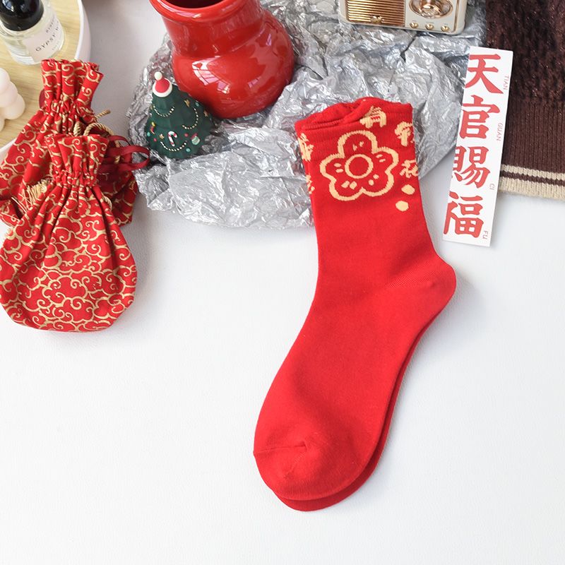 属蛇本命年大红色袜子女中筒棉袜甜美喜庆新年长袜圣诞节蛇年