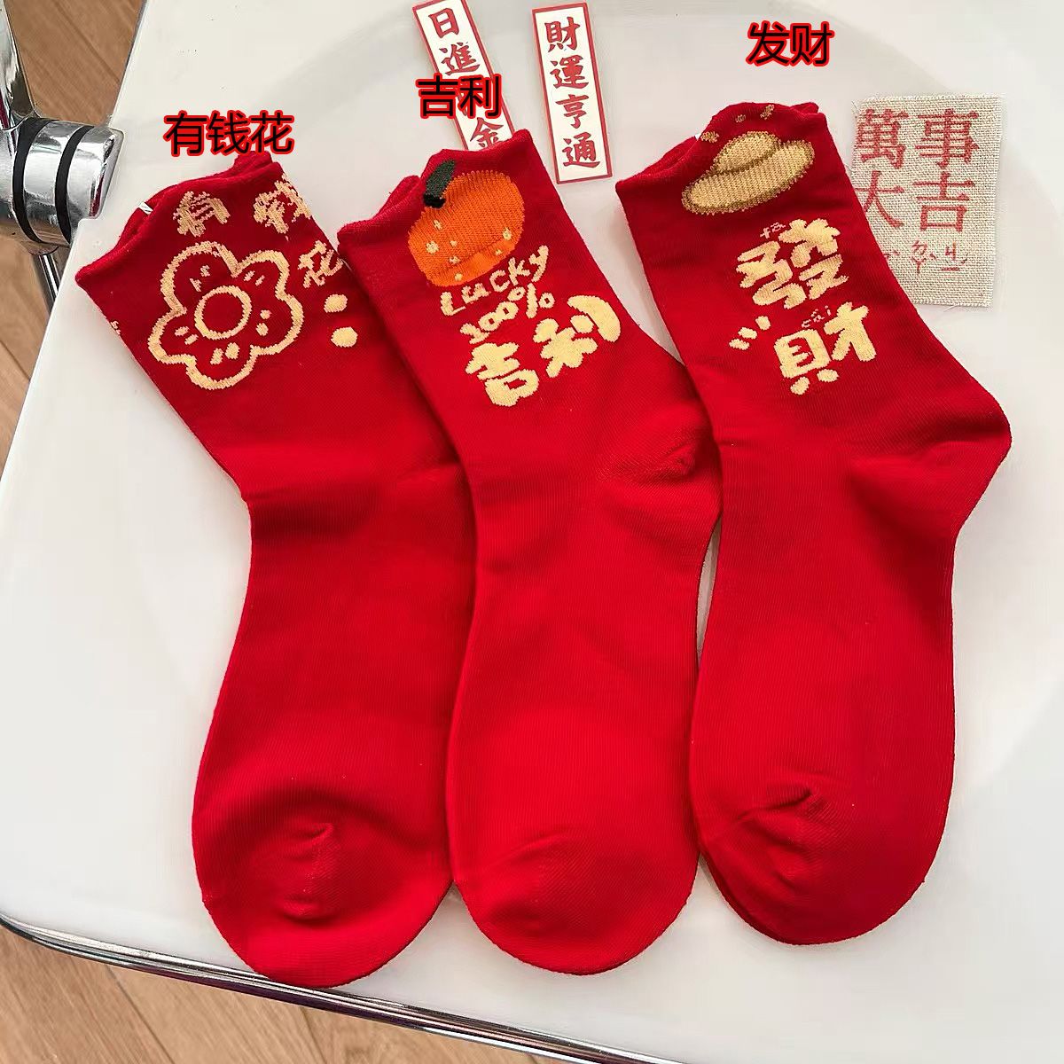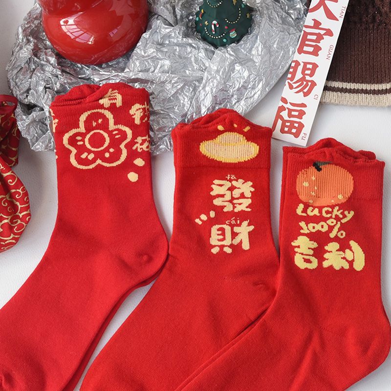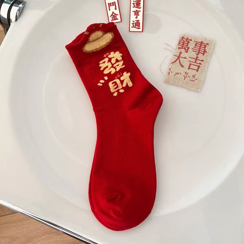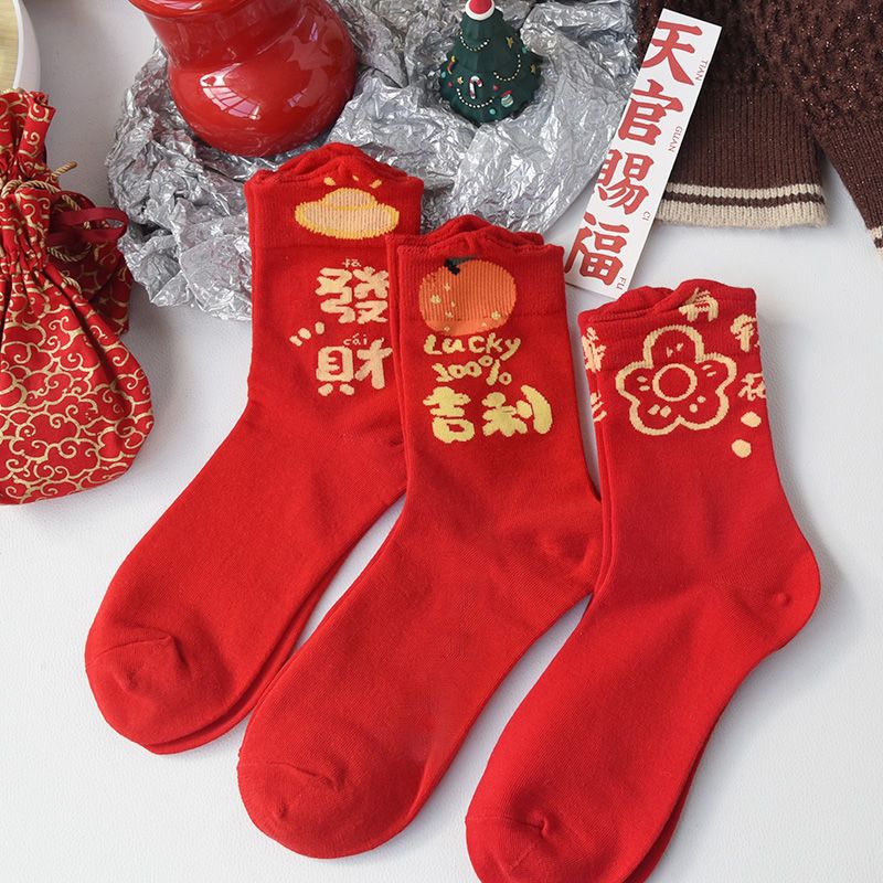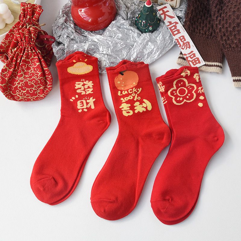 属蛇本命年大红色袜子女中筒棉袜甜美喜庆新年长袜圣诞节蛇年