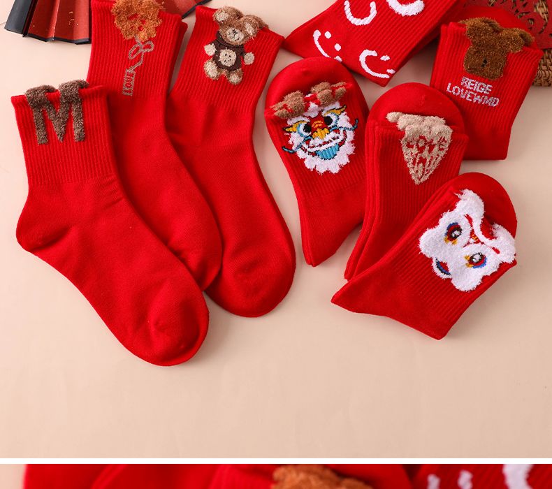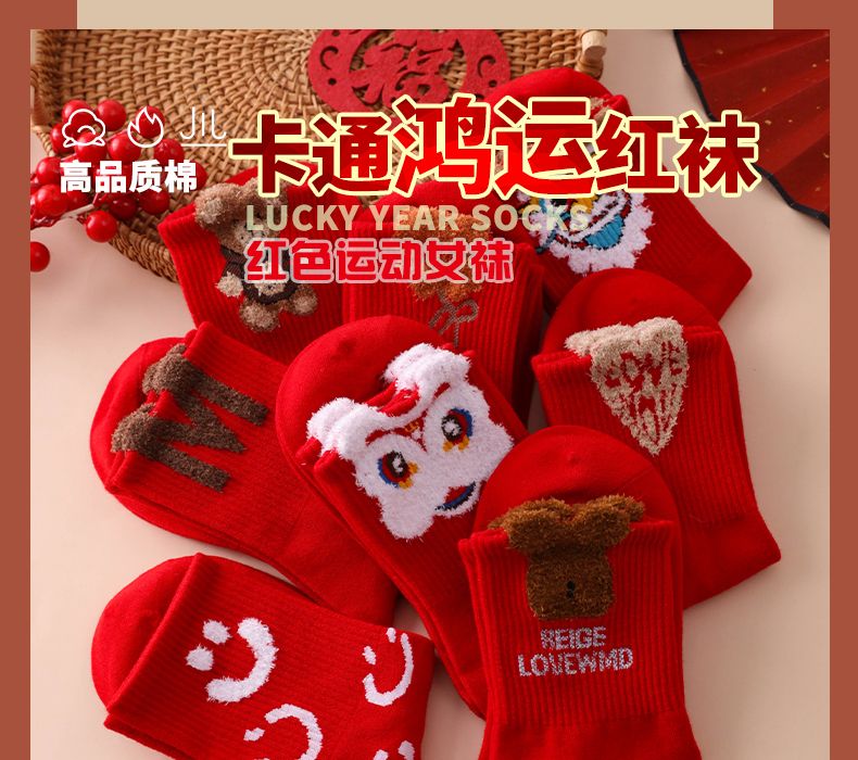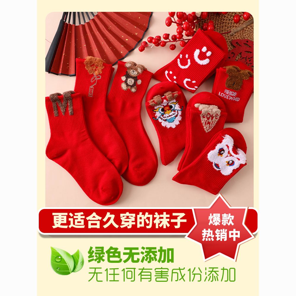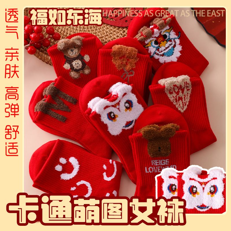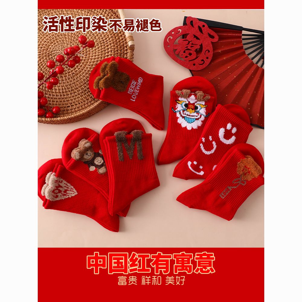 本命年大红袜子女韩版中筒圣诞袜ins潮百搭高颜值森系秋冬长筒袜