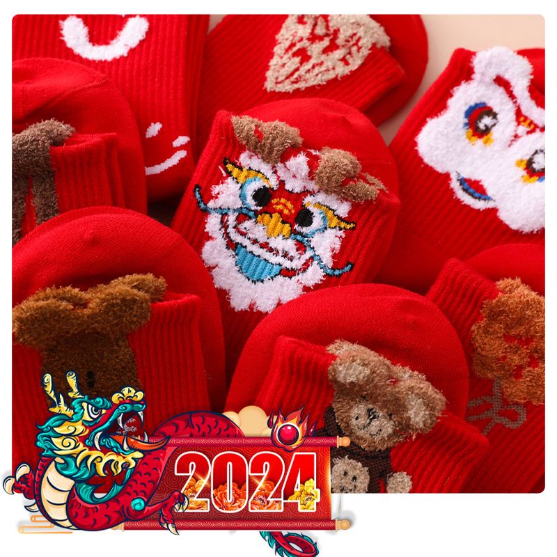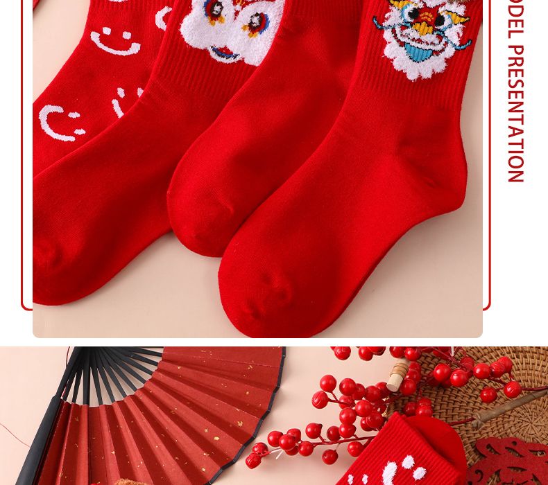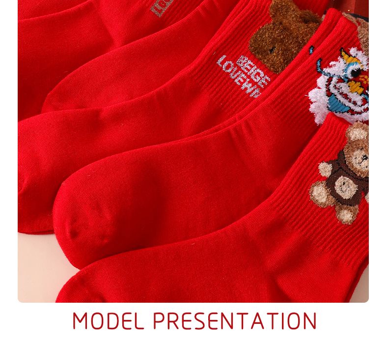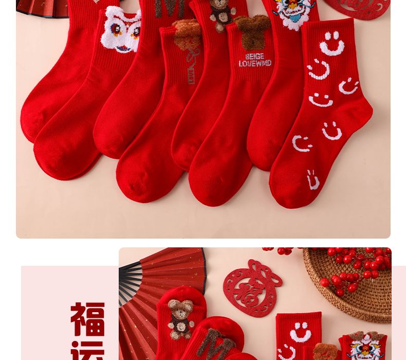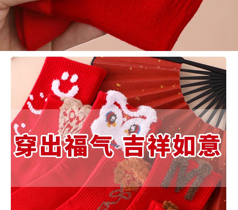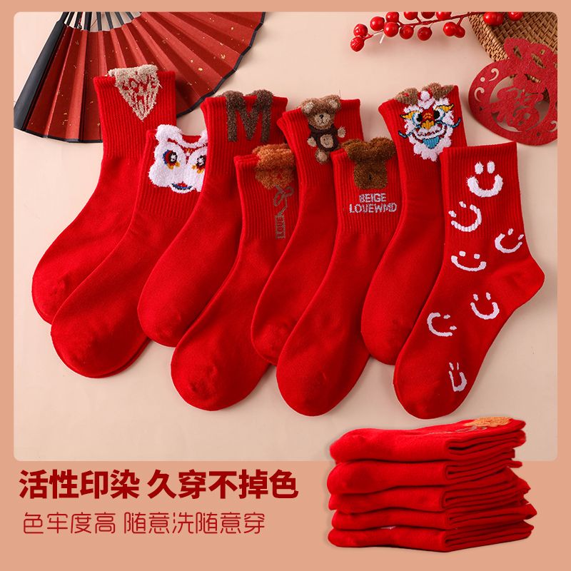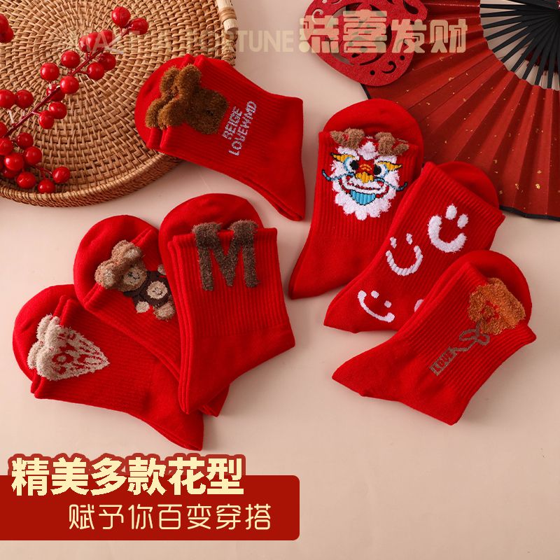本命年大红袜子女韩版中筒圣诞袜ins潮百搭高颜值森系秋冬长筒袜