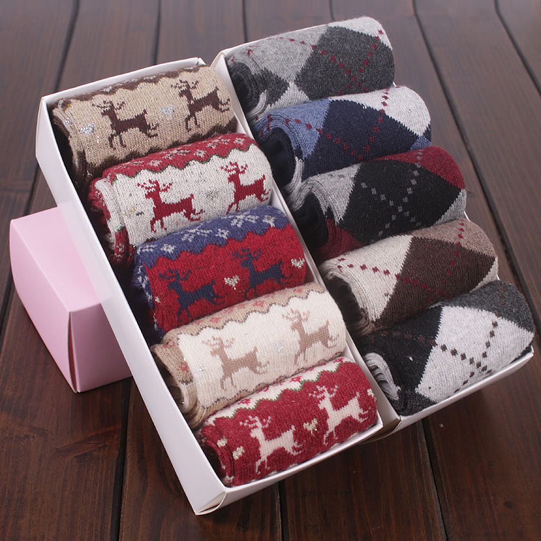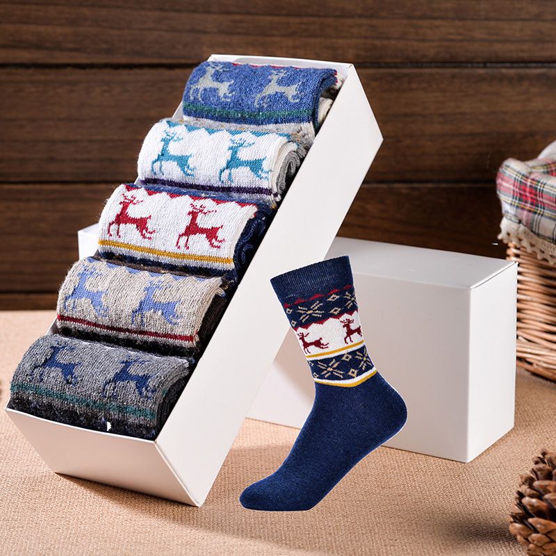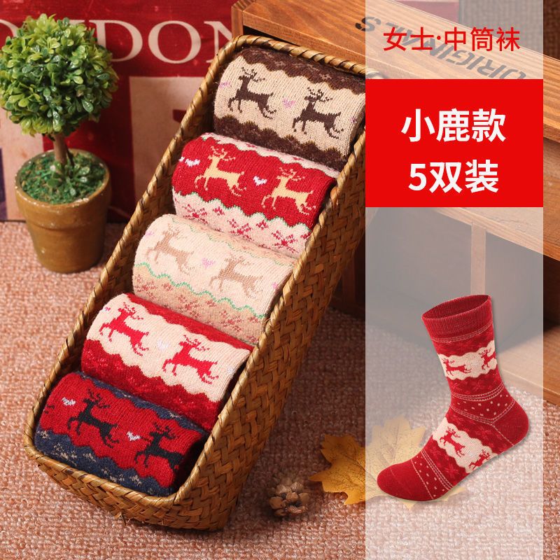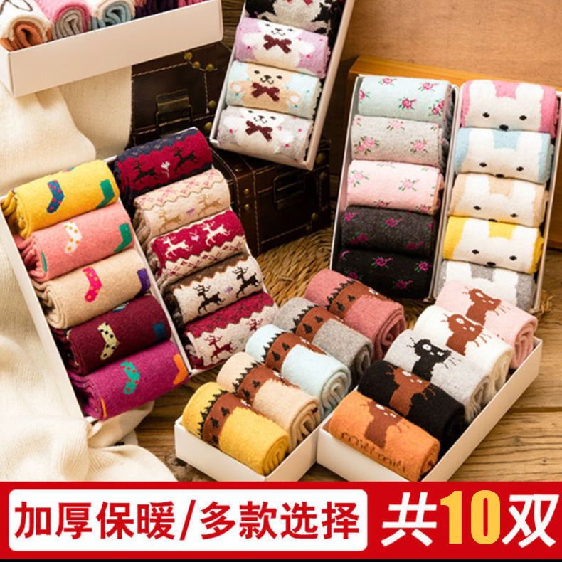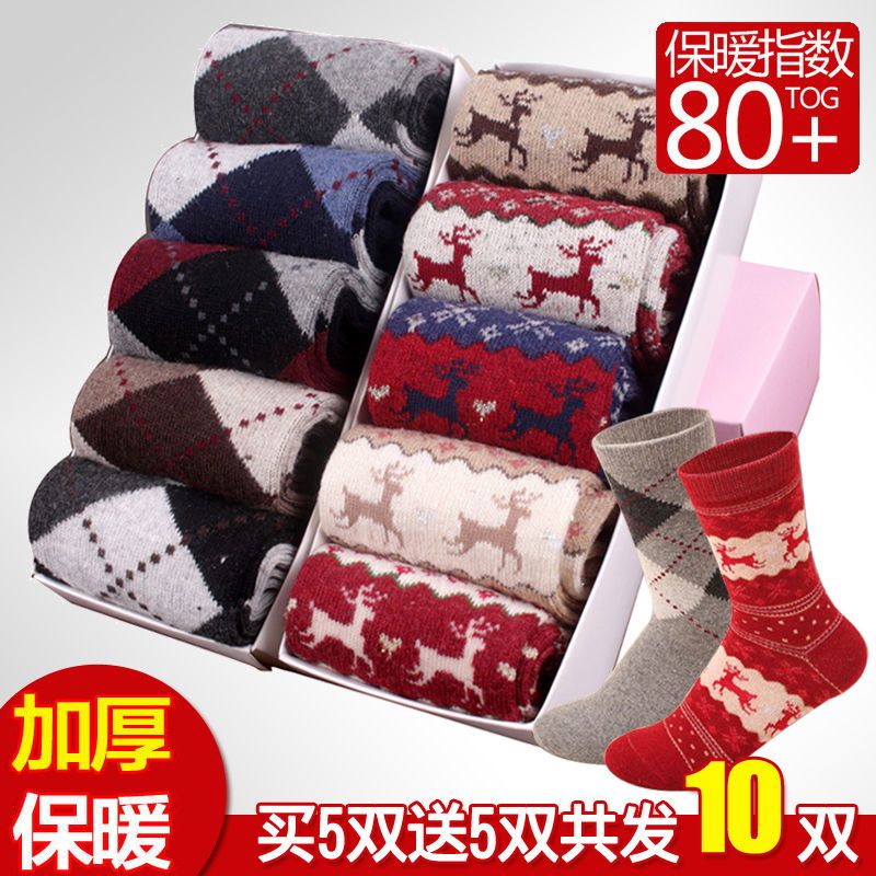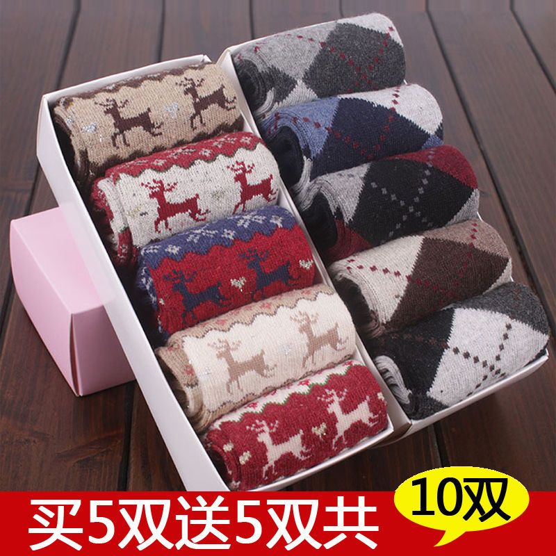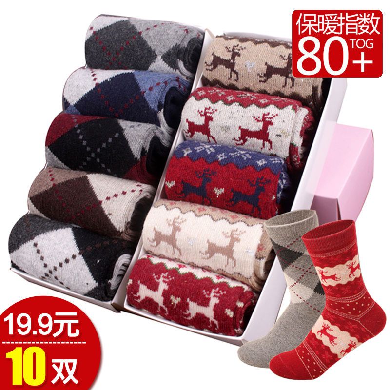 10双袜子女秋冬加厚保暖圣诞袜中筒男士长袜子羊毛袜卡通长筒冬季