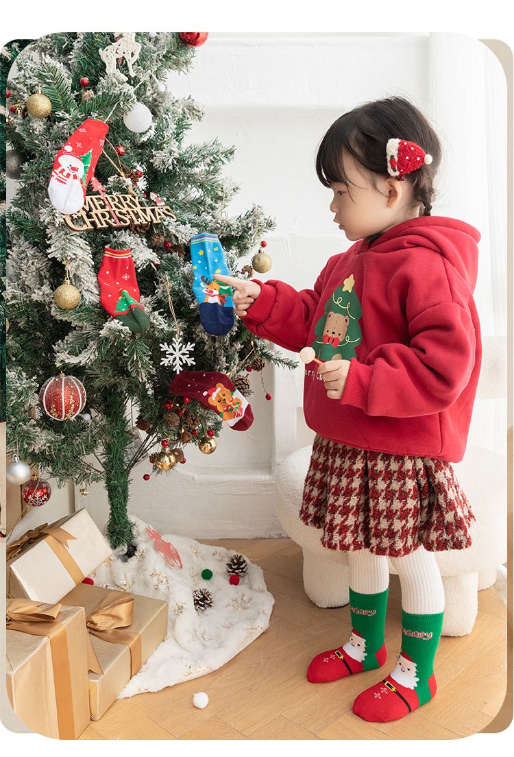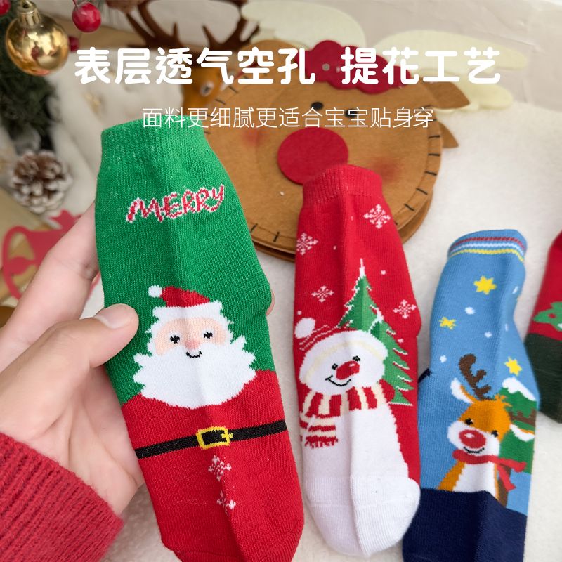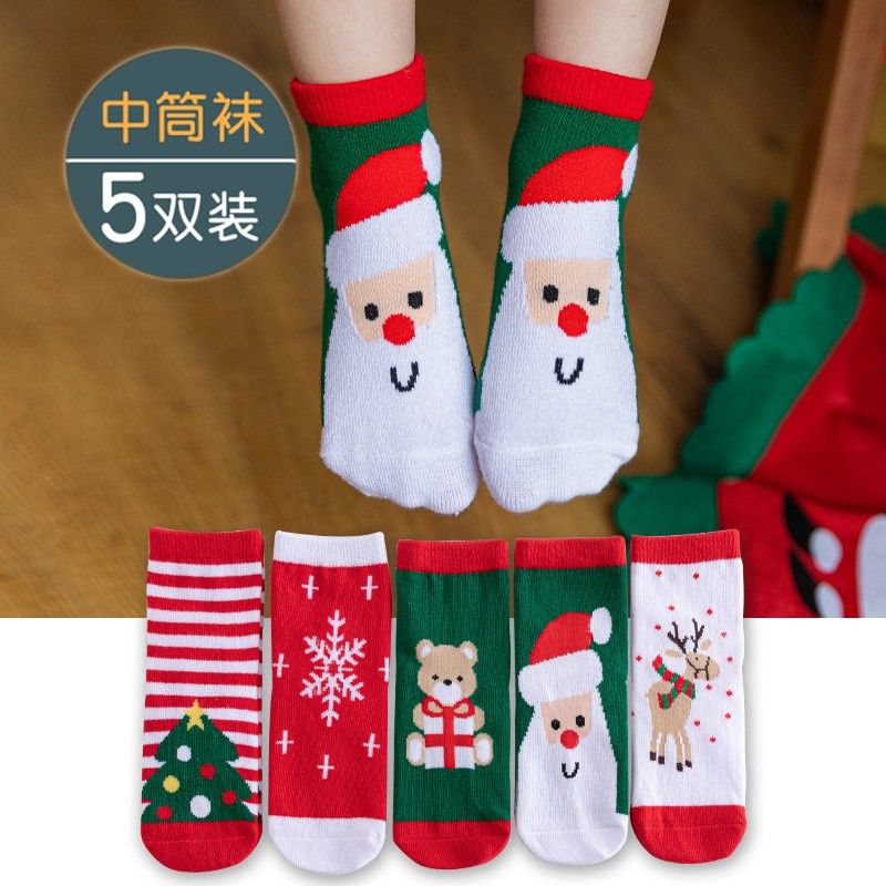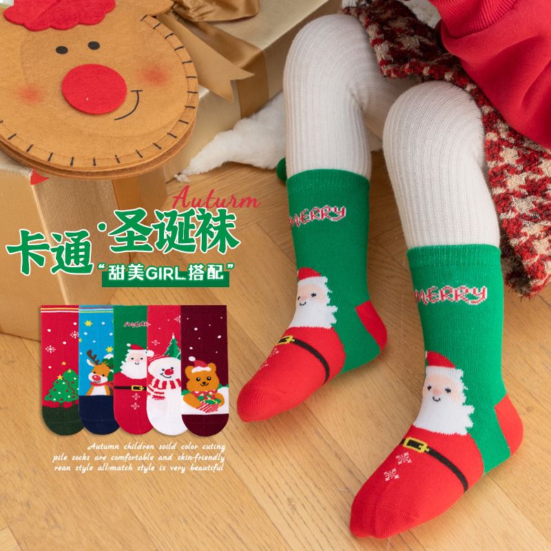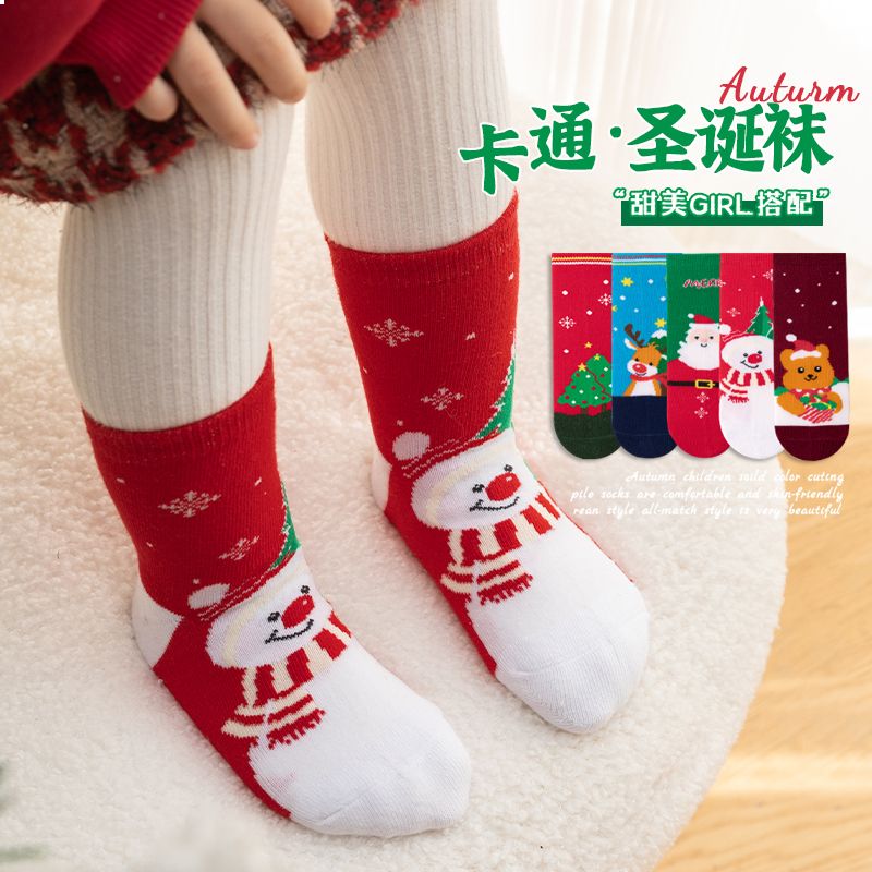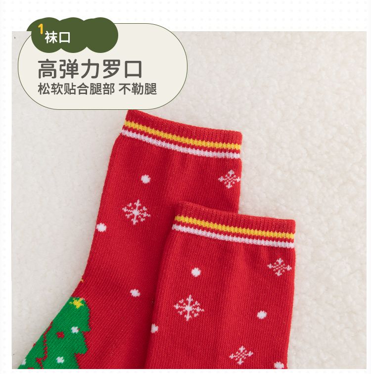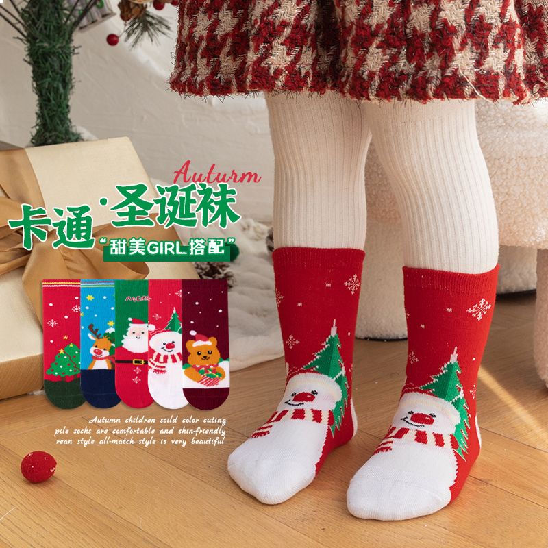 宝宝圣诞袜子长筒袜秋冬季男孩女童喜庆红色中筒袜儿童圣诞节袜子