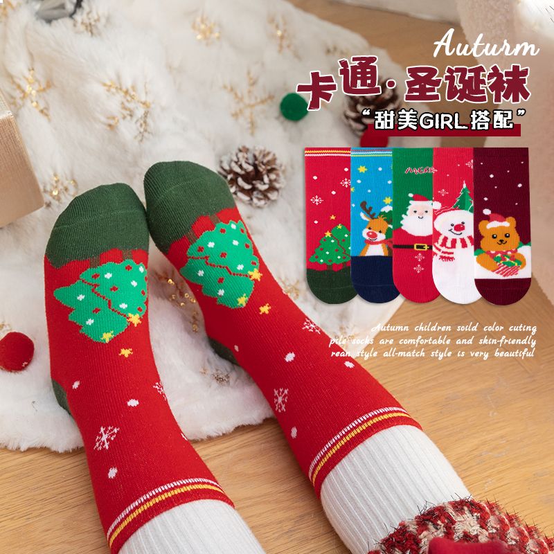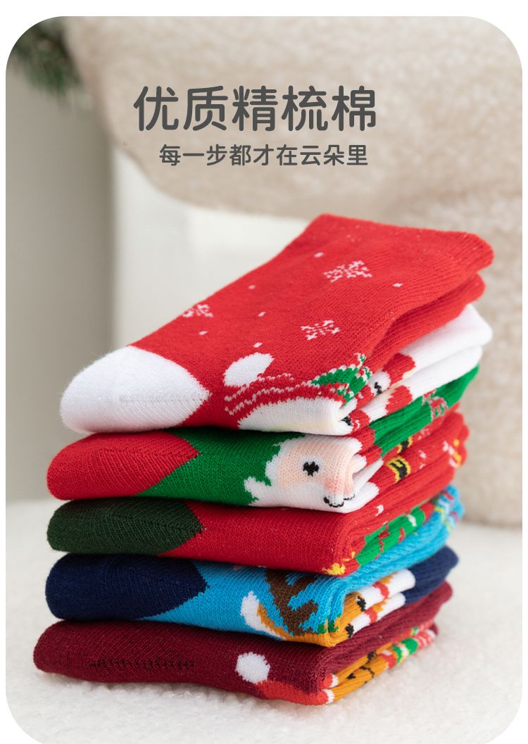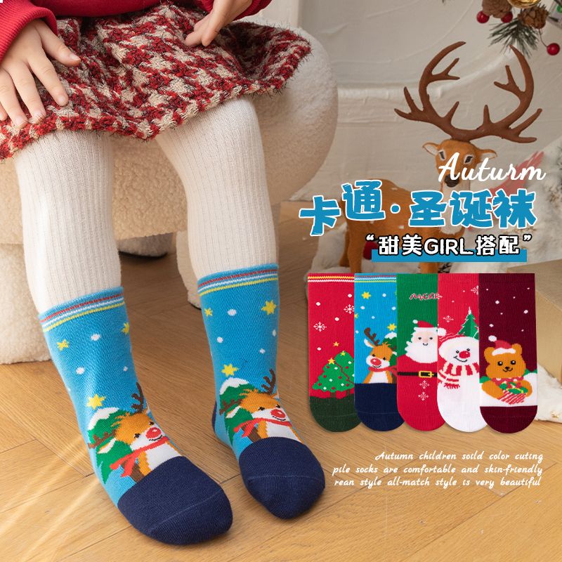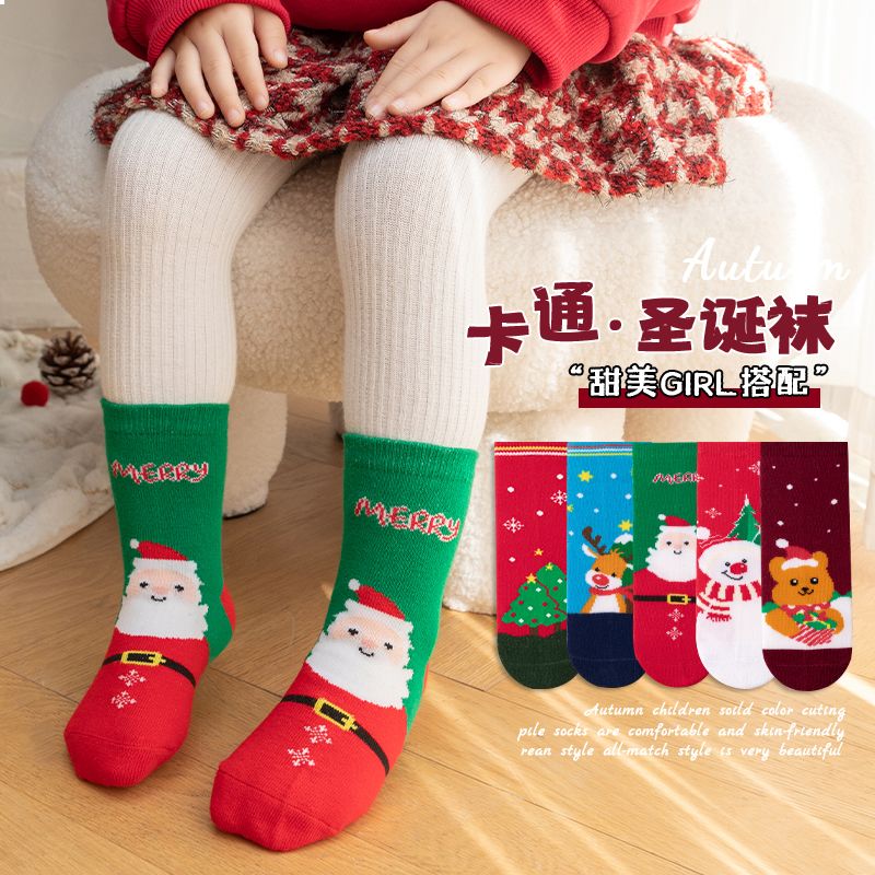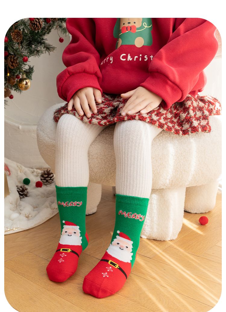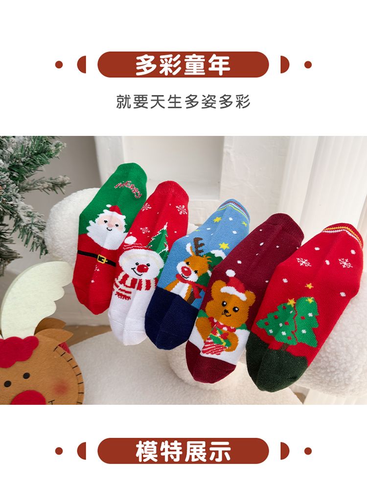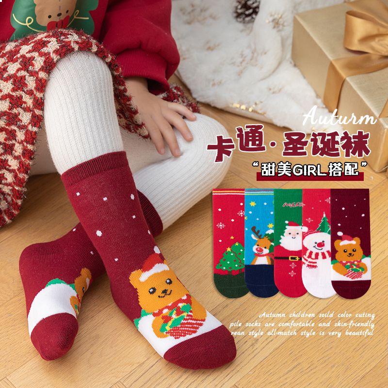宝宝圣诞袜子长筒袜秋冬季男孩女童喜庆红色中筒袜儿童圣诞节袜子
