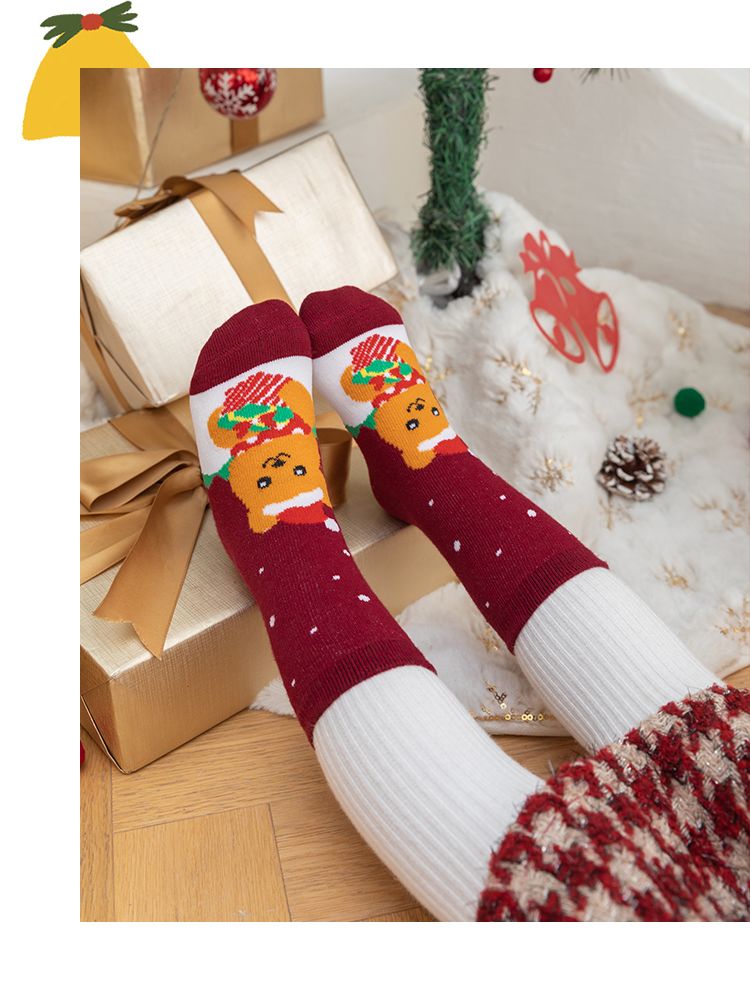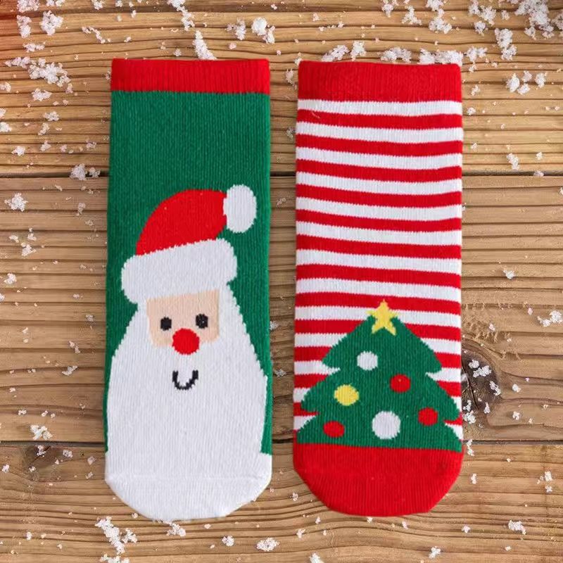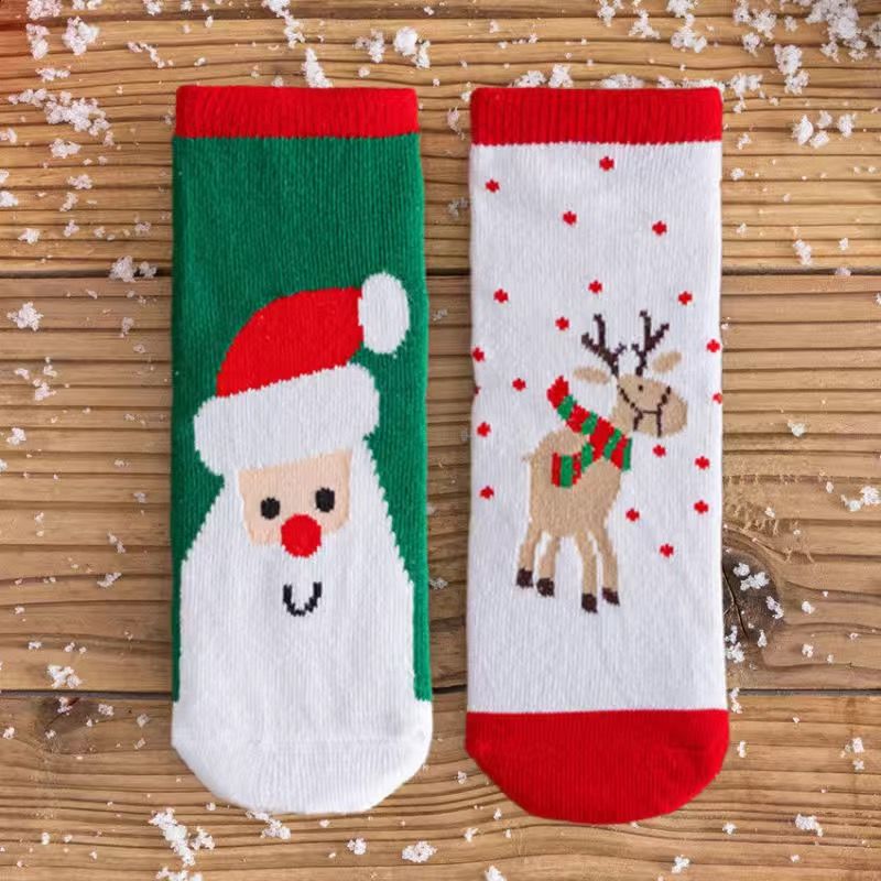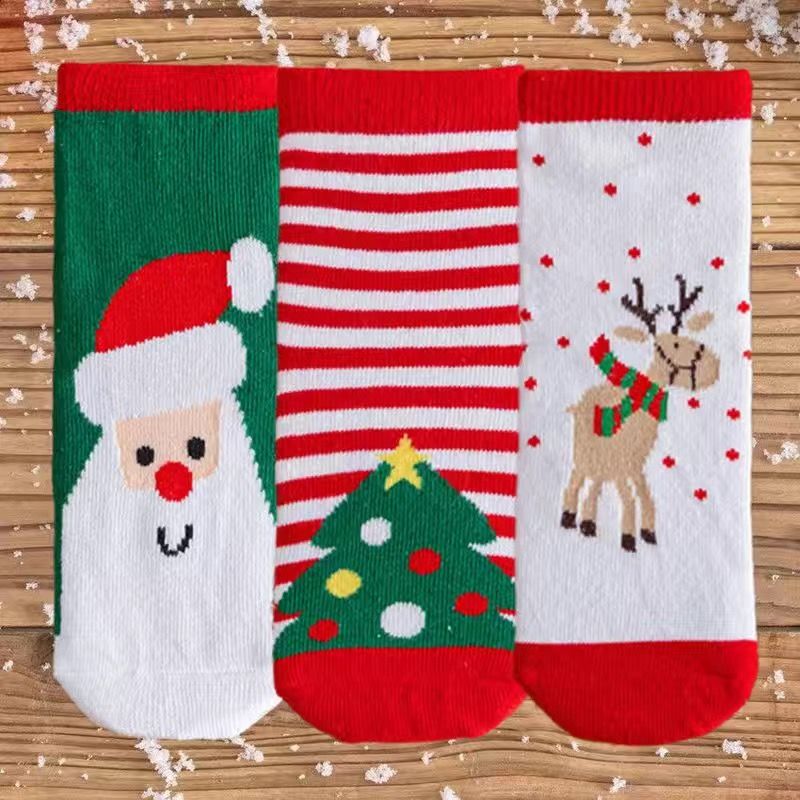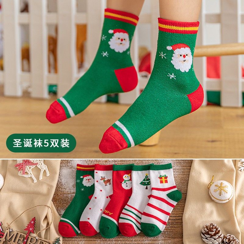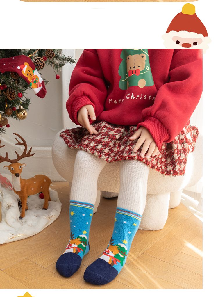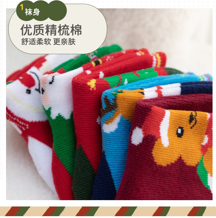 宝宝圣诞袜子长筒袜秋冬季男孩女童喜庆红色中筒袜儿童圣诞节袜子