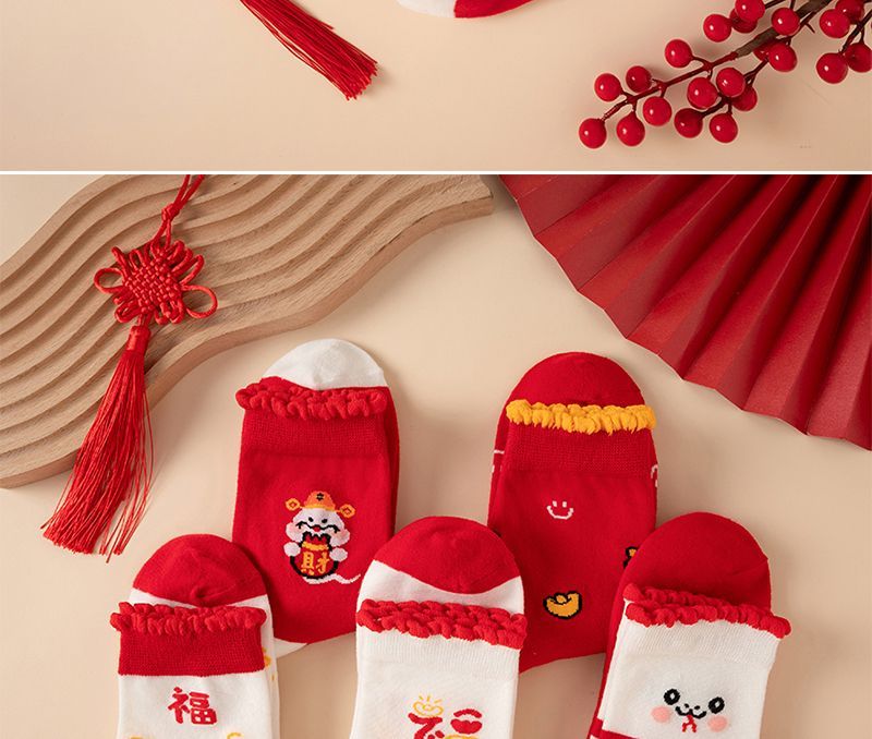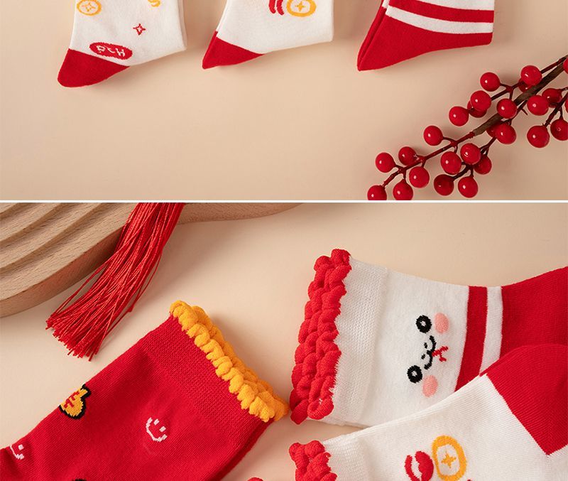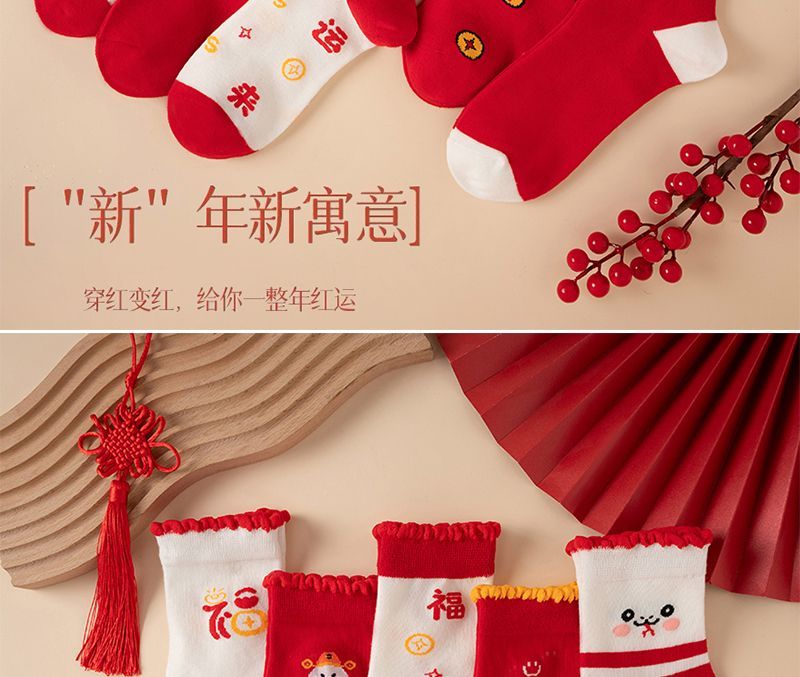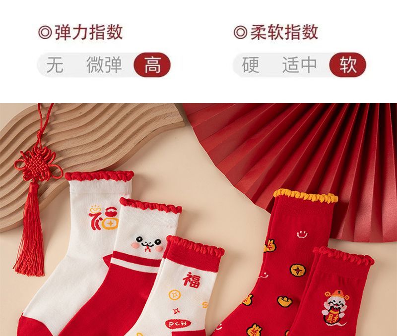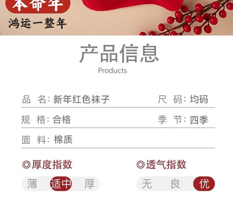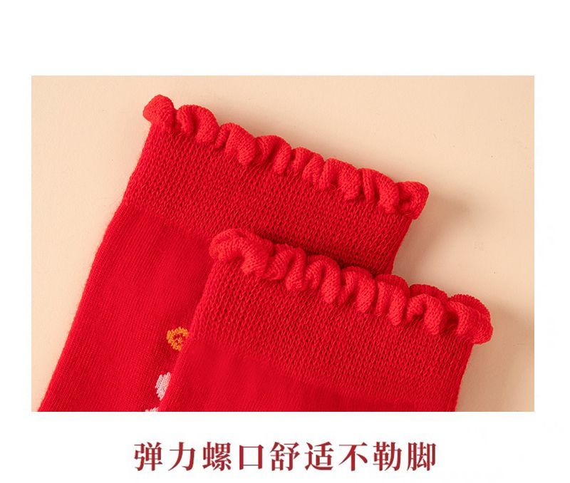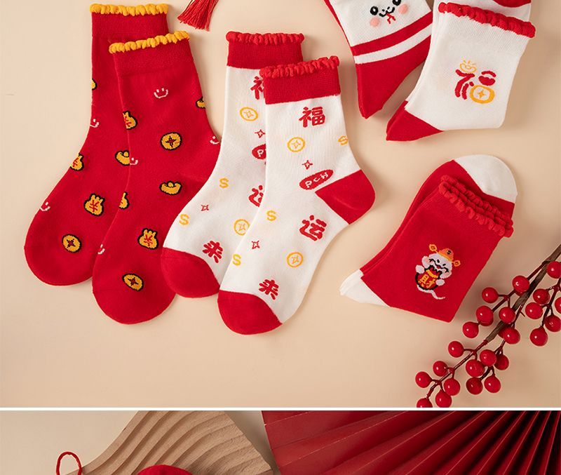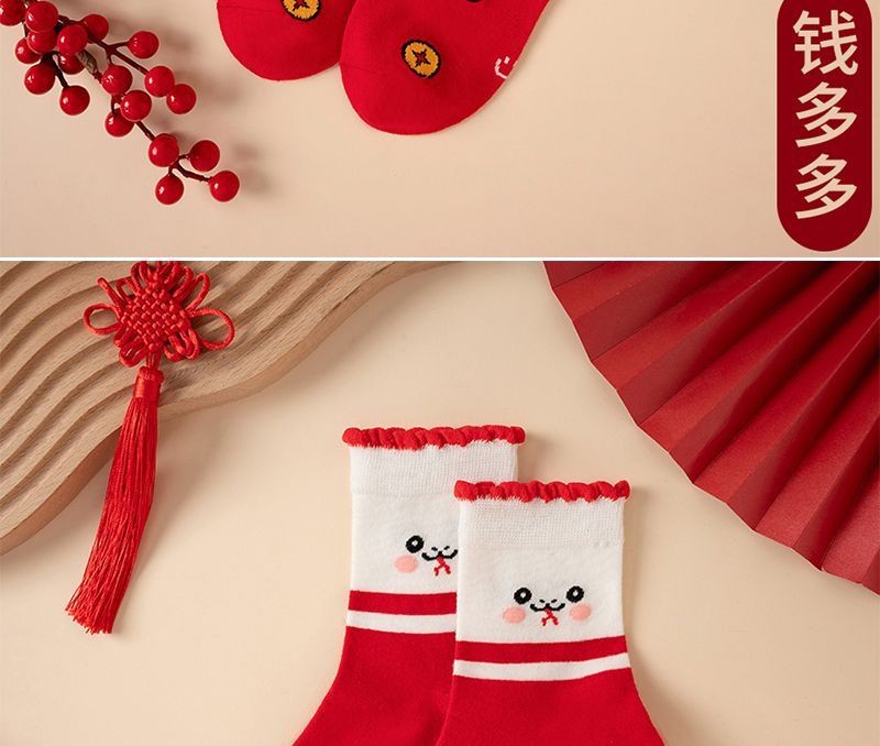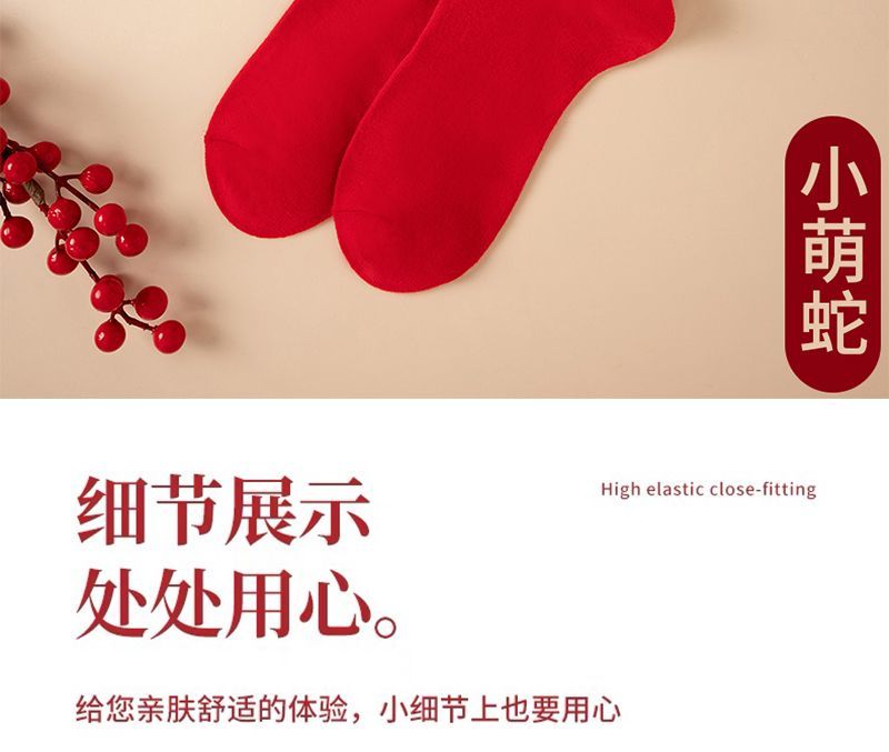 本命年网红袜子女中筒袜秋冬季纯棉圣诞袜子新年大红色可爱透气