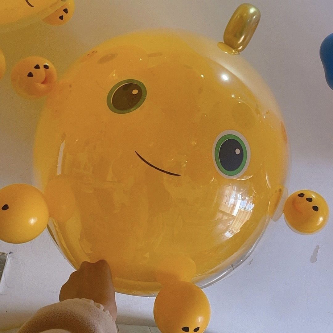 眼睛奶龙章鱼卡通图案气球防爆表情内球摆地摊加厚波点气球长条