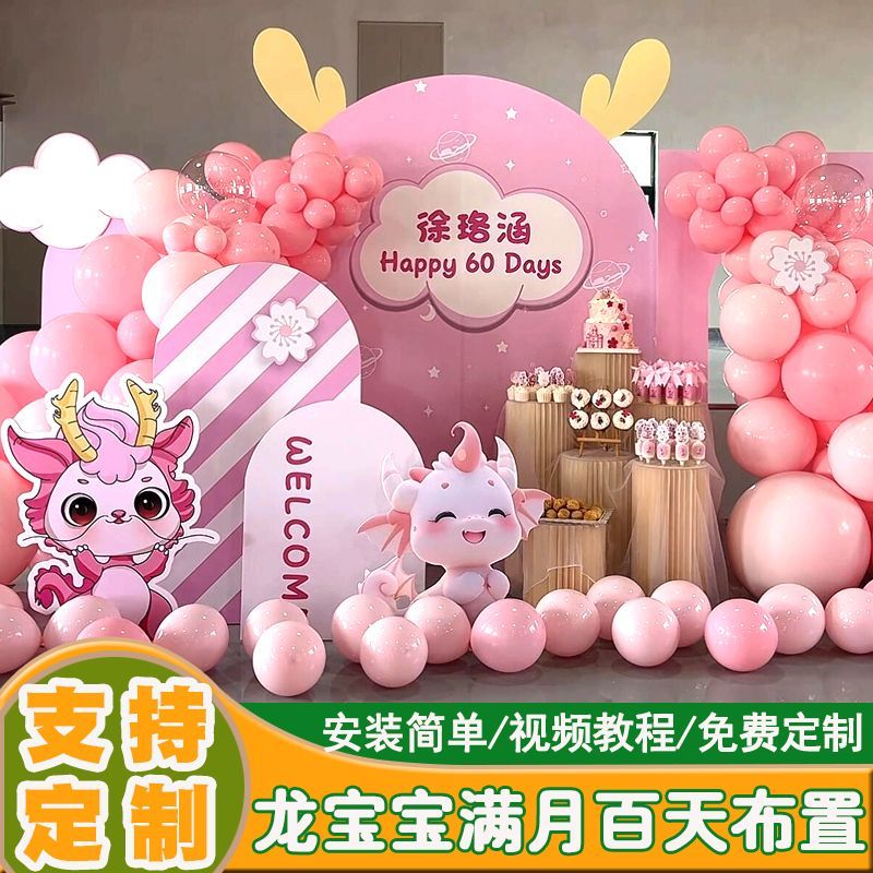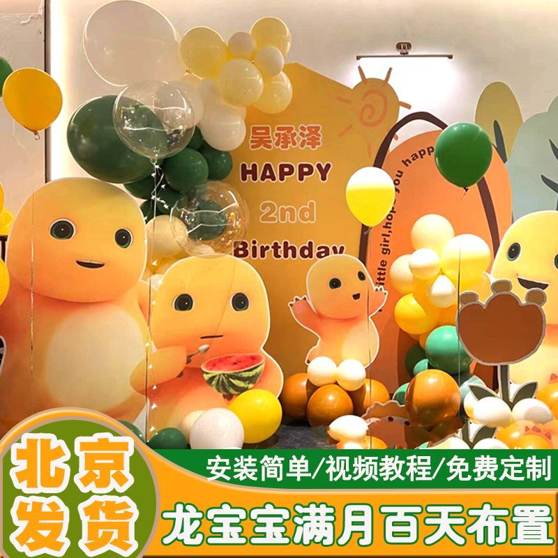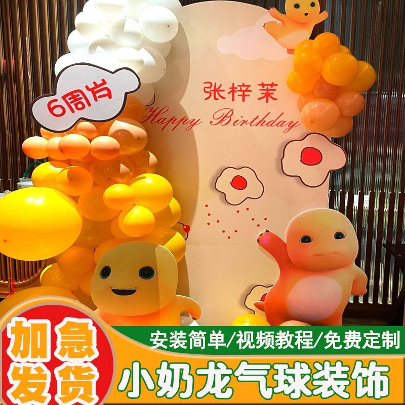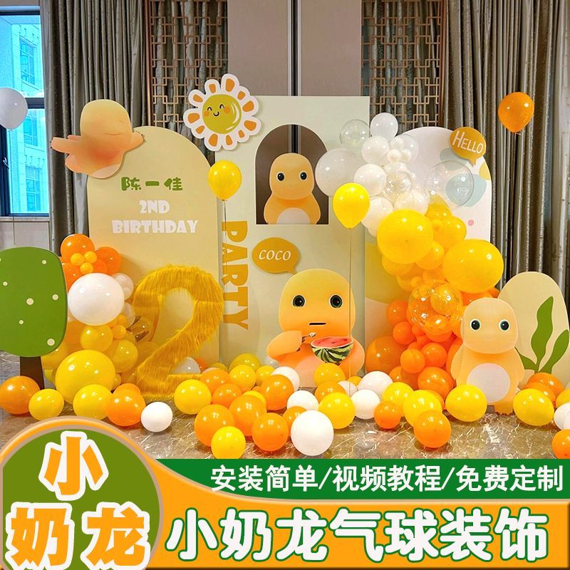小奶龙黄主题布置男女孩满月百天一周生日30气球制作装饰kt板背景