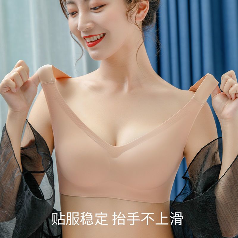 泰国乳胶无痕内衣女小胸罩聚拢无钢圈收副乳调整型运动背心文胸