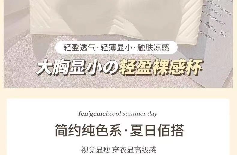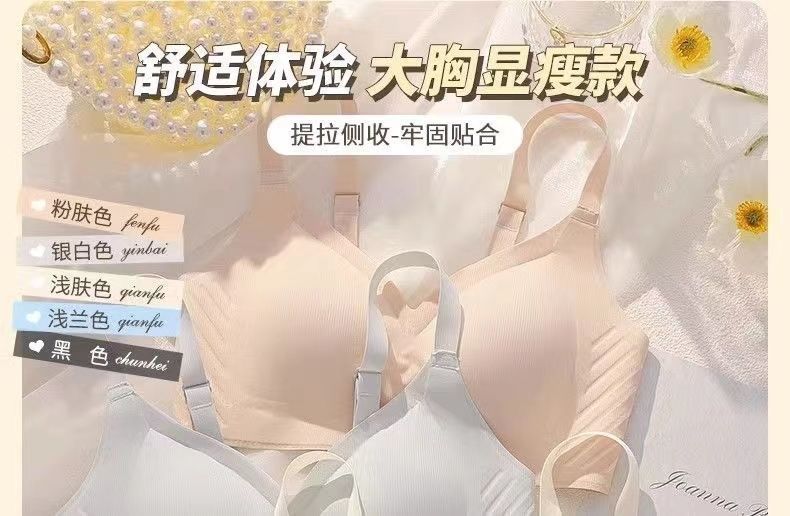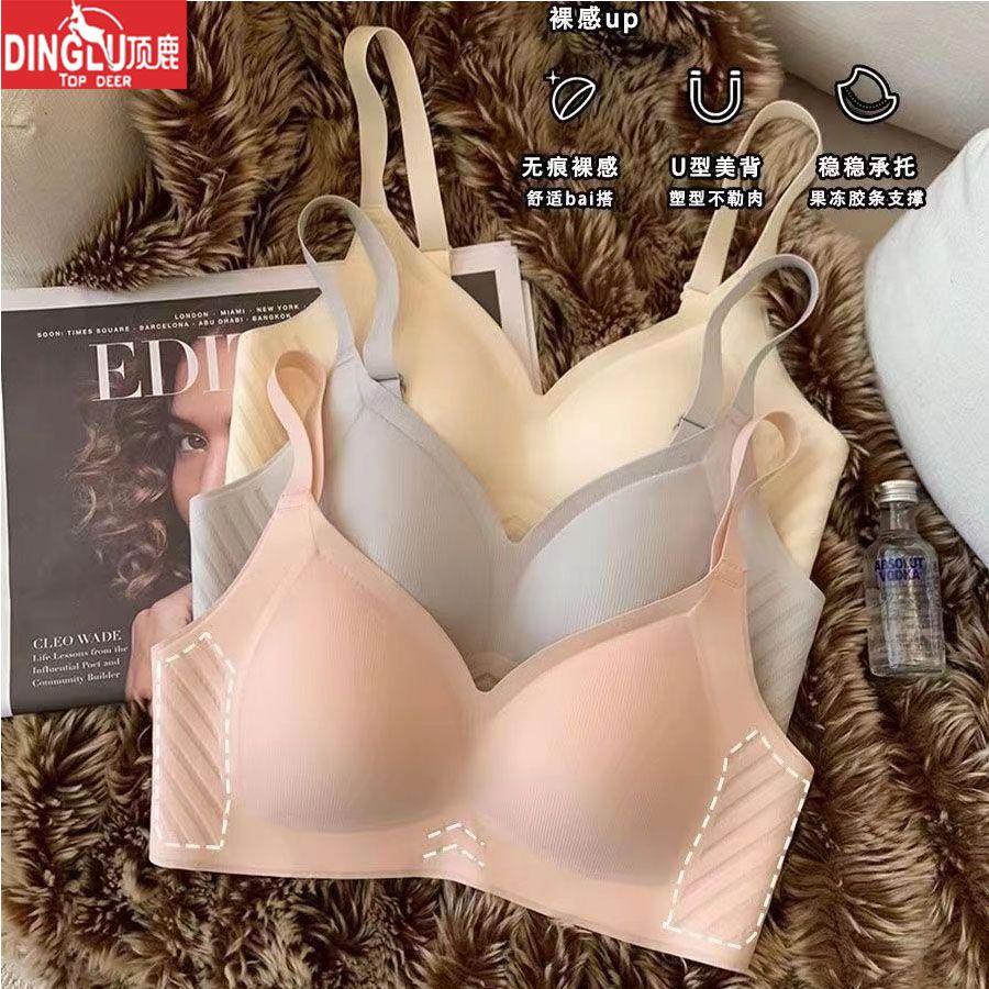 顶鹿薄款无痕内衣女大胸显小胸聚拢无钢圈无痕显瘦收副乳